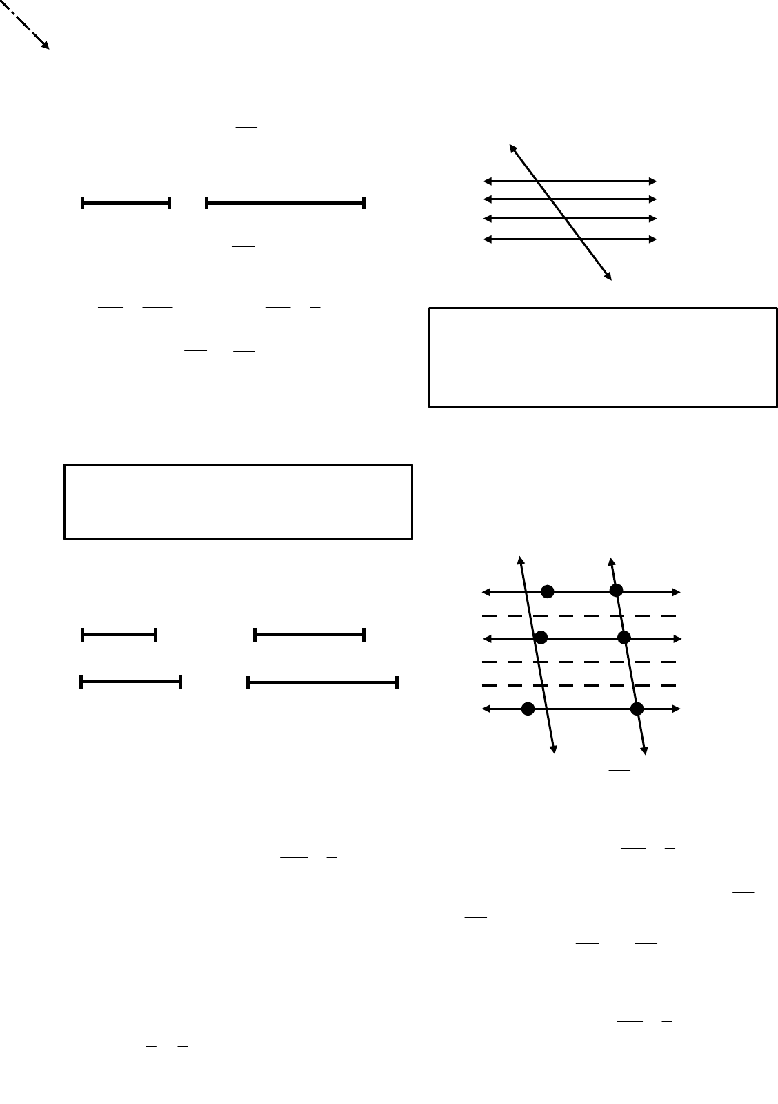 SEGMENTOS PROPORCIONAIS 1. RAZÃO ENTRE SEGMENTOS: ⇒ Sejam os segmentos e : A B C D 2 cm 5 cm ♣ A razão entre e será: ou seja ♣ A razão entre e será: ou seja Definição: ⇒ A razão entre dois segmentos é o quociente entre as suas medidas, tomadas na mesma unidade. 2. SEGMENTOS PROPORCIONAIS: ⇒ Sejam os segmentos da figura: A B E F 2 cm 4 cm C D G H 3 cm 6 cm Temos: ☞ Como ; então é uma Proporção. ☎ Lembrando: Numa proporção, o produto dos extremos é igual ao produto dos meios. ☎ Assim: e formam uma proporção, pois . 3. FEIXE DE RETAS PARALELAS: ⇒ Chama-se feixe de paralelas o conjunto de três ou mais retas paralelas de um plano. Se uma reta intercepta essas paralelas, ela se chama Transversal. r a b c d transversal ♣ PROPRIEDADE: Quando um feixe de paralelas determina segmentos congruentes sobre uma transversal, então determinará segmentos congruentes sobre qualquer outra transversal. 4. TEOREMA DE TALES: ⇒ Quando três retas paralelas são cortadas por duas retas transversais, os segmentos determinados numa das retas transversais são proporcionais aos segmentos determinados na outra. ☞ Veja a prova dessa afirmação: s t A D a u v u v b B u v E U v C u v F C ⇒ Medindo os segmentos e na unidade u, temos: ⇒ Pelos pontos de divisão dos segmentos e , traçamos paralelas às retas do feixe. Essas paralelas dividem e em segmentos congruentes. ⇒ Comparando e , temos: Exemplo 1: Calcular x, sabendo que . a 3 x b 12 16 c Solução: Exemplo 2: Calcular x, sabendo que . a b c 24 18 9 x Solução: EXERCÍCIOS PROPOSTOS 1. (FRANCO) Calcule x, sabendo que : a) a x 3 b 8 4 c Resp: 6 b) a 2x – 2 4 b 3x + 1 7 c Resp: 9 c) a x 9 b x + 2 12 c Resp: 6 d) a b c x 6 1, 8 4 Resp: 2, 7 e) a b c 10 6 x 4 Resp: 15 f) a x 5 b 7, 5 6 c Resp: 4 g) a 3 b 6 x 6 c Resp: 4 h) a 8 b 10 x c 6 Resp: 4, 8 2. (FRANCO) Calcule x, y e z sabendo que : a) a b c d x 6 y 25 5 16 Resp: b) a 9 x 3 b z 4 2 c 12 y 4 d Resp: z = 6, y = 8, x = 6 5. TEOREMA DE TALES NOS TRIÂNGULOS: ⇒ Toda reta paralela a um dos lados de um triângulo determina, sobre os outros dois lados, segmentos proporcionais. ☞ Veja: A D E B C ☞ Podemos concluir que: Exemplo 1: Calcule x, sabendo que : ( Solução : ) A 2 X E F 4 6 B C EXERCÍCIOS PROPOSTOS 1. (FRANCO) Calcule x, sabendo que : a) A 8 10 20 E F x B C Resp: 15 b) A x 5 E F x + 4 7 B C Resp: 10 c) B 6 E 4 A 10 F x C Resp: 10 d) 4x + 1 F 3 A C 3x E 2 B Resp: 2 e) B C x 2 E F A Resp: 3 T E S T E S 1. (FRANCO) Na figura . O valor de x é: A x 5 D E x + 4 7 B C a) 9 b) 10 c) 12 d) 2. (FRANCO) Nos triângulos abaixo, . Assim podemos afirmar que: A 3P Q 2 4 B C a) b) c) d) 3. (FRANCO) Na figura, os segmentos e são paralelos, , e . A medida do segmento é, em metros: A a) 6 b) 10 c) 12 d) 18 D E B C 4. (FRANCO) Na figura , Quanto vale x ? a) 10 2 b) 5 c) x d) 3 5 5. (FRANCO) Na figura, as retas a, b e c são paralelas. Então, o valor de x é: a b c a) 8 b) 10 8 6 c) 11 d) 12 4 x 6. (FRANCO) Na figura, sendo , o valor de x é : a b c a) 1 3 b) 2 c) 3 4x+1 d) 2 3 x 1. (FRANCO) As retas r, s e t são paralelas e os comprimentos dos segmentos de transversais são indicados na figura. Então x é igual a: a) 5 b) 6 r c) x d) s 15 3 t 8. (FRANCO) Na figura abaixo, o valor de x é: a) 4 b) 5 r // s c) 6 d) 7 x - 3 x s // t x + 2 x - 2 t 9. (FRANCO) Na figura, o valor de x é: a) 14 15 b) 16 10 c) 18 d) 20 X 12 10. (FRANCO) Nesta figura, os segmentos de retas AO, BP, CQ e DR são paralelos. A medida do segmento PQ, em metros, é: a) 24 R b) 35 120m c) 40 Q d) 50 P O A D B C 11. (FRANCO) As retas r, s e t da figura são paralelas. Assim, os valores de x e y são, respectivamente, iguais a: a) 2 e 4 b) 1 e 16 r c) 4 e 8 6 d) 6 e 12 24 x y s 4 8 t G A B A R I T O 1. B 4. D 7. B 10. C 2. C 5. D 8. C 11. A 3. C 6. B 9. C image7.wmf AB image8.wmf cm cm AB CD 2 5 = image9.wmf 2 5 = AB CD image10.wmf 6 4 : 6 4 3 2 : 3 2 = Þ þ ý ü = = = Þ þ ý ü = = GH EF razão cm GH cm EF CD AB razão cm CD cm AB image11.wmf 6 4 3 2 = image12.wmf GH EF CD AB = image13.wmf 3 2 image14.wmf 6 4 image15.wmf 12 4 3 6 2 = ´ = ´ image16.wmf c b a // // image17.wmf BC image18.wmf ( ) 1 3 2 : 3 2 = Þ þ ý ü = = BC AB Então u BC u AB image19.wmf DE image20.wmf EF image21.wmf ( ) 2 3 2 : 3 2 = Þ þ ý ü = = EF DE Então v EF v DE image22.wmf ( ) 1 image23.wmf ( ) 2 image24.wmf EF DE BC AB = image25.wmf 4 12 48 48 12 16 3 . 12 16 12 3 = Þ = = Þ ´ = Þ = x x x x x image26.wmf 12 18 216 216 18 24 9 . 18 24 18 9 = Þ = = Þ ´ = Þ = x x x x x image27.wmf d c b a // // // image28.wmf 3 40 , 30 = = y x image29.wmf EC AE DB AD = image30.wmf EF BC // image31.wmf 3 12 4 6 2 . 4 6 4 2 = Þ = ´ = Þ = x x x x image32.wmf 4 1 2 image33.wmf 2 1 1 image34.wmf BC DE // image35.wmf 12 15 image36.wmf BC PQ // image37.wmf 5 = AQ image38.wmf 6 = AC image39.wmf 10 = AC image40.wmf 10 = AQ image41.wmf BC image42.wmf DE image43.wmf m AB 15 = image44.wmf m AD 5 = image45.wmf m AE 6 = image46.wmf CE image2.wmf AB image47.wmf b a = image48.wmf 10 3 image49.wmf 3 10 image50.wmf a image51.wmf b image52.wmf 2 3 image53.wmf 5 8 image54.wmf 5 1 1 image55.wmf 2 15 image3.wmf CD image4.wmf cm cm CD AB 5 2 = image5.wmf 5 2 = CD AB image6.wmf CD