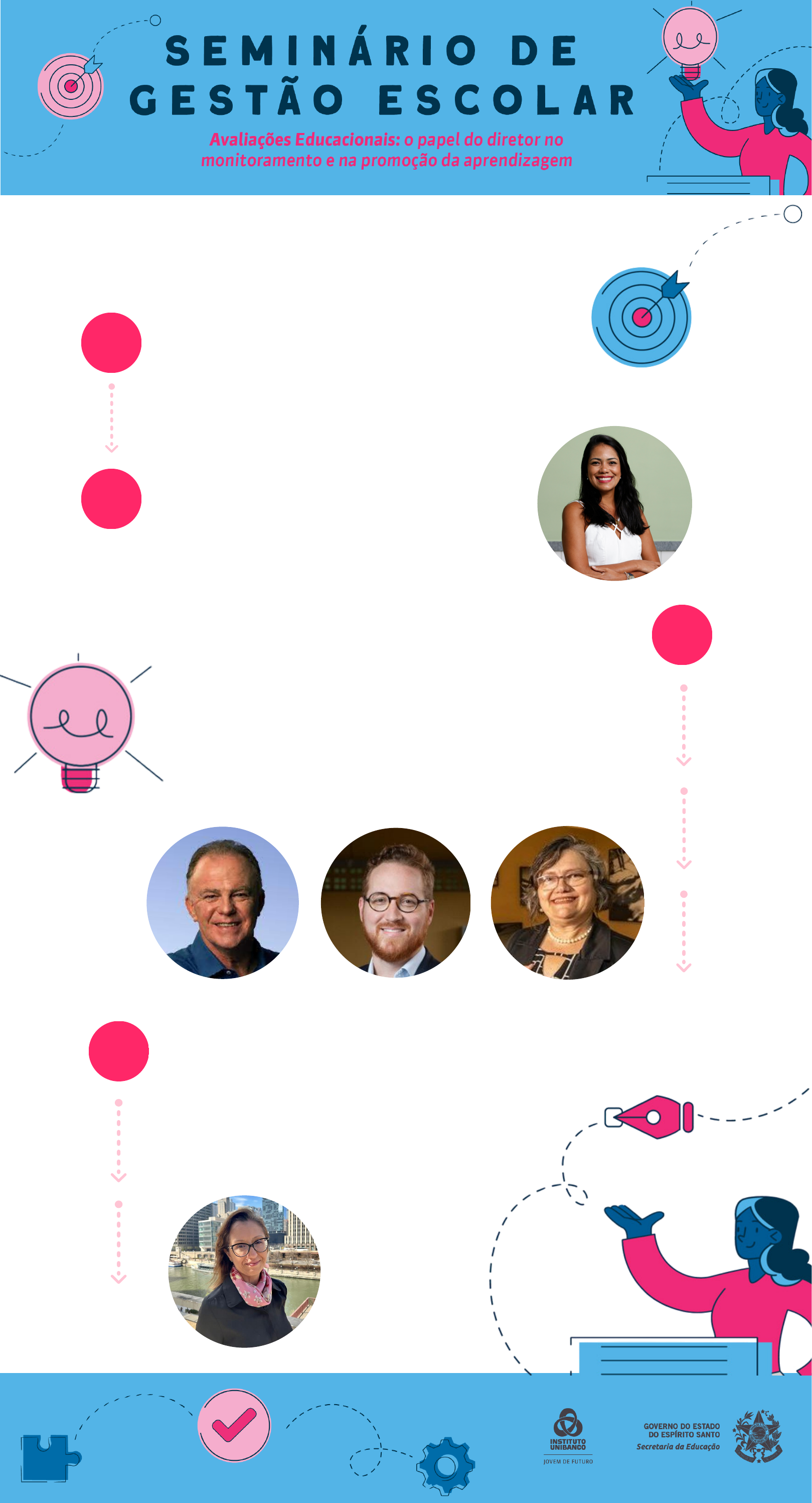 Mayara Lima Candido Gerente de Gestão Escolar CREDENCIAMENTO - 12h30 P R O G R AM A Ç Ã O ACOLHIMENTO - 13h30 MESA DE ABERTURA Maria Júlia de Azevedo Gerente de Implementação de Programas e Projetos Educacionais do Instituto Unibanco Vitor de Angelo Secretário de Estado da Educação Renato Casagrande Governador do Estado do Espírito Santo Ana Cristina de Oliveira Prado Professora do Departamento de Fundamentos da Educação e do Programa de Pós- Graduação em Educação da UNIRIO. PAINEL I: GESTÃO ESCOLAR E RESULTADOS DE APRENDIZAGEM - O QUE DIZEM AS PESQUISAS CONSIDERAÇÕES FINAIS Darcila Castro Subsecretária de Articulação Educacional PAINEL II: SAEB E IDEB - INSTRUMENTOS, PROCEDIMENTOS E ANÁLISES INTERVALO - COFFEE BREACK Leandro Karnal Historiador, professor e escritor. PAINEL III: EFICIÊNCIA, ÉTICA E COMPROMETIMENTO - O PAPEL DA GESTÃO ESCOLAR NO ATINGIMENTO DAS METAS INSTITUCIONAIS ENCERRAMENTO Manuel Palácios Presidente do Instituto Nacional de Estudos e Pesquisas Educacionais Anísio Teixeira - INEP. PAINEL I PAINEL II PAINEL II P A L E S T R A N T E S ANA CRISTINA DE OLIVEIRA PRADO: Professora do Departamento de Fundamentos da Educação e do Programa de Pós-Graduação em Educação da Universidade Federal do Estado do Rio de Janeiro (UNIRIO) e Professora Colaboradora no Programa de Pós-Graduação em Educação da Universidade Federal do Rio de Janeiro (UFRJ). Pós-Doutora (Bolsista PDJ, CNPq), Doutora e Mestre em Educação pela PUC-Rio. Especialista em Teoria e Prática Piagetiana pela Unicamp e Pedagoga pela Universidade Federal de Minas Gerais (UFMG). Atuou profissionalmente na Educação Básica por 17 anos, como professora, coordenadora pedagógica e na formação continuada para professores. Sua pesquisa na área educacional envolve os seguintes temas: gestão escolar, liderança, clima escolar e implementação de políticas públicas, tendo publicado artigos nesta área. É do Grupo de Pesquisa Política, Gestão e Financiamento da Educação (POGEFE) vinculado à UNIRIO além de membro de Grupos de Pesquisa internacionais e de associações de pesquisa. MANUEL FERNANDO PALÁCIOS DA CUNHA E MELO: Presidente do Instituto Nacional de Estudos e Pesquisas Educacionais Anísio Teixeira (Inep) | 2023 - Fundador e membro do Comitê Gestor da FLIP+ | 2018 a 2023 - Pesquisador do Centro de Políticas Públicas e Avaliação da Educação da Universidade Federal de Juiz de Fora (CAEd/UFJF) | 2001 a 2023 - Professor da Faculdade de Educação e do Programa de Pós- Graduação Profissional em Gestão e Avaliação da Educação Pública da UFJF | 1991 a 2023 - Secretário de Educação Básica do Ministério da Educação (SEB/MEC) | 2015 a 2016 - Pró-reitor de Planejamento e Gestão da UFJF | 2007 a 2008 - Diretor de Políticas da Educação Superior, diretor de Desenvolvimento da Educação Superior e secretário interino da Secretaria de Educação Superior (Sesu/MEC) | 2004 a 2007 - Diretor da Faculdade de Educação da UFJF | 1998 a 2002 - Coordenador do CAEd/UFJF | 2001 Formação - Doutor em Ciências Sociais, pelo Instituto Universitário de Pesquisa do Rio de Janeiro (Iuperj) | 1997 - Graduação em Engenharia de Comunicações, pelo Instituto Militar de Engenharia (IME) | 1978 LEANDRO KARNAL: Historiador, doutor em História Social pela USP e professor na UNICAMP. É reconhecido em todo o país como importante palestrante, intelectual e formador de opinião. Alguns de seus livros estão entre os mais vendidos do Brasil. É colunista fixo do jornal O Estado de São Paulo e presença de destaque na mídia nacional. Suas mídias sociais alcançaram mais de 9 milhões de seguidores e seus vídeos e frases circulam pela internet com enorme popularidade.