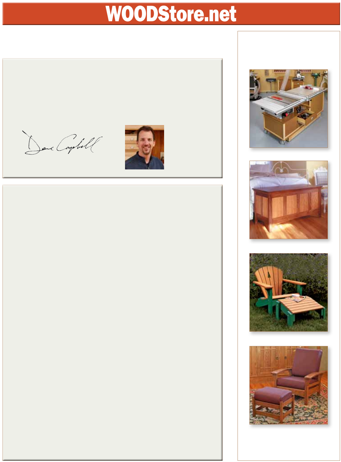 Mission Furniture Thank You! Thank you for ordering this WOOD® magazine download. We hope you enjoy being part of our online experience and that you have fun expand- ing your woodworking skills. Please remember that this copyrighted material is for your use only. It is unlawful to share this file with someone else or to reprint it in any form. Dave Campbell Editorial Content Chief, WOOD magazine Adobe Acrobat Reader Troubleshooting Guide If you can read this page, your Acrobat Reader program is working correctly! But you may still have problems or specific issues, such as printing and saving your downloadable file. My printer won’t print the text correctly Almost all printing problems are due to not enough free system resources memory. The files are very memory intensive because they include graphics, text, and photos. Close all other programs/applications and print directly out of the Acrobat Reader program, not your Web browser. Patterns are not printing full-size Make sure your printer is set to print at 100 percent, “print to fit” is not checked and “page scaling” is set to “none”. These settings are selected in the printer setup or printer options. I can’t find my file now that it’s downloaded Rather than viewing the plan in your browser, you must save it to your hard drive. Download the file again, except this time try right-clicking on the red download button. A menu window will open. Select “Save target as” or “Save link as” to save the file to your hard drive. Once saved, you can open it up with Adobe Acrobat Reader. For more details on using Adobe Acrobat Reader please visit our online help section at: woodmagazine.com/adobe WOOD Store Customer Favorites Visit the WOOD Store at: WOODStore.net Shop Tools & Accessories Indoor Furniture Outdoor Furniture WOODStore.net Browse more than 1,300 woodworking project plans, DVDs, back-issue collections, videos, tool reviews, books, & more. Page 1 of 10©Copyright Meredith Corporation 2012 This easy-to-build mobile tool stand packs a shop full of convenience in a small package. Quick-convert Tablesaw/Router Station Raise the wings for full workpiece support. A router table and accessories stow away in the drawer. Voilà! A router table with fence and plenty of infeed and outfeed support. Tools needed: Overall dimensions when folded are 32 7⁄8" wide × 29 3⁄8" deep × 31 1⁄4" high. Unfolded: 72×48×31 1⁄4". Materials needed: Birch plywood and medium-density fiberboard (MDF). Skill Builders Discover an easy way to table-mount a router. Use guides to accurately position and install hinges. Project Highlights With a footprint of less than 7 square feet when folded, this mobile tool stand expands into a massive 17-square-foot tablesaw work- surface. And it’s multitalented—to switch to a router table, simply slide out the on- board router drawer. See More Resources, page 6, for an idea about compatible stor- age for the tablesaw. MD-00931 Page 2 of 10 Note: The dimensions in this project assume a material thickness of 3⁄4". Most sheet goods will be slightly undersize. In order to ensure that dimensions of subassemblies are correct, measure the thickness of your materials and adjust the length of adjoining project parts to compensate. Construct the carcase 1From 3⁄4" plywood, cut the sides (A), back (B), shelf (C), and base (D) to size. (See Materials List, page 10 .) Predrill and screw the sides to the back as shown [Drawing 1, Photo A]. 2With the case on its back, slide the shelf (C) into place [Drawing 1] and secure with screws. Now, flip the case onto its top. Center the base (D) side-to- side, positioning it 1" from the front of the case, and screw it into place. Drill holes to fit the caster stems and, before A a brace squares the case C quick scrapwood Guides ease hiNGe pLaceMeNt D A squaring brace (see More Resources, page 32) aligns and steadies the sides (A) and back (B) for drilling and screwing. A scrapwood guide held against the back edge of the wing support correctly positions the hinge at 90° while you secure it. Clamp a spacer to the case (1" for the front; 1 1⁄2" for the back). Position the wing support (E) flush with the case top, and secure the hinge. A A B cut two supports froM oNe bLaNk Firm support, a 10-tpi or higher blade, a slow-but-steady cut rate, and zero orbital action ensure a smooth, straight jigsaw cut. E E Scrapwood guide1¼" E A 1" spacer righting the case, install the casters to ease mobility during assembly. 3From 3⁄4" plywood cut three 12×12" blanks, and lay out the wing support (E) dimensions [Drawing 1a]. Use a jigsaw to cut the blank into two supports along the diagonal [Pho to B]. Then, smooth the cuts with a sanding block. 4Use a scrapwood guide as a straight- edge to locate and secure the 2 1⁄2" butt hinges to the wing supports (E) [Photo C]. Be sure to attach the hinges on the inside faces of the wings, creating three mirrored pairs of wing supports. Use scraps to position and secure the wing supports to the case sides (A) and back (B) [Photo D]. While we show this mobile base with the Bosch GTS1031 benchtop tablesaw (find a review of this saw at woodmagazine.com/ benchtopbosch), the base was designed to fit many similar-size tablesaws. Before building, measure your chosen tablesaw’s dimensions carefully and adjust the base to match your E B saw if necessary. Likewise, measure your router’s height to ensure it fits in the bin. Page 3 of 10 FI LE N A M E: 2 13 Tb lR te rS ta tio n1 _# 10 06 73 40 7. ai D at e: 1 -1 2 Lo rn a J. Fi le na m e: 2 13 Tb ls aw Ro ut er St at io n Lj 1 -1 1, k b 1- 18 #8 x 1 ½ " F .H . s cr ew 2½ " bu tt h in ge #8 x ¾ " F .H . s cr ew #8 x 1 ½ " F .H . s cr ew D us t- co lle ct io n ho le 32 7⁄8 " 29 3⁄8 " 23 7⁄8 " D E A E E E 24 5⁄8 " B E E N N 1" 3¾ " 3¾ " ¾ " 1¼ " ½ " h ol e 1" ¾ " 1" 26 ¼ " 23 7⁄8 " 1½ " 12 " 10 " 1 CA RC A SE Lo ca tio n of C 10 ½ " A FI LE N A M E: 2 13 Tb lR te rS ta tio n1