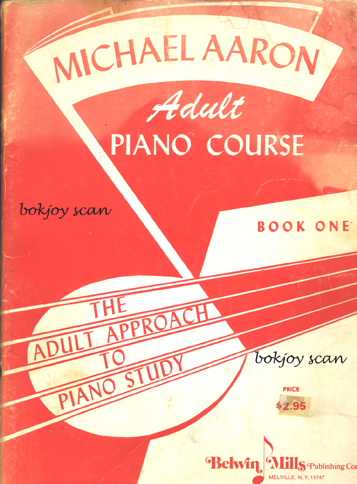 <p>MICHAEL AARON Adult PIANO COURSE bokjoy scan BOOK ONE THE ADULT APPROACH TO PIANO STUDY bokjoy scan PRICE 2.95</p><p>MICHAEL AARON ADULT PIANO COURSE The Adult approach to piano study Belwin Mills Publishing Corp. N.Y. 11746 Copyright 1947 by Mills Music, Inc., New York, N. Y. International Copyright Secured Made in U.S.A. All Rights Reserved</p><p>CONTENTS Page Page INTRODUCTION TO MUSIC 5 THOUGHTS AT TWILIGHT - Aaron 30 RIGHT HAND POSITION 6 FINGER DRILLS 31 TIME SIGNATURES, NOTES and SCALE AND KEY OF G MAJOR 32 RHYTHMIC PATTERNS 7 HE'S A JOLLY GOOD FELLOW 33 ODE TO JOY - 7 FINGER DRILL 34 LEFT HAND POSITION 8 THE DAMPER PEDAL 35 SONG OF THE CELLO 9 DRINK TO ME ONLY WITH THINE EYES 36 BOTH HANDS 10 SCALE AND KEY OF F MAJOR 38 ALPINE MELODY 10 CARNIVAL TIME-Aaron 38 INTERMEZZO - Schubert 11 TRIADS 39 HOW CAN I LEAVE THEE? 12 THE THREE MAJOR TRIADS 40 RESTS and NEW POSITIONS OF LEFT HAND 13 SONG OF HAPPINESS 41 PROGRESS 13 INVERSION OF TRIADS 42 INTRODUCING 3rd SPACE C 14 FANFARE 43 LULLABY 15 THE DOMINANT-SEVENTH CHORD 44 SLURS and TIED NOTES 15 DOTTED QUARTERS 45 THE THREE C's 16 CRADLE SONG - Brahms 45 THE C MAJOR SCALE 16 SCALE AND KEY OF B FLAT MAJOR 46 CO-ORDINATION OF THE HANDS 17 ROMANCE - Rubinstein 46 AROUND AND AROUND 17 CHORD STUDIES 47 EXPRESSION MARKS 18 THE ROSE OF TRALEE - Glover 47 SOFT, SOFT, MUSIC IS STEALING 18 ALOUETTE 48 CONTRARY MOTION 19 MARCHE SLAVE - Tschaikowsky 49 G POSITION 20 HOME ON THE RANGE 50 EIGHTH NOTES 21 SCALE AND KEY OF D MAJOR 52 HUNTING SONG and RHYTHMIC PATTERN 22 A HUNDRED PIPERS 52 DOUBLE NOTE STUDIES 23 SWEET AND LOW - Barnby 53 OLD ENGLISH DANCE 23 STACCATO 54 SIGHT READING 24 STRUMMIN' ON THE OLD BANJO - Aaron 54 UP AND DOWN GROUPS (Line Notes) 25 SCALE AND KEY OF E FLAT MAJOR 55 UP AND DOWN GROUPS (Space Notes) 26 DOWN ON THE DELTA - Aaron 55 SIX-EIGHT RHYTHM and THREE BLIND MICE 27 LA CUCARACHA 56 THE HALF STEP (Sharps and Flats) 28 LIEBESTRAUME - Liszt 58 THE WHOLE STEP and MAJOR SCALE , WAVES OF THE DANUBE - Ivanovici 60 PATTERN 29 THE MAJOR SCALES AND CHORDS 62 LEGER LINES AND SPACES 30 DICTIONARY OF MUSICAL TERMS 64</p><p>Introduction to Music 5 NOTE A symbol used to express a musical sound or tone. STAFF 5th Line 4th Line 4th Space 3rd Line 3rd Space Five lines and four spaces to indicate the pitch (high or low) of a musical 2nd Line 2nd Space tone. 1st Line 1st Space LINE NOTE So called when the line runs through the middle of the note. SPACE NOTE So called when the note is between the lines on a space. TREBLE CLEF Right The treble clef sign ( ) indicates the right half of the piano key- Hand board (usually played with the right hand). BASS CLEF Left The bass clef sign ( ) indicates the left half of the piano keyboard Hand (usually played with the left hand). MEASURES Music is divided into MEASURES, each usually containing a similar number of beats or counts. Each measure is separated by a BAR LINE. A DOUBLE BAR LINE shows the end of a piece. 11006 Copyright 1947 by Mills Music, Inc., New York, N. Y. International Copyright Secured Made in U.S.A. All Rights Reserved</p><p>6 Place your RIGHT HAND in the position shown below. Play five notes UP the scale. Start on MIDDLE C, which is the first white key to the left of the TWO BLACK KEY GROUP near the middle of the keyboard below the piano maker's name. Treble UP THE SCALE 5 Right Hand F G Middle C D E re mi fa sol FIRST do Bass M C D E F G 8 1 Now play five notes DOWN the scale, starting on G. DOWN THE 5 SCALE Right 3 Hand G F E SECOND sol D fa C mi re do Play the five notes UP and DOWN as follows: 5 a Right Hand E F G F E Middle C D fa sol fa D C THIRD mi mi do re re do Repeat each exercise several times.</p><p>TIME SIGNATURE 7 RHYTHMIC PATTERN Upper 4 means count four to each measure FOR Lower 4 means "ODE TO JOY" QUARTER NOTE = 1 count HALF NOTE 2 counts Count 1 2 3 4 = Clap hands for each note and count aloud. WHOLE NOTE = 4 counts Clap out the rhythm of the entire piece in the above manner. THE following piece "Ode To Joy" is composed of the five notes in the RIGHT HAND which you have just learned. Study the notes carefully, so that you will recognize their names and positions on the staff, the next time you see them. Ode To Joy (from Ninth Symphony) BEETHOVEN Right Hand 5 11006</p><p>8 Place your LEFT HAND in the position shown below. Play five notes UP the scale, starting on F. FIRST ti do fa sol la G B C F A Left Hand 3 2 UP THE SCALE M C 5 3 2 Now play five notes DOWN the scale, starting on MIDDLE C. SECOND do ti la Middle C sol B A fa G F Left Hand 2 3 5 DOWN THE SCALE Play the five notes DOWN and UP the scale, starting on MIDDLE C. THIRD do ti C la sol sol la ti do B fa A G F G A B C Left Hand 4 2 3 3 2 5</p><p>9 RHYTHMIC PATTERN FOR "SONG OF THE CELLO" Count 1234 1234 1234 Clap hands for each note and count aloud. Clap out the rhythm of the entire piece in the above manner. following piece "Song of the Cello" is composed of the five notes in the LEFT HAND which you have just learned. Study these notes carefully, so that you will recognize their names and positions on the staff, the next time you see them. Song of the Cello Left Hand 4 5 3 3 2 3 3 11006</p><p>10 Place BOTH HANDS in the position shown below. Now play "Alpine Melody" at the bottom of the page, which is composed of notes in both the TREBLE and BASS staffs. Treble Clef 5 Right Hand C D E F G F G A B Left Hand Bass Clef M I D L E F G A B C D E F G 5 4 3 2 3 4 5 1 Alpine Melody 5</p><p>11 RHYTHMIC PATTERN FOR "INTERMEZZO" Count 3 4 1234 1234 1234 Clap hands for each note and count aloud. Clap out the rhythm of the entire piece in the above manner. SCHUBERT'S great melodic gift is evidenced in this beautiful melody from "Rosamond." Play with expression and strive for a good singing tone. Intermezzo (from "Rosamond") SCHUBERT 3 5 a D 3</p><p>12 RHYTHMIC PATTERN FOR "HOW CAN I LEAVE THEE?" Count 1 2 3 4 2 3 4 1234 Clap hands for each note and count aloud. Clap out the rhythm of the entire piece in the above manner.