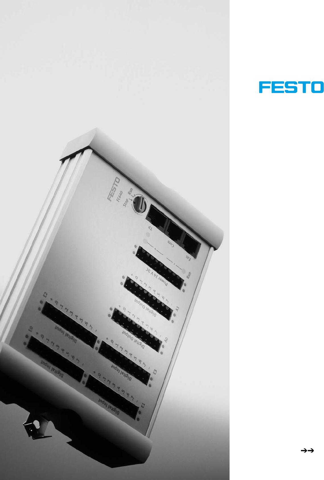 IPC FEC Standard 13 02 30 60 Info 804 Resumo das principais características Festo Br.2 IPC FEC® Standard Tecnologia eletrônica de controle O controlador que requer pouco trabalho de instalação O IPC FEC® Standard é mais do que um simples sistema de controle compacto. Ele prova que sempre é possível inovar. O corpo robusto em perfil de alumínio oferece solidez aos controladores pequenos, que graças à ampla gama de produtos, variando de 24 a 52 entradas/saídas, podem ser adaptadas a qualquer projeto. Como as ligações são feitas pelo painel frontal, todo este espaço é bem aproveitado. O conector SAC - sensor-atuator-conector - utilizado pela primeira vez no mundo todo substitui em grande parte a régua de bornes para as entradas e saídas. Essa é a grande vantagem do painel de comando com o IPC FEC® Standard: economia de até 50% de espaço e de até 40% do tempo. Os contadores rápidos integrados em cada CPU permitem que até mesmo um pequeno controlador realize contagens e operações simples de posicionamento. As entradas e saídas analógicas opcionais fazem do FEC um controlador de processos. As duas interfaces seriais em cada CPU fazem do IPC FEC® Standard um talentoso e inteligente componente de comunicação – programação através de uma interface, operação e monitoramento através de outra – simultaneamente. Quando se fala de comunicação hoje, pensa-se em Ethernet, a rede das redes. Naturalmente é possível integrá-la ao IPC FEC® Standard, pois a tecnologia de automação inteligente exige esse tipo de tecnologia de redes de comunicação. Com a Ethernet e o servidor web, o IPC FEC® Standard torna-se o precursor da tecnologia de visualização de amanhã: navegando através do controlador. Resumo das principais características Festo Br. 3 IPC FEC® Standard Tecnologia eletrônica de controle Hardware O IPC FEC® Standard tem uma trava para o trilho DIN e conectores para a fixação com parafusos na placa de montagem. O acesso a todas as conexões é pela frente, de modo que não há necessidade de espaço adicional para conexões na parte superior ou inferior. Fonte de alimentação - Fonte de alimentação, 24 V cc (+25%/–15%) para o controlador; fonte de alimentação: 24 V cc (+/–25%) para os sinais de entrada, comutação positiva; - Sinais de saída 24 V cc 400 mA, proteção contra curto-circuito. As entradas/saídas analógias são 0(4) ... 20 mA, resolução de 12 bits. Interfaces seriais Todo IPC FEC® Standard é equipado com duas interfaces seriais – COM e EXT. Trata-se de interfaces universais TTL com uma faixa máxima de transmissão de dados de 115 kBit/s. Conforme a necessidade, as interfaces podem ser utilizadas como RS232 (SM14 ou SM15) ou como RS485 (SM34). O adaptador deve ser encomendado separadamente. A interface COM é normalmente utilizada com o SM14 para a programação, enquanto que a interface EXT pode ser usada para um dispositivo IHM, um modem ou outros dispositivos com interface serial. Interface Ethernet As versões IPC FEC® Standard com interface Ethernet são do tipo 10 BaseT com conexão RJ45 e uma faixa de transmissão de dados de 10 MBit/s. Um LED combinado “link/ ativo” indica o status da conexão. O IPC FEC® Standard suporta a comunicação de dados e programação/diagnóstico através da interface Ethernet. Programação O IPC FEC® Standard é programado através do FST. FST é uma linguagem de programação única, rica em tradição e muito fácil de ser utilizada, que permite “a programação do jeito que a gente pensa”: SE... ENTÃO... SENÃO FST também suporta a operação passo a passo para programação seqüencial. FST pode ser utilizada para programação via Ethernet: um servidor web também está disponível. Resumo das principais características Festo Br.4 IPC FEC® Standard Tecnologia eletrônica de controle O IPC FEC® Standard IPC FEC® Standard Corpo em perfil de alumínio Montável em trilho DIN 2 interfaces seriais FC4XX 16 entradas digitais 8 saídas digitais 4 slots (96,3 mm) FC400 FC440 Ethernet 10BaseT FC6XX 32 entradas digitais 16 saídas digitais 6 slots (138,9 mm) FC600 FC640 Ethernet 10BaseT FC620/660 3 entradas analógicas 1 saída analógica FC620 FC660 Ethernet 10BaseT Resumo das características principais Festo Br. 5 IPC FEC® Standard Tecnologia eletrônica de controle 1 1 2 3 5 4 6 O princípio do IPC FEC® Standard 1 16 entradas digitais em cada, SLOT 24 V cc, comutação positiva (PNP) 2 Opcional: 3 entradas analógicas/1 saída analógica 3 8 saídas digitais em cada slot 4 Alimentação 5 Chave RUN/STOP 6 2 interfaces seriais, Ethernet opcional Resumo das principais características Festo Br.6 IPC FEC® Standard Tecnologia eletrônica de controle O conector SAC Junto com o IPC FEC® Standard, foi lançado o conector SAC, um conceito inovador de instalação que une em um espaço mínimo três funções: – Conexão das entradas e saídas, bem como a alimentação. – Indicação de status por LED. – Substituição da régua de bornes para os sensores e atuadores. Esse conector tem três linhas de encaixe com ligações elétricas internas para alimentação 0 V e 24 V cc. Dessa forma cada sensor ou atuador pode ser conectado diretamente ao controlador, dispensando o borne externo. É possível economizar até 50% de espaço no painel de controle. A tecnologia de contato utilizada no SAC é a tecnologia de mola de tração, de modo que não é preciso aparafusar a conexão. Se o fio for maciço, ele é apenas encaixado. Não é necessário usar terminais para cabos. Graças à tecnologia da mola de tração e a não utilização de bornes entre o controlador e os sensores, é possível economizar até 40% do tempo utilizado para conectar os sensores e atuadores. A distribuição dos pinos para as entradas e saídas é simples e sempre igual: Pino 1 +24 V cc Pino 2 Bit 0 Pino 3 Bit 1 Pino 4 Bit 2 Pino 5 Bit 3 Pino 6 Bit 4 Pino 7 Bit 5 Pino 8 Bit 6 Pin