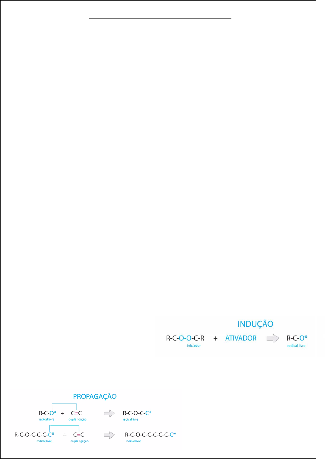 FOTOPOLIMERIZAÇÃO E FOTOPOLIMERIZADORES Um centímetro que é distanciado a luz do objeto a ser polimerizado é perdido em torno de 25% a 40% da potência. Polimerização é a reação química que dá origem aos polímeros. As unidades estruturais que dão origem aos polímeros são denominados monômeros. * É transformado as pequenas moléculas de monômeros em cadeias de polímeros. Se é feito com muita eficiência, melhor será a qualidade do polímero. Quanto menos for a união dos monômeros em cadeias poliméricas, menor será a qualidade do material. Quando polimerizados os compósitos dentários, compostos de monômeros de dimetacrilato, criam cadeias poliméricas tridimensionais. O processo de polimerização do material é a transformação de monômeros em polímeros. É na matriz orgânica das resinas compostas que ocorre o processo de polimerização. Exemplos de matriz orgânica: Metil Metacrilato (MMA) Bisfenol Glicidil Metacrilato (Bis – GMA) Trietileno Glicol Dimetacrilato (TEGMA) Uretano Dimetacrilato (UDMA) Silorano Processos de polimerização: Polimerização química: (praticamente não usa mais) - Base + catalizador - Iniciador: peróxido de benzoíla - Ativador: amina terciária Polimerização física: (mais usado) - Pasta única - Iniciador: fotoativador + amina ativadora - Ativados por luz Polimerização Dual: - Dois sistemas de ativação: químico + físico Mecanismo de fotopolimerização: Exitação do fotoiniciador pela luz, que interage com uma amina terciária liberando radicais livres. * O iniciador é uma molécula orgânica que está presente dentro da resina composta e está misturado com outros componentes da resina. * Ao jogar o ativador (luz), a ligação entre os oxigênios será rompida (processo de indução). Após o rompimento, há a formação de dois radicais livres. A liberação de radicais livres, faz com que as duplas ligações de carbono sejam quebradas, liberando mais radicais livres, que proporcionam a propagação do processo de polimerização. * Após a formação do radical livre, ele irá entrar em contato com as moléculas da matriz orgânica da resina. O radical livre irá agir na ligação dupla de carbono e irá quebrar a ligação dupla. Vão ter várias moléculas com ligações duplas dentro da matriz orgânica quebradas. Para as moléculas se estabilizarem, elas precisam fazer uma nova ligação, então elas irão fazer ligação com outra molécula que também está desestruturada. Algumas irão se unir, outras parcialmente e outras não irão conseguir. A medida que o material vai se tornando mais rígido, dificulta a ocorrência de reações químicas responsáveis pela polimerização e a terminação acaba por finalizar este processo. * Quando o radical livre também possui uma ligação de oxigênio instável, ele irá achar uma molécula de carbono instável e irá se unir terminando a macromolécula e será chamada de polímero. Fotoiniciador: Canforoquinona – mais utilizada - Excitada pela luz visível de cor azul, entre 400 nm e 550 nm, com o pico de absorção na faixa de 468 nm; - Cor amarela; * A luz estimula e ativa a canforoquinona criando os radicais livres. * A luz do foco da cadeira também pode ativar pois a luz branca é a união de todas as cores e possui o comprimento de luz azul que ativa. Porém é em baixíssima potência não substituindo o fotopolimerizador por exemplo. Sistema de ativação por luz visível As unidades fotoativadoras atuais emitem radiação dentro do espectro da luz visível. Unidades de fotoativação: Lâmpadas halógenas de quartzo e tungstênio; - A luz halógena compreende um espectro amplo e é emitida em comprimentos de onda entre 350 e 700 nm; (muito efetivo para polimerização) - Operam em uma faixa de 400 e 500 mW/cm2, sendo que alguns podem chegar a 1.100 mW/cm2; (para uma boa efetivação da resina atualmente é necessário no mínimo 600 mW) - Vantagens: Boa efetividade e baixo custo; - Desvantagens: Espectro contínuo e largo – necessidade de filtros (filtros de luz), altas temperaturas e alto nível de ruído – sistema de ventilação e vida útil pequena (50h a 100h). Diodos emissores de luz (LED); - 1° Geração: Densidade de potência entre 100 e 150 mW/cm2; Espectro entre 450 a 490 nm. (geração meio fracassada) - 2° Geração: Densidade de potência entre 300 a 1.100 mW/cm2; Espectro: entre 450 a 490nm; - 3° Geração: Densidade de potência: acima de 1.100 mW/cm2; Diferentes diodos: espectro entre 375 a 510 nm; (não possui em si desvantagens) - Vantagens: Vida útil maior – 10.000h; Não provoca aquecimento; Baixo consumo de energia; Equipamento compactos – sem filtros ou sistema de refrigeração. - Desvantagens: Baixa potência – 300mW/cm2; Estreito intervalo de emissão espectral (440 a 490 nm) Arco de plasma; (não é muito efetivo na polimerização e é caro) Laser de argônio; (esquenta muito) Intensidade de luz ou densidade de potência É medida em quantidade de energia por área de superfície – mW/cm2; Deve ser suficiente para ativar o fotoiniciador presente no material e produz o número aceitável de radicais livres que possam levar a uma adequada polimerização. Densidade de energia – ( J/cm2) * Quanto maior a potência, maior tempo de exposição, maior será a densidade de energia. É a intensidade de luz (ou densidade de potência) (mW/cm2) X tempo de exposição (seg); É a energia total resultante da exposição; Energia ideal para uma polimerização adequada Se uma resina necessita de 8J/com2 (8.000mJ/cm2) como energia para sua ativação, podem ser feitas várias combinações como: - Aparelhos com 400mW/cm2 – polimerização de 20s = 8.000mJ/cm2 - Aparelhos com 200mW/cm2 – polimerização de 40s = 8.000mJ/cm2 - Aparelhos com 800mW/cm2 – polimerização de 10s = 8.000mJ/cm2 - Aparelhos com 1.000mW/cm2 – polimerização de 8s = 8.000mJ/cm2 * Ao dobrar a potência, quebra no meio a quantidade do