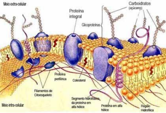 BIOLOGIA CELULAR Estudo dirigido Membrana Plasmática - estrutura e função 1- Cite as principais funções da membrana 2- Observando a imagem abaixo, por que esse modelo é chamado de mosaico fluido? Qual a composição da membrana plasmática? 3- Qual o papel da água na formação da bicamada lipídica das membranas? 4- Três principais tipos de lipídios são encontrados nas membranas biológicas de organismos eucariotos. Cite quais são e suas respectivas características. 5- Como se pode demonstrar experimentalmente que a membrana é fluida? Por que se diz que ela é um fluido bidimensional? 6- O que determina a fluidez da membrana? E quais fatores podem influenciar? 7- Sabemos que a monocamada extracelular da membrana celular é diferente da intracelular. Assinale a alternativa relativa a lipídios típicos da camada extracelular da membrana plasmática: a) Fosfatidilcolina, fosfatidilserina, esfingomielina b) Esfingomielina, fosfatidilinositol, colesterol c) Fosfatidilcolina, glicolipídeos, esfingomielina d) Colesterol, fosfatidilcolina, fosfatidilserina 8- Explique como ocorre a síntese de membranas. 9- Assinale V (verdadeiro) ou F (Falso) para as afirmações abaixo. Corrija a frase que não for verdadeira. a-) Flipases são enzimas que realizam o movimento de flip-flop que é responsável pela transferência de fosfolipídios para a camada oposta ( ) b-) O fato de proteínas uni passo conseguirem transpassar a membrana plasmática é porque elas se organizam em folhas β torcidas. ( ) c-) Fosfodilserina é um fosfolipídeo presente na membrana. Quando as células entram em apoptose, a fosfodilserina é translocada para a monocamada que faz contato com o meio extracelular e serve como um marcador de morte celular.( ) d-) Os grupos sanguíneos do sistema ABO são definidos de acordo com o tipo de lipídeo composto na membrana da hemácia ( ) 10-) Quais são os tipos de movimento dos lipídeos no plano da membrana? 11-) Qual o significado do termo “assimetria da membrana”? Qual a relação com as flipases seletivas? 12-) O que são domínios de membrana? 13-) Observe a ilustração abaixo e assinale a alternativa correta em relação ao tipo de inserção de proteínas na membrana (as afirmações referem-se às proteínas representadas em verde). I. Em 1 temos uma proteína transmembrana unipasso II.Em 3 temos uma proteína transmembrana multipasso III. Em 6 temos uma proteína periférica da membrana IV.Em 5 temos uma proteína integral da membrana V.Em 7 e 8 temos proteínas integrais da membrana VI. As proteínas 5, 7 e 8 estão ligadas covalentemente à membrana Assinale a alternativa correta a) As alternativas I, III e IV são verdadeiras b) As alternativas III, V e VI são verdadeiras c) As alternativas I, II e IV são verdadeiras d) As alternativas I, II e V são verdadeiras 14-) Como se explica a morfologia bicôncava das hemácias, isto é, o que faz com que elas não sejam simplesmente esféricas como um lipossomo? 15-) Qual o papel do glicocálice nas membranas biológicas? 16) O que é permabilidade seletiva? 17) Caracterize o modelo do "mosáico fluido" para membrana plasmática(Singer & Nicholson, 1972). 18) Diferencie transporte ativo e passivo. 19) Conceitue: transporte uniport, simport e antiport. 20) Diferencie difusão simples e facilitada. 21) Cite exemplos de transporte ativo na célula animal e vegetal.