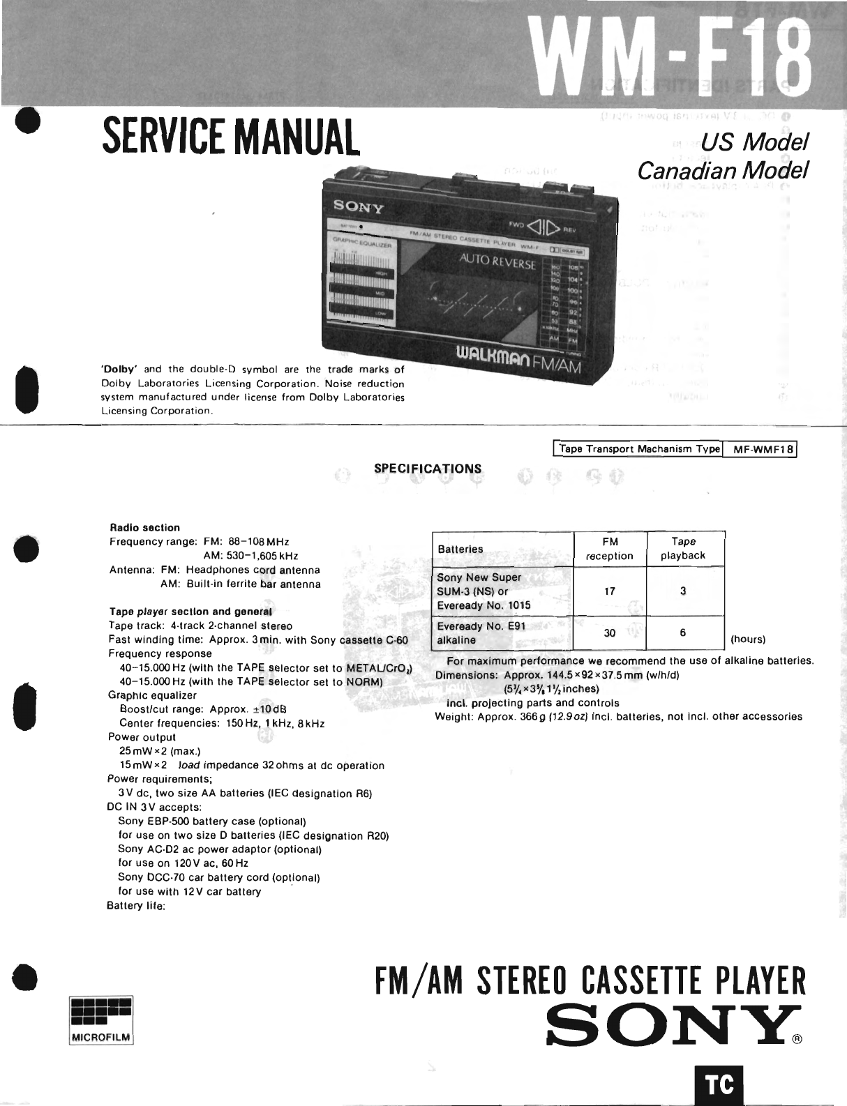 SONY, tape recorder Service Bulletin No.197 ______________.... Subject: Technical Department Sony ServIce Company A Division of Sony Corporation of America Sony Dnve. Park Ridge. New Jersey 07656 Date: May 12, 1986 Model: WM-F18 Reference Number Correction SWITCH, LEAF (FF, REW, PLAY) The reference number for the LEAF SWITCH (FF, REW, PLAY) in the parts list on page 26 is incorrect. Please note the correction as follows: Reference No. Incorrect Correct Descriotion Part Number S602 S601 SWITCH. LEAF (FF. REW t PLAY) 3-597-352-01 2TC486-2 Printed In USA