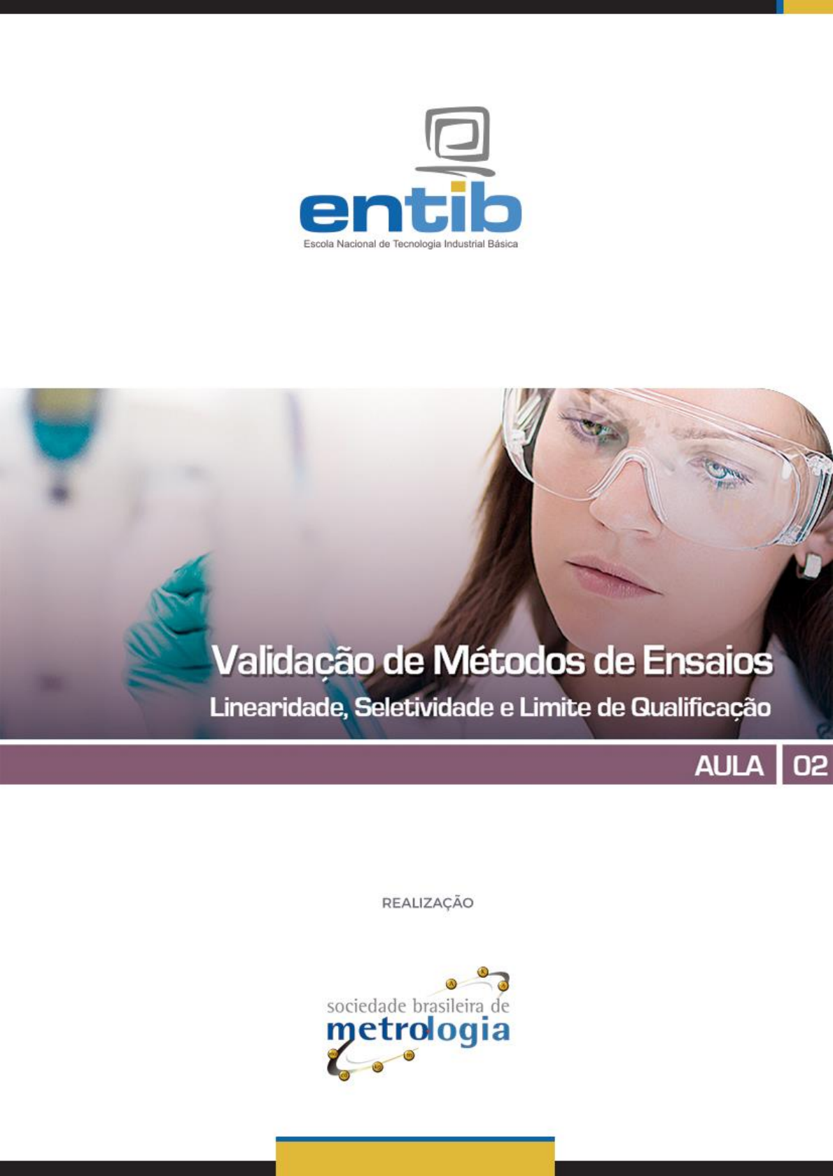 Sumário Apresentação .................................................................................................................................... 3 1. Etapas iniciais da validação de método ....................................................................................... 4 2. Linearidade e a curva de calibração ............................................................................................ 4 2.1. Faixa de Trabalho ........................................................................................................................ 9 2.2. Etapas para determinar a faixa linear e a linearidade: .............................................................. 14 2.3. Coeficiente de correlação linear r .............................................................................................. 15 2.4. Coeficiente de determinação R² ................................................................................................ 16 3. Seletividade ............................................................................................................................. 17 4. Limite de Detecção................................................................................................................... 22 4.1. Avaliação/Percepção visual ....................................................................................................... 22 4.2. Relação Sinal/Ruído ................................................................................................................... 22 4.3. Estimativa a partir da curva analítica ......................................................................................... 23 4.3.1. Método simplificado .................................................................................................................. 23 4.3.2. Método completo ...................................................................................................................... 23 4.4. Estimativa pelo desvio padrão do branco .................................................................................. 24 4.4.1. Branco de amostra .................................................................................................................... 24 4.4.2. Branco da amostra com adição da menor concentração aceitável do analito .......................... 25 4.5. Comentários sobre o Limite de Detecção .................................................................................. 26 5. Limite de Quantificação............................................................................................................ 27 5.1. Avaliação / Percepção visual ..................................................................................................... 27 5.2. Relação Sinal/Ruído ................................................................................................................... 27 5.3. Estimativa a partir da curva analítica ......................................................................................... 28 5.4. Estimativa pelo desvio padrão do branco .................................................................................. 28 5.4.1. Branco de amostra .................................................................................................................... 28 5.4.2. Branco da amostra com adição da menor concentração aceitável do analito .......................... 29 5.5. Estimativa por meio da curva de desvios padrão ...................................................................... 30 5.6. Considerações sobre o LQ ......................................................................................................... 30 3 Apresentação Olá! Seja muito bem-vindo à segunda aula do curso de Validação de Métodos de Ensaios. Na aula de hoje apresentaremos as etapas práticas iniciais da validação de um método. Iremos aprender como avaliar uma curva de calibração e estipular a faixa de trabalho adequada para operação do método, no qual os resultados possuem seletividade e linearidade confiáveis. Além disto iremos aprender como estipular o Limite de Detecção e Quantificação de um ensaio. Prontos para começar? Então vamos lá! 4 1. Etapas iniciais da validação de método O bom desempenho de qualquer técnica analítica depende de dois parâmetros cruciais: a qualidade das medidas instrumentais e a confiabilidade estatística dos cálculos envolvidos no processo. Estabelecer os limites destes parâmetros por meio da estimativa dos indicadores de qualidade do método, na etapa de validação, é uma forma de assegurar a aplicabilidade e o alcance do método utilizado. Mas o que são estes indicadores? Indicadores de qualidade do método são indicadores quantitativos do bom desempenho das técnicas utilizadas, ou seja, são passos requeridos como evidência objetiva da validação do método analítico. Veja quais são eles: Linearidade; Seletividade; Limite de Detecção (LD); Limite de Quantificação (LQ); Exatidão (Tendência/Recuperação); Precisão (repetibilidade, precisão intermediária e reprodutibilidade); Robustez. A partir de agora falaremos um pouco mais sobre cada um deles... Começando por Linearidade. 2. Linearidade e a curva de calibração Linearidade é a capacidade de um método analítico de produzir resultados que sejam diretamente proporcionais à concentração* do analito em amostras, dentro de uma determinada faixa de concentração. A quantificação** requer que se conheça a dependência entre a resposta medida (Exemplo: A área de um cromatograma ou a absorbância de um determinado comprimento de onda), e a concentração do analito, que nada mais é do que aquilo que se pretende avaliar ou medir. 5 Observações: * Concentração é a quantidade de matéria existente na amostra. ** Quantificação é o ato de atribuir uma quantidade de determinada unidade de medida a uma amostra. Exemplo: Q