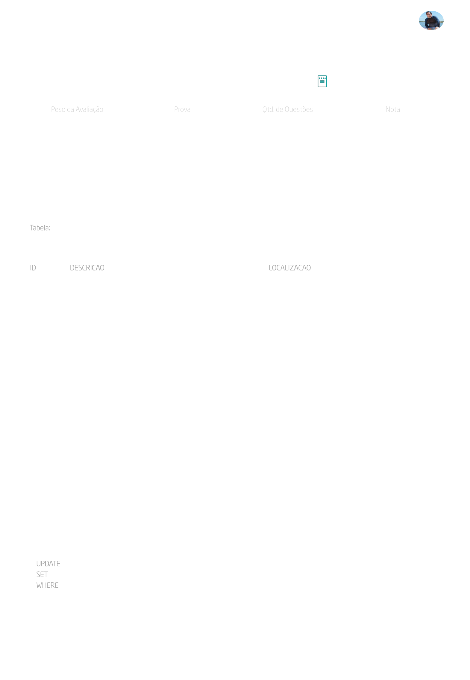 GABARITO | Avaliação Final (Discursiva) - Individual (Cod.:955134) Peso da Avaliação 2,00 Prova 79761307 Qtd. de Questões 2 Nota 8,00 A manipulação ou atualização de tabelas é possível usando os comandos de linguagem de manipulação de dados (DML). Os comandos DML mais comuns são (INSERT, UPDATE e DELETE). Estes comandos permitem aos utilizadores alterar linhas em tabelas existentes sem afetar o esquema ou a definição dos objetos da base de dados. Analise a tabela a seguir que descreve a localização de produtos em um estante de cinco prateleiras: Tabela: PRODUTOS ID DESCRICAO LOCALIZACAO 1 Queijos PRATELEIRA 1 2 Legumes PRATELEIRA 2 3 Carnes PRATELEIRA 3 4 Frutas PRATELEIRA 4 5 Bebidas PRATELEIRA 5 A partir da tabela dada, elabore um comando DML que altere a LOCALIZAÇÃO do produto de Carnes da PRATELEIRA 3 para PRATELEIRA 4: Resposta esperada UPDATE PRODUTOS SET LOCALIZACAO = ‘PRATELEIRA 4' WHERE ID = 3; O comando UPDATE modifica os valores de uma ou mais tuplas (linhas) das tabelas selecionadas. Nesse comando, a cláusula WHERE determina quais são as linhas da tabela selecionadas para modificação. Em sua forma fundamental, um comando de modificação UPDATE assume a forma UPDATE SET WHERE. Minha resposta VOLTAR A+ Alterar modo de visualização 1 Alexandre Henrique Miranda Rosas Segunda Licenciatura em Informática (7206380) UPDATE PRODUTOS SET LOCALIZACAO = 'PRATELEIRA 4' WHERE ID = 3; O comando UPDATE é utilizado para atualizar informações em uma ou mais linhas de uma tabela. Na estrutura do comando UPDATE indica que queremos atualizar informações, depois o nome da tabela a ser atualizada, SET define as colunas que serão atualizadas e seus novos valores, depois o nome das colunas junto com seus novos valores, WHERE estabelece a condição para a atualização ocorrer, depois a condição que deve ser verdadeira para que a atualização seja aplicada, combinando colunas e operadores e no final o ;. A estrutura básica da sintaxe do comando UPDATE em SQL é a seguinte: UPDATE [tabela_nome] SET [coluna1] = [valor1], [coluna2] = [valor2], ... WHERE [condição]; Retorno da correção Acadêmico, você Contemplou satisfatoriamente o esperado Apresentou elementos com base nos materiais, agurmentando com suas palavras, porém, não abordou com profundidade os conteúdos fundamentais a cerca da questão apresentada. Ao escrever um texto dissertativo é preciso inferir, interpretar, sintetizar , não se trata apenas de transcrever as palavras. Esta orientação é para que nas próximas avaliações você responda à questão com construção própria. Bons Estudos! À medida que a tecnologia continua a evoluir, aumenta também a importância do Database Management System (DBMS) nas empresas. Com a ajuda do DBMS, as empresas podem gerenciar facilmente seus dados com mais eficiência e segurança do que nunca. Permitindo que eles armazenem e recuperem dados de maneira rápida e fácil, além de garantir a segurança dos dados, facilitando a tomada de decisões com base em informações precisas. Finalmente, para os autores, uma das vantagens mais importantes da implementação de um DBMS é otimizar processos manuais empresariais, agilizando suas operações e aumentando a eficiência de seu fluxo de trabalho e, assim, reduzir os custos. Dentro desse contexto, disserte sobre os processos e efeitos de um DBMS na automatização de tarefas nas empresas. Resposta esperada Com a ajuda de um DBMS, as empresas podem facilmente criar e manter bancos de dados para vários casos de uso, como gerenciamento de relacionamento com clientes, as informações são centralizadas e padronizadas, o que ajuda a evitar a duplicação de dados e a reduzir erros, na análise financeira, gerenciamento de estoque, como criação de relatórios, execução de consultas e análise de dados. Referente à automatização de tarefas se tem a capacidade de automatizar tarefas repetitivas. Por exemplo, um DBMS pode ser programado para enviar automaticamente um e-mail de lembrete para clientes que têm faturas em atraso. Isso economiza tempo e reduz erros humanos, melhorando a eficiência da empresa. Além disso, um DBMS pode ser integrado a outros sistemas de software, como sistemas de gerenciamento de estoque ou sistemas de faturamento. Isso permite que a empresa tenha uma visão mais completa e atualizada de suas operações, o que ajuda a tomar decisões mais informadas e eficazes. Minha resposta A utilização de um Database Management System (DBMS) é crucial para automatizar tarefas empresariais, impactando positivamente os processos e operações de várias maneiras: permite armazenamento eficiente de Dados em grandes volumes de forma estruturada, eliminando a necessidade de registros em papel ou planilhas múltiplas, evitando a duplicação desnecessária de dados; permite a recuperação rápida de Dados oferecendo mecanismos de consulta eficientes para recuperar dados rapidamente ajudando na tomada de decisão; melhora a segurança dos dados através de recursos avançados de segurança, como controle de acesso e criptografia, que protegem informações confidenciais contra acesso não autorizado; automatiza tarefas repetitivas, como backups automáticos, relatórios periódicos e notificações, reduzindo erros humanos e atrasos; facilita a integração entre sistemas e aplicativos, simplificando os fluxos de trabalho e aumentando a eficiência operacional e permite análises avançadas para extrair insights valiosos, facilitando decisões estratégicas. Os DBMS tornam os processos empresariais mais eficientes, seguros e ágeis, resultando em otimização de fluxos de trabalho, redução de custos e tomada de decisões através de uma visão mais fundamentada e atualizada, baseada em dados concretos. Retorno da correção Acadêmico, você Contemplou satisfatoriamente o esperado Apresentou elementos com base nos materiais, agurmentando com suas palavras, porém, não abordou com profu