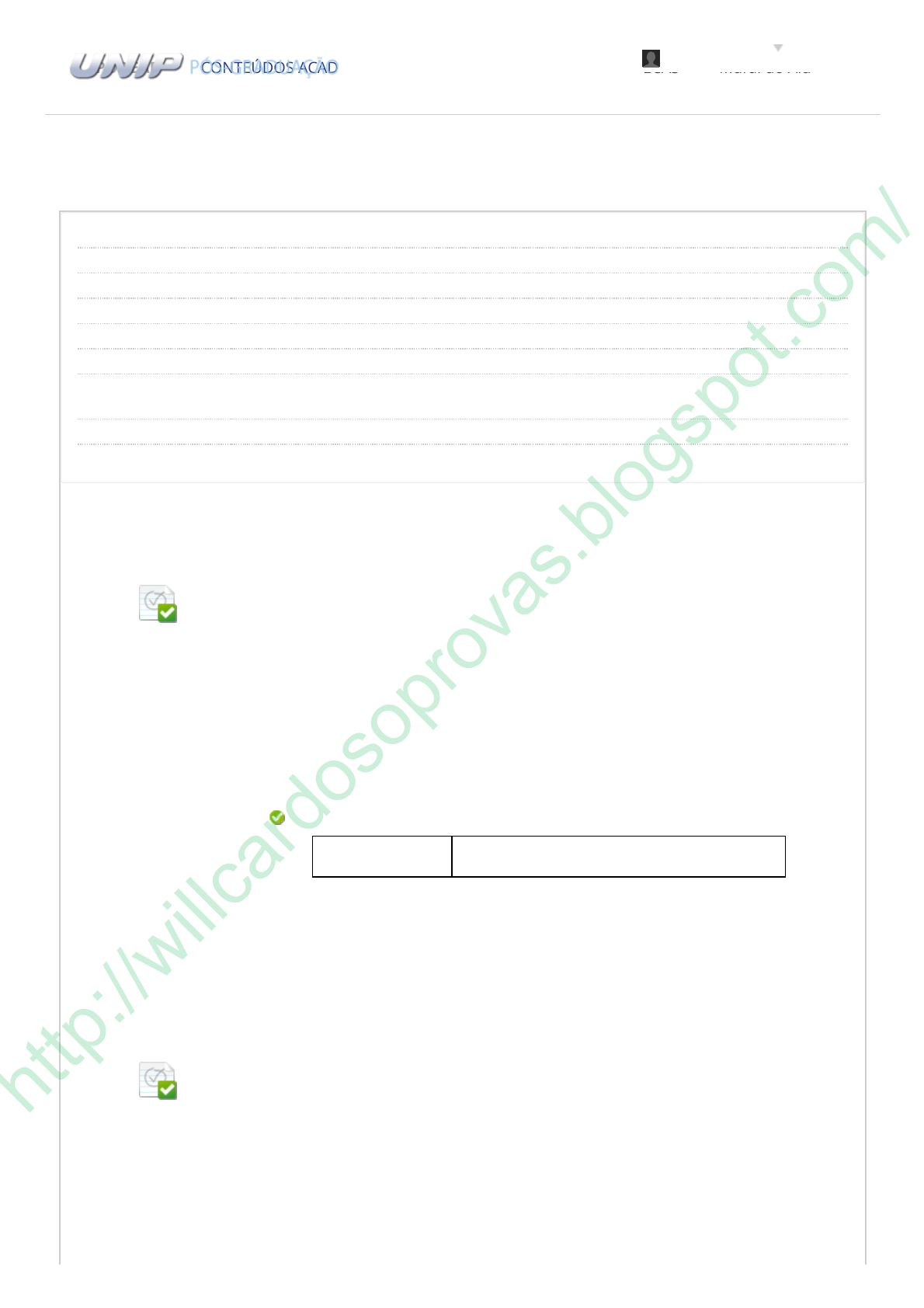 10/01/2022 19:10 Revisar envio do teste: Avaliação – Gestão de Projetos ... https://ava.ead.unip.br/webapps/assessment/review/review.jsp?attempt_id=_74545777_1&course_id=_55810_1&content_id=_851690_1&return_… 1/6 Revisar envio do teste: Avaliação Gestão de Projetos de Tecnologia da Informação 14195-40-ED97402_06_12-202132 Avaliação da Disciplina Usuário Curso Gestão de Projetos de Tecnologia da Informação Teste Avaliação Iniciado 10/01/22 19:07 Enviado 10/01/22 19:10 Status Completada Resultado da tentativa 7 em 7 pontos Tempo decorrido 2 minutos de 1 hora Resultados exibidos Todas as respostas, Respostas corretas, Comentários, Perguntas respondidas incorretamente Pergunta 1 Respostas: a. b. c. d. e. Comentário da resposta: Com relação às caracterís�cas que devem ser intrínsecas a um gerente de projeto, qual alterna�va abaixo não é uma habilidade gerencial? Comunicação Liderança Negociação Resolução de problemas Passividade Alternativa correta E (Unidade I – 1.1 Por que gerenciar projetos?) Pergunta 2 Respostas: a. b. Um projeto pode ser interpretado como um conjunto de tarefas ou a�vidades temporárias, ou seja, a�vidades que contenham explicitamente uma duração – início e fim –, mesmo que o fim seja uma previsão. Acerca da gestão de projetos, assinale a alterna�va correta. Os projetos têm como caracterís�ca intrínseca serem constantes, e não singulares CONTEÚDOS ACADÊMICOS COMUNIDADES BIBLIOTECAS Mural do AlunoPÓS EAD 0,7 em 0,7 pontos 0,7 em 0,7 pontos Soliane Pereira 3 htt p:/ /w illc ard os op rov as .bl og sp ot. co m/ https://ava.ead.unip.br/webapps/blackboard/execute/courseMain?course_id=_55810_1 https://ava.ead.unip.br/webapps/blackboard/content/listContent.jsp?course_id=_55810_1&content_id=_851682_1&mode=reset https://ava.ead.unip.br/webapps/portal/execute/tabs/tabAction?tab_tab_group_id=_70_1 https://ava.ead.unip.br/webapps/portal/execute/tabs/tabAction?tab_tab_group_id=_69_1 https://ava.ead.unip.br/webapps/portal/execute/tabs/tabAction?tab_tab_group_id=_67_1 https://ava.ead.unip.br/webapps/portal/execute/tabs/tabAction?tab_tab_group_id=_68_1 https://ava.ead.unip.br/webapps/portal/execute/tabs/tabAction?tab_tab_group_id=_66_1 https://ava.ead.unip.br/webapps/login/?action=logout 10/01/2022 19:10 Revisar envio do teste: Avaliação – Gestão de Projetos ... https://ava.ead.unip.br/webapps/assessment/review/review.jsp?attempt_id=_74545777_1&course_id=_55810_1&content_id=_851690_1&return_… 2/6 c. d. e. Comentário da resposta: Assim como as operações de uma organização, os projetos não têm data es�pulada para a respec�va conclusão Os projetos somente servem para ser implementados no nível operacional da organização Os projetos sempre são criados para terem curta duração, senão perdem a essência Os projetos caracterizam-se por serem únicos. Assim, a criação e o desenvolvimento de um produto pode ser citado como exemplo de projeto Alternativa correta E (Unidade I – 1.1 Por que gerenciar projetos?) Pergunta 3 Respostas: a. b. c. d. e. Comentário da resposta: Os projetos compar�lham de propriedades e/ou caracterís�cas por vezes idên�cas ou semelhantes, porém algumas são intrínsecas a projetos de TI. Com relação à gestão de projetos, são bene�cios para a equipe do projeto, exceto: Par�cipar de uma equipe coesa, integrada e direcionada aos obje�vos do projeto Aumento da confiança de cada membro da equipe em poder executar e completar o trabalho Aumento do orgulho profissional pela capacidade de desenvolvimento do trabalho Aumento da confiança na capacidade empresarial da organização Par�cipar de um projeto de médio porte Alternativa correta D (Unidade I – 1.3 Projetos de TI: características) Pergunta 4 Dentre as principais funções atribuídas aos escritórios de gerenciamento de projetos, é possível mencionar: dar suporte à gestão dos projetos, disseminar e aperfeiçoar a metodologia de gerenciamento, suas ferramentas e documentos padrões, além de manter a memória técnica das ações levadas a efeito na organização. Paralelamente, qual outro obje�vo tem os escritórios de gerenciamento de projetos presentes nas organizações? 0,7 em 0,7 pontos 0,7 em 0,7 pontoshtt p:/ /w illc ard os op rov as .bl og sp ot. co m/ 10/01/2022 19:10 Revisar envio do teste: Avaliação – Gestão de Projetos ... https://ava.ead.unip.br/webapps/assessment/review/review.jsp?attempt_id=_74545777_1&course_id=_55810_1&content_id=_851690_1&return_… 3/6 Respostas: a. b. c. d. e. Comentário da resposta: Subs�tuir os gestores no processo de tomada de decisão a respeito dos projetos estratégicos Estabelecer padrões para a administração de projetos e auditar a sua aplicação Monitorar o desempenho dos gestores de projetos no processo de tomada de decisão dos projetos estratégicos Disponibilizar informações que contribuam no processo de tomada de decisão estratégica sobre projetos Apoiar a contratação e seleção de gestores de projetos Alternativa correta D (Unidade I – 1.6 Escritório de projetos – Project Management O�ce – PMO) Pergunta 5 Respostas: a. b. c. d. e. Comentário da resposta: Sobre o gerenciamento de projetos de Tecnologia Da Informação (TI), qual caracterís�ca pode ser relacionada um escritório de projeto? Funcional: atende toda a organização, e seu foco são as questões estratégicas separadas por divisão ou unidades de negócio Deve possuir um sistema de informação capaz de mensurar o valor agregado pelos projetos, captando e calculando a variação entre o planejado e o real do custo, tempo de conclusão e tendências Apresenta como uma de suas desvantagens a concentração, em uma única área funcional, de todo o conhecimento sobre gestão de projetos, podendo levar à criação de redutos individuais na organização Corpora�vo: é u�lizado em áreas específicas e organizado de acordo com o perfil dos clientes, de