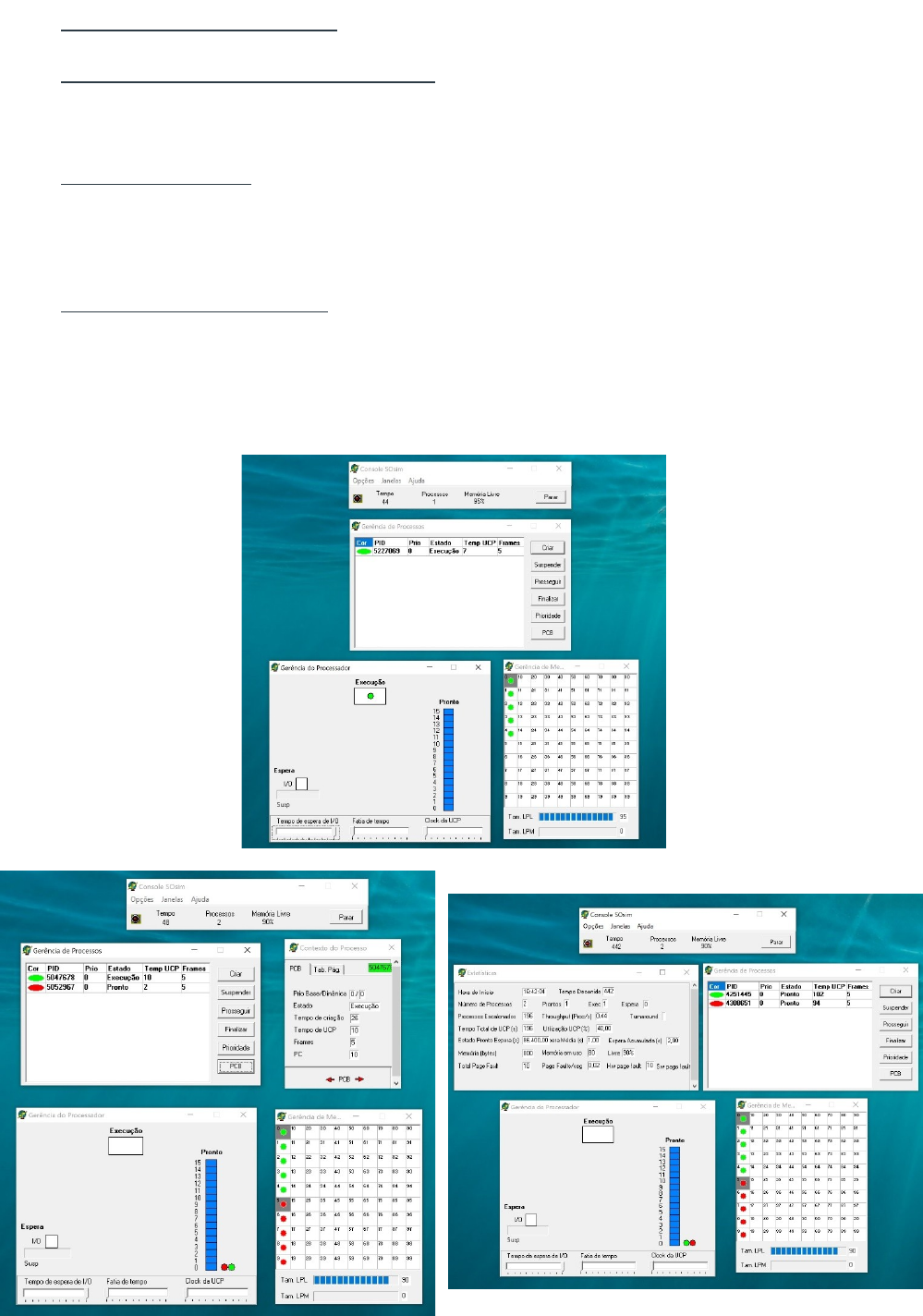 <p>Juan da Silva Fábio</p><p>Atividade 1 – Criação de processos</p><p>Questão teórica para responder com a ajuda do simulador:</p><p>Com base nas observações o processo é CPU Bound, pois não necessita a inteiração do usuário e executa automaticamente no sistema.</p><p>Atividade 2 – PCB</p><p>Questão teórica para responder com a ajuda do simulador:</p><p>Todos os processos CPU Bound o Estado, PC e Tempo de UCP são dinâmicos, enquanto no I/O Bound o Estado, Tempo e UCP e PC são estáticos, pois esperam a interação do usuário.</p><p>Atividade 3 – Estatísticas</p><p>Questão teórica para responder com a ajuda do simulador:</p><p>O sistema CPU Bound gerencia os processos de forma separada e em ordem, para que não haja erros ou incompatibilidade na hora da execução.</p><p>Prática de Simulação</p><p>image1.jpeg</p><p>image2.jpeg</p><p>image3.jpeg</p>