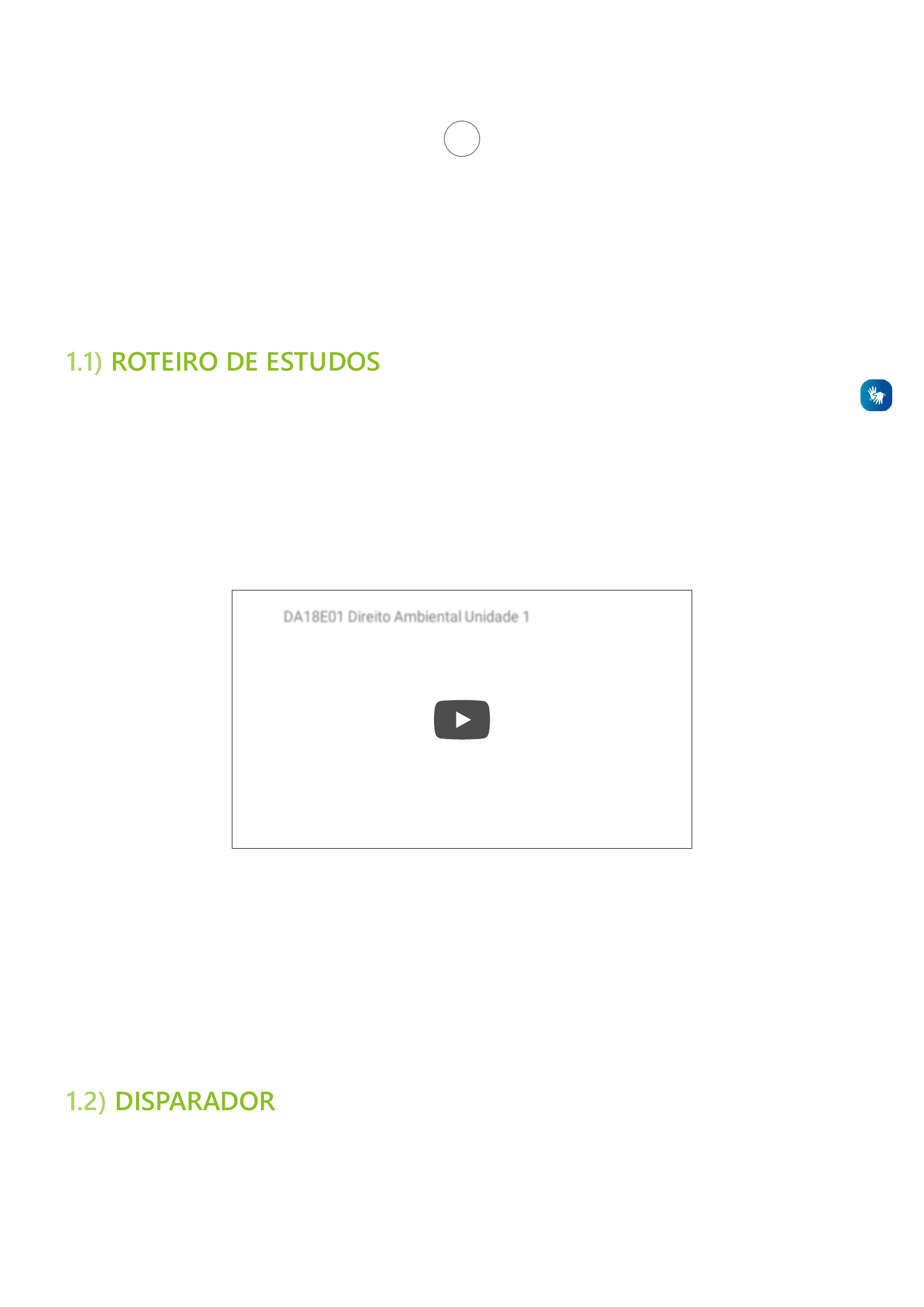 <p>14/10/2021 11:00 DIREITO AMBIENTAL: CONCEITO E TUTELA CONSTITUCIONAL</p><p>https://md.cneceduca.com.br/834/direito-ambiental/unidade-1/ 1/10</p><p></p><p>DIREITO AMBIENTAL: CONCEITO E TUTELA CONSTITUCIONAL</p><p>Pontos da Unidade</p><p>1. Conceituando Direito Ambiental;</p><p>2. Princípios do Direito Ambiental;</p><p>3. Direito Ambiental Constitucional;</p><p>4. Conclusão.</p><p>Ao final desta unidade, você deverá ser capaz de:</p><p>- Reconhecer a importância do meio ambiente para a sobrevivência do ser humano;</p><p>- Identificar o conceito de Direito Ambiental e sua aplicação;</p><p>- Conhecer os princípios que regem o Direito Ambiental e sua aplicação;</p><p>- Compreender a atuação da Constituição Federal brasileira na proteção do Meio Ambiente.</p><p>O direito ao meio ambiente ecologicamente equilibrado é uma preocupação relacionada às injustiças promovidas pelo modelo de</p><p>desenvolvimentista que toma proporções catastróficas. Busca-se uma nova compreensão para mudança da relação do ser humano com a</p><p>natureza e seu papel enquanto cientista social e político. Nesta unidade será possível avaliar esta relação. Assista ao filme indicado e reflita.</p><p>Documentário Terra</p><p>DA18E01 Direito Ambiental Unidade 1DA18E01 Direito Ambiental Unidade 1</p><p>Unidade 1</p><p>ROTEIRO DE ESTUDOS1.1)</p><p>DISPARADOR1.2)</p><p>https://www.youtube.com/watch?v=eSIJKeXQHLQ</p><p>14/10/2021 11:00 DIREITO AMBIENTAL: CONCEITO E TUTELA CONSTITUCIONAL</p><p>https://md.cneceduca.com.br/834/direito-ambiental/unidade-1/ 2/10</p><p>Clique no ícone para acessar.</p><p>Inicialmente, será verificada a importância do meio ambiente para a sobrevivência do ser humano, sobretudo os riscos decorrentes da ação</p><p>humana.</p><p>Feita a análise do conceito de Direito Ambiental e sua aplicação enquanto guardião e protetor dos recursos ambientais, verificar-se-á como</p><p>os princípios que regem o Direito Ambiental são aplicados em consonância com a legislação vigente.</p><p>Nesta unidade será analisado o Capítulo da Constituição Federal brasileira responsável pela Tutela do Meio Ambiente.</p><p>O Direito possui um entendimento próprio sobre Meio Ambiente e a partir dele pode-se compreender como defendê-lo.</p><p>Para José Afonso da Silva (2011), Meio Ambiente “é a interação do conjunto de elementos naturais, artificiais e culturais que propiciem o</p><p>desenvolvimento equilibrado da vida em todas as suas formas”.</p><p>Segundo o art. 3º da lei 6.938/81, “É o lugar onde habitam os seres vivos, seu habitat. Esse meio físico interage com os seres vivos (meio</p><p>biótico), formando um conjunto harmônico de condições essenciais para a existência da vida como um todo”.</p><p>Lei 6.938/81</p><p>Clique no ícone para acessar.(FALTA LINK)</p><p>O Conceito de Meio Ambiente divide-se em:</p><p>a) Meio Ambiente Artificial: espaço urbano construído, consubstanciado no conjunto de edificações e equipamentos públicos (ruas,</p><p>praças, arquivos, bibliotecas e espaços urbanos abertos em geral). Art. 21 XX e Art. 182 e Art. 225 da CF/88;</p><p>b) Meio Ambiente Cultural: integrado pelo patrimônio histórico, artístico, arqueológico, paisagístico, turístico que mesmo sendo obra do</p><p>homem possui valor especial. Art. 215 e Art. 216 da CF/88;</p><p>c) Meio Ambiente Natural: constituído pelo solo, água, ar, fauna, flora, interação dos seres vivos e seu meio, onde se dá a correlação</p><p>recíproca entre as espécies e suas relações com o meio ambiente que ocupam. Inclui patrimônio genético e zona costeira. Previsão legal:</p><p>Art. 3º da lei nº 6.938/81 e Art. 225 da CF/88.</p><p>d) Meio Ambiente do Trabalho: integra a proteção do homem em seu local de trabalho com observância às normas de segurança.</p><p>Preocupa-se com a qualidade de vida do trabalhador. Previsão legal: Art. 200 VIII e Art. 7ºXXII da CF/88 (SIRVINSKAS, 2018).</p><p>Constituição Federal de 1988</p><p>Clique no ícone para acessar.</p><p>CONCEITUANDO SUSTENTABILIDADE</p><p>O conceito de sustentabilidade faz-se importante para identificar o movimento feito pelo ser humano em prol da manutenção de sua vida,</p><p>também relacionado ao Meio Ambiente.</p><p>INTRODUÇÃO1.3)</p><p>CONCEITUANDO MEIO AMBIENTE1.4)</p><p>https://www.youtube.com/watch?time_continue=4&v=XayjcbnaWco?rel=0</p><p>https://md.cneceduca.com.br/resources/834/INSERIR%20LINK</p><p>http://www.planalto.gov.br/ccivil_03/Constituicao/Constituicao.htm</p><p>14/10/2021 11:00 DIREITO AMBIENTAL: CONCEITO E TUTELA CONSTITUCIONAL</p><p>https://md.cneceduca.com.br/834/direito-ambiental/unidade-1/ 3/10</p><p>Para Sirvinskas (2018), “desenvolvimento ecologicamente equilibrado, desenvolvimento sustentável e ecodesenvolvimento – a conciliação</p><p>de duas situações: preservação do Meio Ambiente e necessidade de incentivar o desenvolvimento socioeconômico. Será possível com a</p><p>utilização racional dos recursos naturais sem degradar o ambiente”.</p><p>CONCEITUANDO MEIO AMBIENTE PARA O DIREITO</p><p>Direito Ambiental é a ciência jurídica que estuda, analisa e discute as questões e os problemas ambientais e sua relação com o ser humano,</p><p>tendo por finalidade a proteção do meio ambiente e a melhoria das condições de vida no planeta. (SIRVINSKAS, 2018)</p><p>Baseando-nos neste conceito, importa conhecer quais as alternativas apresentadas pelo Direito para que se possa proteger o Meio</p><p>Ambiente e utilizá-lo de modo consciente.</p><p>DIREITO E DESENVOLVIMENTO SUSTENTÁVEL</p><p>Desenvolvimento sustentável: utilização racional dos recursos naturais.</p><p>O conceito de desenvolvimento sustentável remete à tentativa de suprir as necessidades do ser humano sem comprometer o meio em que</p><p>vive para presentes e futuras gerações. Nota-se que há desenvolvimento de forma harmônica, ou seja, sem esgotar recursos futuros. O</p><p>vídeo apresent