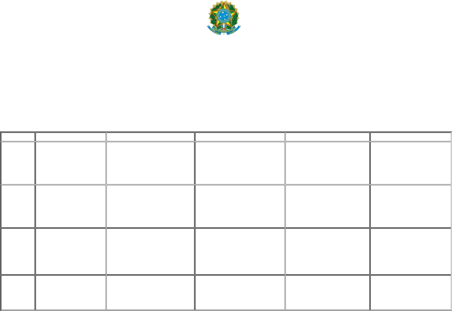 <p>Ministério da Educação</p><p>Secretaria de Educação Profissional e Tecnológica Instituto Federal do Norte de Minas Gerais</p><p>ANEXO V</p><p>DEPARTAMENTO DE ENSINO SUPERIOR</p><p>CURSO DE LICENCIATURA EM CIÊNCIAS BIOLÓGICAS - 1º SEMESTRE LETIVO 2024 (1/2024) FICHA MATRÍCULA - 1° PERÍODO - NOTURNO</p><p>Segunda-feira</p><p>Terça-feira</p><p>Quarta-feira</p><p>Quinta-feira</p><p>Sexta-feira</p><p>19h00min 19h50min</p><p>Introdução às Ciências Biológicas JANLCBI067</p><p>Prof. Wilson Montalvão 1( ) 2( ) 3( ) 4( )</p><p>Biologia Celular JANLCBI068</p><p>Profa. Maria Rosilene 1( ) 2( ) 3( ) 4( )</p><p>Química Geral JANLCBI073</p><p>Prof. Matheus Simões 1( ) 2( ) 3( ) 4( )</p><p>19h50min 20h40min</p><p>Introdução às Ciências Biológicas JANLCBI067</p><p>Prof. Wilson Montalvão 1( ) 2( ) 3( ) 4( )</p><p>Biologia Celular JANLCBI068</p><p>Profa. Maria Rosilene 1( ) 2( ) 3( ) 4( )</p><p>Química Geral JANLCBI073</p><p>Prof. Matheus Simões 1( ) 2( ) 3( ) 4( )</p><p>20h50min 21h40min</p><p>Educação e Diversidade JANLCBI071</p><p>Prof. Wanderson Pereira 1( ) 2( ) 3( ) 4( )</p><p>Fundamentos Filosóficos da Educação JANLCBI070</p><p>Profa. Suzana Escobar</p><p>1( ) 2( ) 3( ) 4( )</p><p>Elementos de Matemática Aplicada</p><p>JANLCBI072</p><p>Prof. Subst. MAT 2 1( ) 2( ) 3( ) 4( )</p><p>21h40min 22h30min</p><p>Educação e Diversidade JANLCBI071</p><p>Prof. Wanderson Pereira 1( ) 2( ) 3( ) 4( )</p><p>Fundamentos Filosóficos da Educação JANLCBI070</p><p>Profa. Suzana Escobar</p><p>1( ) 2( ) 3( ) 4( )</p><p>Elementos de Matemática Aplicada</p><p>JANLCBI072</p><p>Prof. Subst. MAT 2 1( ) 2( ) 3( ) 4( )</p><p>04/03/2024, 10:41</p><p>SEI/IFNMG - 1832275 - Anexo</p><p>https://sei.ifnmg.edu.br/sei/controlador.php?acao=documento_imprimir_web&acao_origem=arvore_visualizar&id_documento=1997383&infra_sistema=100000100&infra_unidade_atual=110000363&infra_hash=ffa53…</p><p>2/2</p><p>A matrícula é responsabilidade do acadêmico. Antes de efetivá-la, leia os Regulamentos dos Cursos Superiores do IFNMG. Após fazer a escolha da disciplina, ANULAR os quadros das disciplinas que NÃO serão cursadas. Legenda: 1 Regular; 2 Adiantamento; 3 Optativa/Curso; 4 Optativa Extra- curso.</p><p>Curso: Turma:</p><p>Assinatura do Acadêmico/Responsável: Data: / /</p><p>Hamilton dos Reis Sales</p><p>Coordenador do curso de Licenciatura em Ciências Biológicas IFNMG Campus Januária</p><p>Documento assinado eletronicamente por Hamilton dos Reis Sales, Coordenador(a) do Curso de Licenciatura em Ciências Biológicas, em 04/03/2024, às 07:42, conforme horário oficial de Brasília, com fundamento no § 3º do art. 4º do Decreto nº 10.543, de 13 de novembro de 2020.</p><p>A autenticidade deste documento pode ser conferida no site http://sei.ifnmg.edu.br/sei/controlador_externo.php? acao=documento_conferir&id_orgao_acesso_externo=0, informando o código verificador 1832275 e o código CRC 7286203B.</p><p>Referência: Processo nº 23393.000847/2024-07 SEI nº 1832275</p><p>Ministério da Educação</p><p>Secretaria de Educação Profissional e Tecnológica Instituto Federal do Norte de Minas Gerais</p><p>ANEXO VI</p><p>DEPARTAMENTO DE ENSINO SUPERIOR</p><p>CURSO DE LICENCIATURA EM CIÊNCIAS BIOLÓGICAS - 1º SEMESTRE LETIVO 2024 (1/2024) FICHA MATRÍCULA - 3° PERÍODO - MATUTINO</p><p>Segunda-feira</p><p>Terça-feira</p><p>Quarta-feira</p><p>Quinta-feira</p><p>Sexta-feira</p><p>07h30min 08h20min</p><p>Botânica I JANLCBI081</p><p>Profa. Samara Silva</p><p>1( ) 2( ) 3( ) 4( )</p><p>Zoologia I JANLCBI083</p><p>Prof. Subst. Bio</p><p>1( ) 2( ) 3( ) 4( )</p><p>Microbiologia JANLCBI082</p><p>Prof. Luiz Carlos</p><p>1( ) 2( ) 3( ) 4( )</p><p>Botânica I JANLCBI081</p><p>Profa. Samara Silva</p><p>1( ) 2( ) 3( ) 4( )</p><p>Bioquímica JANLCBI084</p><p>Prof. Subst. Bio</p><p>1( ) 2( ) 3( ) 4( )</p><p>08h20min 09h10min</p><p>Botânica I JANLCBI081</p><p>Profa. Samara Silva</p><p>1( ) 2( ) 3( ) 4( )</p><p>Zoologia I JANLCBI083</p><p>Prof. Subst. Bio</p><p>1( ) 2( ) 3( ) 4( )</p><p>Microbiologia JANLCBI082</p><p>Prof. Luiz Carlos</p><p>1( ) 2( ) 3( ) 4( )</p><p>Botânica I JANLCBI081</p><p>Profa. Samara Silva</p><p>1( ) 2( ) 3( ) 4( )</p><p>Bioquímica JANLCBI084</p><p>Prof. Subst. Bio</p><p>1( ) 2( ) 3( ) 4( )</p><p>09h25min 10h15min</p><p>Bioquímica JANLCBI084</p><p>Prof. Subst. Bio</p><p>1( ) 2( ) 3( ) 4( )</p><p>Psicologia do Desenvolvimento da Aprendizagem</p><p>JANLCBI085</p><p>Prof. Wanderson Pereira 1( ) 2( ) 3( ) 4( )</p><p>Psicologia do Desenvolvimento da Aprendizagem</p><p>JANLCBI085</p><p>Prof. Wanderson Pereira 1( ) 2( ) 3( ) 4( )</p><p>Microbiologia JANLCBI082</p><p>Prof. Luiz Carlos</p><p>1( ) 2( ) 3( ) 4( )</p><p>Zoologia I JANLCBI083</p><p>Prof. Subst. Bio</p><p>1( ) 2( ) 3( ) 4( )</p><p>10h15min 11h05min</p><p>Bioquímica JANLCBI084</p><p>Prof. Subst. Bio</p><p>1( ) 2( ) 3( ) 4( )</p><p>Psicologia do Desenvolvimento da Aprendizagem</p><p>JANLCBI085</p><p>Prof. Wanderson Pereira 1( ) 2( ) 3( ) 4( )</p><p>Psicologia do Desenvolvimento da Aprendizagem</p><p>JANLCBI085</p><p>Prof. Wanderson Pereira 1( ) 2( ) 3( ) 4( )</p><p>Microbiologia JANLCBI082</p><p>Prof. Luiz Carlos</p><p>1( ) 2( ) 3( ) 4( )</p><p>Zoologia I JANLCBI083</p><p>Prof. Subst. Bio</p><p>1( ) 2( ) 3( ) 4( )</p><p>04/03/2024, 10:43</p><p>SEI/IFNMG - 1832276 - Anexo</p><p>https://sei.ifnmg.edu.br/sei/controlador.php?acao=documento_imprimir_web&acao_origem=arvore_visualizar&id_documento=1997384&infra_sistema=100000100&infra_unidade_atual=110000363&infra_hash=35de…</p><p>2/2</p><p>A matrícula é responsabilidade do acadêmico. Antes de efetivá-la, leia os Regulamentos dos Cursos Superiores do IFNMG. Após fazer a escolha da disciplina, ANULAR os quadros das disciplinas que NÃO serão cursadas. Legenda: 1 Regular; 2 Adiantamento; 3 Optativa/Curso; 4 Optativa Extra- curso.</p><p>Curso: Turma:</p><p>Assinatura do Acadêmico/Responsável: Data: / /</p><p>Hamilton dos Reis Sales</p><p>Coordenador do Curso de Licenciatura em Ci