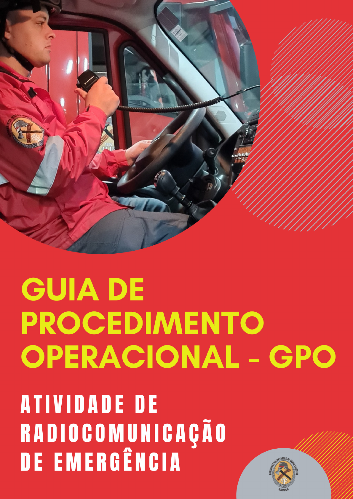 <p>GUIA DE PROCEDIMENTO OPERACIONAL - GPO ATIVIDADE DE RADIOCOMUNICAÇÃO DE EMERGÊNCIA IF ABVESC</p><p>Página 02 GUIA DE PROCEDIMENTO OPERACIONAL - GPO RADIOCOMUNICAÇÃO DE EMERGÊNCIA ASSOCIAÇÃO DOS BOMBEIROS VOLUNTÁRIOS NO ESTADO DE SANTA CATARINA ENDEREÇO Rua Jaguaruna, 13 89201-450 - Centro | Joinville- SC CONTATOS 47 3431-1134 @ contato@abvesc.com.br www.abvesc.org.br abvesc.oficial f abvesc_oficial TE ABVESC Filiada à Confederação Nacional dos Bombeiros Voluntários do Brasil</p><p>Página 03 GUIA DE PROCEDIMENTO OPERACIONAL - GPO RADIOCOMUNICAÇÃO DE EMERGÊNCIA NÚMERO DA GPO 08 ÁREA DE APLICAÇÃO OPERAÇÃO TÍTULO DA GPO RADIOCOMUNICAÇÃO DE EMERGÊNCIA PUBLICAÇÃO JULHO/2022 APROVAÇÃO E EDIÇÃO ATA DO COTEC DE 12 DE JULHO DE 2022 PALAVRA-CHAVE RADIOCOMUNICAÇÃO ELABORAÇÃO COMITÊ TÉCNICO - COTEC CONTATOS (47) 3431-1134 REPRODUÇÃO Este documento foi redigido, editado e publicado pelo Comitê Técnico (COTEC) da Associação dos Bombeiros Voluntários no Estado de Santa Catarina (ABVESC). É vedada sua distribuição, republicação e reprodução por qualquer meio, seja impresso, eletrônico ou digital, sem a respectiva citação da fonte conforme as disposições da Lei 9.610, de 19 de fevereiro de 1998, sobre direitos autorais. ABVESC COMITÊ TÉCNICO -</p><p>Página 04 GUIA DE PROCEDIMENTO OPERACIONAL - GPO RADIOCOMUNICAÇÃO DE EMERGÊNCIA SUMÁRIO 1.Objetivos 2.Premissa 3.Legalidade 4. Equipamentos 05 5. Repetidoras 6. Rádio PX - Rádio do Cidadão 7. Operador de sistema radiocomunicação 06 8. Central de comunicação 9. Disposições gerais 10. Referências 07 11. Anexos 08 ABVESC COMITÊ TÉCNICO - COTEC</p><p>Página 05 GUIA DE PROCEDIMENTO OPERACIONAL - GPO RADIOCOMUNICAÇÃO DE EMERGÊNCIA 1. OBJETIVO Esta Guia de Procedimento Operacional GPO visa qualificar profissionais com atuação na área de urgência e emergências, para comunicar-se dentro de protocolos e com meios de comunicação rádios transceptores -, que atendam aspectos legais. 2. PREMISSAS 1. De modo a obter maior eficiência e segurança do sistema de radiocomunicação, é necessário a contratação de empresa prestadora de serviço ou profissional qualificado que cumpra as normas técnicas de instalação e manutenção e que possuam habilitação pelos órgãos reguladores do Brasil para as atividades que se prestarem. 2. Igualmente a realização de vistorias periódicas em todas as instalações do sistema de radiocomunicação, nos equipamentos, seus acessórios em período não inferior a 6 meses e aferição e calibragem dos componentes, contribuirá significativamente para a eficácia e prolongamento da vida útil do conjunto 3. DA LEGALIDADE Para a operação, instalação e ativação de rádios transceptores, faz-se necessário cumprimento da regulamentação na área de radiocomunicação, visando uso adequado às realidades do cotidiano e observância das normas legais em vigor no Brasil para projeto, equipamentos, licença de operação e operação do sistema. 4. EQUIPAMENTOS Todos os equipamentos deverão estar homologados e licenciados pelo órgão regulador do Brasil, para as operações com rádios transceptores. Além do atendimento ao projeto técnico do sistema de comunicação, as especificações dos equipamentos, assim como, a potência e frequência de operação, para efeito desta Instrução Normativa, devem ser observados no mínimo, os seguintes aspectos sobre os equipamentos: 1. Rádio: de 45 W ou potência conforme projeto. 2. Rádio portátil: HT (Hand Talk) de frequência fixa. 3. Antena: de base fixa ou em veículos devidamente aferidos ou conforme projeto. ABVESC COMITÊ TÉCNICO - COTEC</p><p>Página 06 GUIA DE PROCEDIMENTO OPERACIONAL - GPO RADIOCOMUNICAÇÃO DE EMERGÊNCIA 4. Cabo coaxial: RCG 213 e/ ou RG 58, ou conforme projeto aprovado. 5. Bateria :a recomendada pelo fabricante ou aquela especificada no projeto. 6. Acessórios: conforme recomendado pelo fabricante ou especificado no projeto. 5. REPETIDORAS 1. É um conjunto de equipamentos normalmente instalados em locais de altitude elevada que tem a capacidade de receber um sinal e retransmiti-lo ao mesmo tempo. 2. local deverá ser construído especificamente para abrigar a repetidora (abrigo com medidas mínimas e de material incombustível), deve ser organizado e de preferência em torre sem internet. 3. A repetidora, seus equipamentos, acessórios e potência, devem seguir projeto aprovado pelo órgão regulador do Brasil. 6. RÁDIO PX RÁDIO DO CIDADÃO Não é obrigatória a colocação na corporação porque o uso deste tipo de equipamento é permitido somente com licença para pessoa 1. Rádio PX nas emergências: Seu uso se dá em todo o território nacional e até internacionalmente, sendo uma memória (um canal) que usa o número 9 (nove). Segundo órgão regulador no Brasil de telecomunicações, esse serviço tem como objetivo proporcionar comunicações em radiotelefonia, em linguagem clara, de interesse geral ou particular; atender a situações de emergência, como catástrofes, incêndios, inundações; epidemias, perturbações da ordem, acidentes e outras situações de perigo para a vida e transmitir sinais de telecomando para dispositivos elétricos. 7. OPERADOR DE SISTEMA RADIOCOMUNICAÇÃO operador deverá estar qualificado com curso específico por entidade credenciada conforme preconiza a legislação estabelecida pelo órgão regulador no Brasil. operador deverá conhecer e estar atualizados com a terminologia do Código Fonético para Radiocomunicação no serviço de Emergência, conforme o COMITÊ TÉCNICO -</p><p>Página 07 GUIA DE PROCEDIMENTO OPERACIONAL GPO RADIOCOMUNICAÇÃO DE EMERGÊNCIA anexo A código fonético internacional com pronúncia, anexo B código fonético numérico internacional com pronúncia, anexo C - códigos de deslocamento e anexo D - código "O" internacional. 1. Vocabulário: Deve ser o mais e entendível possível e nunca