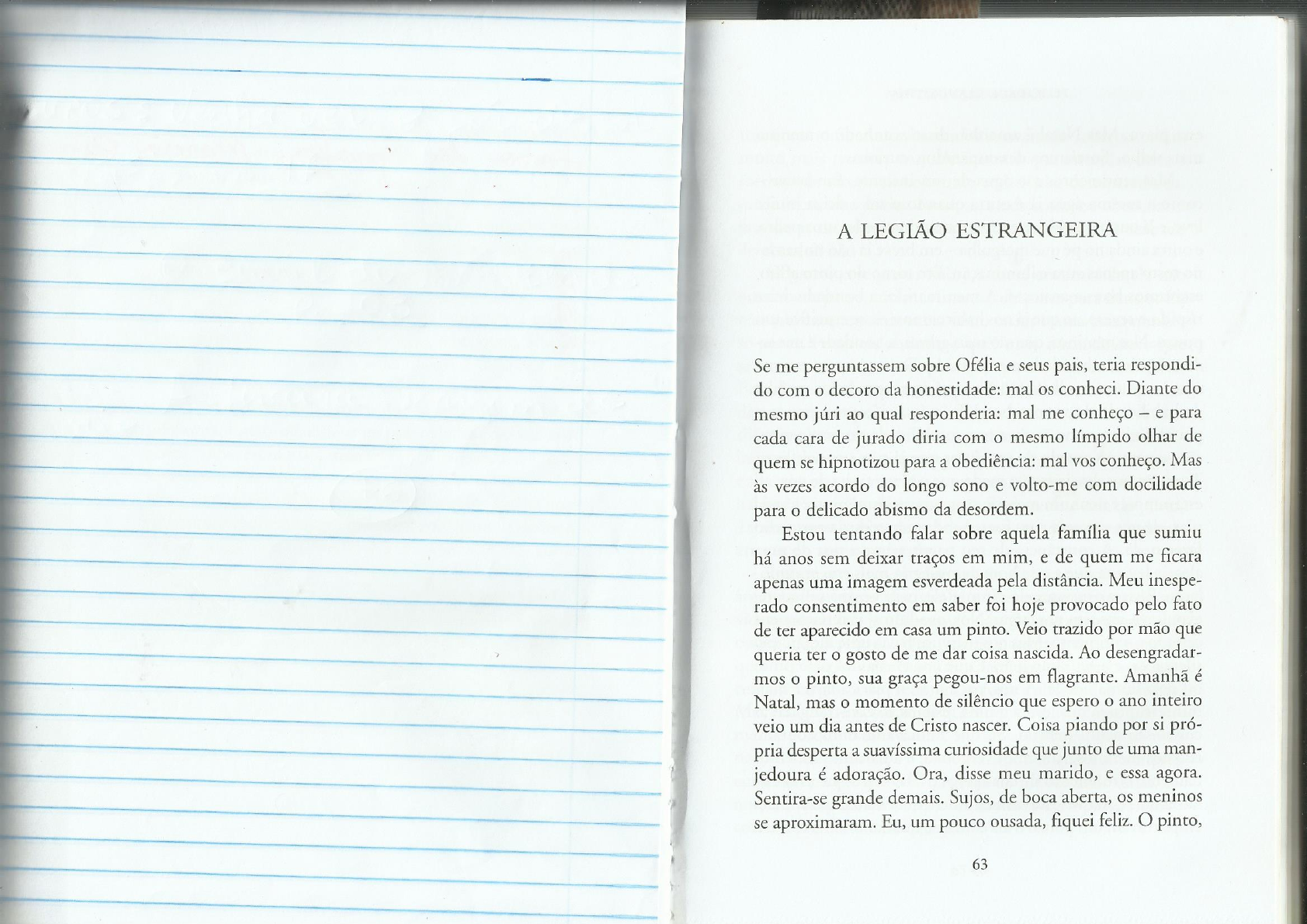 <p>A LEGIÃO ESTRANGEIRA Se me perguntassem sobre Ofélia e seus pais, teria respondi- do com o decoro da honestidade: mal os conheci. Diante do mesmo júri ao qual responderia: mal me conheço - e para cada cara de jurado diria com o mesmo límpido olhar de quem se hipnotizou para a obediência: mal vos conheço. Mas às vezes acordo do longo sono e volto-me com docilidade para o delicado abismo da desordem. Estou tentando falar sobre aquela família que sumiu há anos sem deixar traços em mim, e de quem me ficara apenas uma imagem esverdeada pela distância. Meu inespe- rado consentimento em saber foi hoje provocado pelo fato de ter aparecido em casa um pinto. Veio trazido por mão que queria ter o gosto de me dar coisa nascida. Ao desengradar- mos o pinto, sua graça pegou-nos em flagrante. Amanhã é Natal, mas o momento de silêncio que espero o ano inteiro veio um dia antes de Cristo nascer. Coisa piando por si pró- pria desperta a suavíssima curiosidade que junto de uma man- jedoura é adoração. Ora, disse meu marido, e essa agora. Sentira-se grande demais. Sujos, de boca aberta, os meninos se aproximaram. Eu, um pouco ousada, fiquei feliz. O pinto, 63</p><p>FELICIDADE CLANDESTINA A LEGIÃO ESTRANGEIRA esse piava. Mas Natal é disse acanhado o menino troca, amor. Se nunca havíamos conversado sobre as coisas, mais velho. Sorríamos desamparados, curiosos. muito mais tivemos naquele instante que esconder deles o Mas sentimentos são água de um instante. Em breve sorriso que terminou nos vindo com o piar desesperado da- como a mesma água já é outra quando o sol a deixa muito quele bico, um sorriso como se a nós coubesse abençoar o leve, e já outra quando se enerva tentando morder uma pedra, fato de as coisas serem assim mesmo, e tivéssemos acabado e outra ainda no pé que mergulha em breve já não tínhamos de no rosto apenas aura e iluminação. Em torno do pinto aflito, O pinto, esse piava. Sobre a mesa envernizada ele não estávamos bons e ansiosos. A meu marido, a bondade deixa ousava um passo, um movimento, ele piava para dentro. Eu ríspido e severo, ao que já nos habituamos; ele se crucifica um não sabia sequer onde cabia tanto terror numa coisa que era pouco. Nos meninos, que são mais graves, a bondade é um ar- só penas. Penas encobrindo o quê? meia dúzia de ossos que dor. A mim, a bondade me intimida. Daí a pouco a mesma se haviam reunido fracos para quê? para o piar de um terror. água era outra, e olhávamos contrafeitos, enredados na falta Em silêncio, em respeito à impossibilidade de nos compreen- de habilidade de sermos bons. E, a água já outra, pouco a dermos, em respeito à revolta dos meninos contra nós, em pouco tínhamos no rosto a responsabilidade de uma aspira- silêncio olhávamos sem muita paciência. Era impossível dar- ção, o coração pesado de um amor que já não era mais livre. lhe a palavra asseguradora que o fizesse não ter medo, consolar Também nos desajeitava o medo que o pinto tinha de nós; ali coisa que por ter nascido se espanta. Como prometer-lhe o estávamos, e nenhum merecia comparecer a um pinto; a cada hábito? Pai e mãe, sabíamos quão breve seria a vida do pinto. piar, ele nos espargia para fora. A cada piar, reduzia-nos a não Também este sabia, do modo como as coisas vivas sabem: fazer nada. A constância de seu pavor acusava-nos de uma através do susto profundo. alegria leviana que a essa hora nem alegria mais era, era amo- E enquanto isso, o pinto cheio de graça, coisa breve e lação. Passara o instante do pinto, e ele, cada vez mais urgente, amarela. Eu queria que também ele sentisse a graça de sua expulsava-nos sem nos largar. Nós, os adultos, já teríamos en- vida, assim como já pediram de nós, ele que era a alegria dos cerrado o sentimento. Mas nos meninos havia uma indignação outros, não a própria. Que sentisse que era gratuito, nem se- silenciosa, e a acusação deles é que nada fazíamos pelo pinto quer necessário um dos pintos tem que ser inútil só nas- ou pela humanidade. A nós, pai e mãe, o piar cada vez mais cera para a glória de Deus, então fosse a alegria dos homens. ininterrupto já nos levara a uma resignação constrangida: as Mas era amar o nosso amor querer que o pinto fosse feliz so- coisas são assim mesmo. Só que nunca tínhamos contado mente porque o amávamos. Eu sabia também que só mãe isso aos meninos, tínhamos vergonha; e adiávamos indefini- resolve o nascimento, nosso era amor de quem se compraz damente o momento de chamá-los e falar claro que as coisas em amar: eu me revolvia na graça de me ser dado amar, si- são assim. Cada vez ficava mais difícil, o silêncio crescia, e eles nos, sinos repicavam porque sei adorar. Mas o pinto tremia, empurravam um pouco o com que queríamos lhes dar, em coisa de terror, não de beleza. 64 65</p><p>FELICIDADE CLANDESTINA A LEGIÃO ESTRANGEIRA O menino menor não suportou mais: Mais tarde lembrei-me de como a vizinha, mãe de Ofé- Você quer ser a mãe dele? lia, era trigueira como uma hindu. Tinha olheiras arroxeadas Eu disse que sim, em sobressalto. Eu era a enviada junto que a embelezavam muito e davam-lhe um ar fatigado que coisa que não compreendia a minha única linguagem: fazia os homens a olharem uma segunda vez. Um dia, no eu estava amando sem ser amada. A missão era falível, e os banco da praça, enquanto as crianças brincavam, ela me dis- olhos de quatro meninos aguardavam com a intransigência sera com aquela sua cabeça obstinada de quem olha para o da esperança meu primeiro gesto de amor eficaz. Recuei deserto: "Sempre quis tirar um curso de enfeitar bolos." Lem- um pouco, sorrindo toda solitária, olhei para minha família, brei-me de que o marido trigueiro também, como se se ti- queria que eles sorrissem. Um homem e quatro meninos me vessem escolhido pela secura da cor - queria subir na vida fitavam, incrédulos e confiantes. Eu era a mulher da casa, o através de seu ramo de negócios