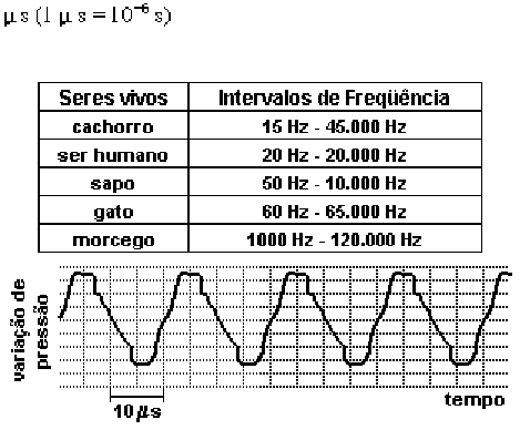 <p>Lista de Exercícios – ACÚSTICA: Cordas, Tubos e Intensidade Sonora</p><p>1. (Ufmg 2000) Ao tocar um violão, um músico produz ondas nas cordas desse instrumento. Em consequência, são produzidas</p><p>ondas sonoras que se propagam no ar. Comparando-se uma onda produzida em uma das cordas do violão com a onda sonora</p><p>correspondente, é CORRETO afirmar que as duas têm:</p><p>a) a mesma amplitude.</p><p>b) a mesma frequência.</p><p>c) a mesma velocidade de propagação.</p><p>d) o mesmo comprimento de onda.</p><p>2. (Fei 96) O aparelho auditivo humano distingue no som 3 qualidades, que são: altura, intensidade e timbre. A altura é a</p><p>qualidade que permite a esta estrutura diferenciar sons graves de agudos, dependendo apenas da frequência do som. Assim</p><p>sendo, podemos afirmar que:</p><p>a) o som será mais grave quanto menor for sua frequência</p><p>b) o som será mais grave quanto maior for sua frequência</p><p>c) o som será mais agudo quanto menor for sua frequência</p><p>d) o som será mais alto quanto maior for sua intensidade</p><p>e) o som será mais alto quanto menor for sua frequência</p><p>3. (FUVEST 2002) O som de um apito é analisado com o uso de um medidor que, em sua tela, visualiza o padrão apresentado na</p><p>figura a seguir. O gráfico representa a variação da pressão que a onda sonora exerce sobre o medidor, em função do tempo, em</p><p>. Analisando a tabela de intervalos de frequências audíveis, por diferentes seres vivos, conclui-se que esse</p><p>apito pode ser ouvido apenas por:</p><p>a) seres humanos e cachorros</p><p>b) seres humanos e sapos</p><p>c) sapos, gatos e morcegos</p><p>d) gatos e morcegos</p><p>e) morcegos</p><p>4. (Ita 97) Um violinista deixa cair um diapasão de frequência 440Hz. A frequência que o violinista ouve na iminência do diapasão</p><p>tocar no chão é de 436Hz. Desprezando o efeito da resistência do ar, a altura da queda é:</p><p>Dado: velocidade do som = 330 m/s.</p><p>a) 9,4 m</p><p>b) 4,7 m</p><p>c) 0,94 m</p><p>d) 0,47 m</p><p>e) Inexistente, pois a frequência deve aumentar à medida que o diapasão se aproxima do chão.</p><p>5. (Ita 2003) Quando em repouso, uma corneta elétrica emite um som de frequência 512 Hz. Numa experiência acústica, um</p><p>estudante deixa cair a corneta do alto de um edifício. Qual a distância percorrida pela corneta, durante a queda, até o instante em</p><p>que o estudante detecta o som na frequência de 485 Hz? (Despreze a resistência do ar).</p><p>a) 13,2 m b) 15,2 m c) 16,1 m d) 18,3 m e) 19,3 m</p><p>6. (Puc-rio 2000) Considere as seguintes afirmações a respeito de uma onda sonora:</p><p>I) É uma onda longitudinal.</p><p>II) A densidade das moléculas no meio oscila no espaço.</p><p>III) A velocidade de propagação independe do meio.</p><p>Quais dessas afirmações são verdadeiras?</p><p>a) I, II e III</p><p>b) I e II</p><p>c) I e III</p><p>d) II e III</p><p>e) nenhuma delas</p><p>7. (Puc-rio 2000) Quanto maior a amplitude de uma onda, maior sua (seu):</p><p>a) intensidade.</p><p>b) frequência.</p><p>c) comprimento de onda.</p><p>d) velocidade de propagação.</p><p>e) período.</p><p>8. (UFMG 2002) Mariana pode ouvir sons na faixa de 20Hz a 20kHz. Suponha que, próximo a ela, um morcego emite um som de</p><p>40kHz. Assim sendo, Mariana não ouve o som emitido pelo morcego, porque esse som tem:</p><p>a) um comprimento de onda maior que o daquele que ela consegue ouvir.</p><p>b) um comprimento de onda menor que o daquele que ela consegue ouvir.</p><p>c) uma velocidade de propagação maior que a daquele que ela consegue ouvir.</p><p>d) uma velocidade de propagação menor que a daquele que ela consegue ouvir.</p><p>9. (UFPE 2003) O menor intervalo de tempo para que o cérebro humano consiga distinguir dois sons que chegam ao ouvido é, em</p><p>média, 100 ms. Este fenômeno é chamado persistência auditiva. Qual a menor distância que podemos ficar de um obstáculo para</p><p>ouvir o eco de nossa voz?</p><p>Dado: velocidade do som no ar = 330 m/s.</p><p>a) 16,5 m b) 17,5 m c) 18,5 m d) 19,5 m e) 20,5 m</p><p>10. (UFPR 2002) A respeito das ondas sonoras, é correto afirmar:</p><p>(01) São ondas longitudinais.</p><p>(02) Propagam-se no vácuo.</p><p>(04) No ar, as de maior frequência têm maior velocidade.</p><p>(08) O fenômeno da difração permite explicar o fato de o som contornar obstáculos.</p><p>(16) Efeito Doppler é o fenômeno no qual a frequência de uma onda sonora percebida por um observador é diferente da emitida</p><p>pela fonte, devido ao movimento relativo entre eles.</p><p>(32) No ar, uma onda de comprimento de onda igual a 1,0m tem a mesma frequência que outra de comprimento de onda igual a</p><p>2,0m.</p><p>Gabarito</p><p>1. [B] 2. [A] 3. [D] 4. [D] 5. [D] 6. [B] 7. [A] 8. [B] 9. [A] 10. V F F V V F</p><p>1 - Considere uma corda de violão com 50cm de comprimento, que está afinada para vibrar com uma freqüência fundamental de</p><p>5,0. 102Hz. a) Qual o módulo da velocidade de propagação, nessa corda, das ondas que deram origem à onda estacionária</p><p>formada? b) Se o comprimento da corda for reduzido à metade, qual a nova freqüência do som fundamental emitido?</p><p>2 - (UFU-MG) - Uma corda sonora de comprimento L = 2,0m tem as duas extremidades fixas. Estabelece-se na corda um sistema</p><p>de ondas estacionárias com a formação de três ventres e com freqüência igual a 120Hz. Determine:</p><p>a) o comprimento de onda das ondas que deram origem às ondas estacionárias.</p><p>b) o módulo da velocidade de propagação na corda das ondas que deram origem às ondas estacionárias.</p><p>c) a distância entre dois nós consecutivos.</p><p>3 - Em uma corda sonora estabelece-se um sistema de ondas estacionárias, conforme indicado na figura.</p><p>Sabe-se que, a frequência do som nesta configuração é de 212Hz e que L = 1 m.</p><p>a) Qual a velocidade de propagação do som nessa corda?</p><p>b) Qual a f