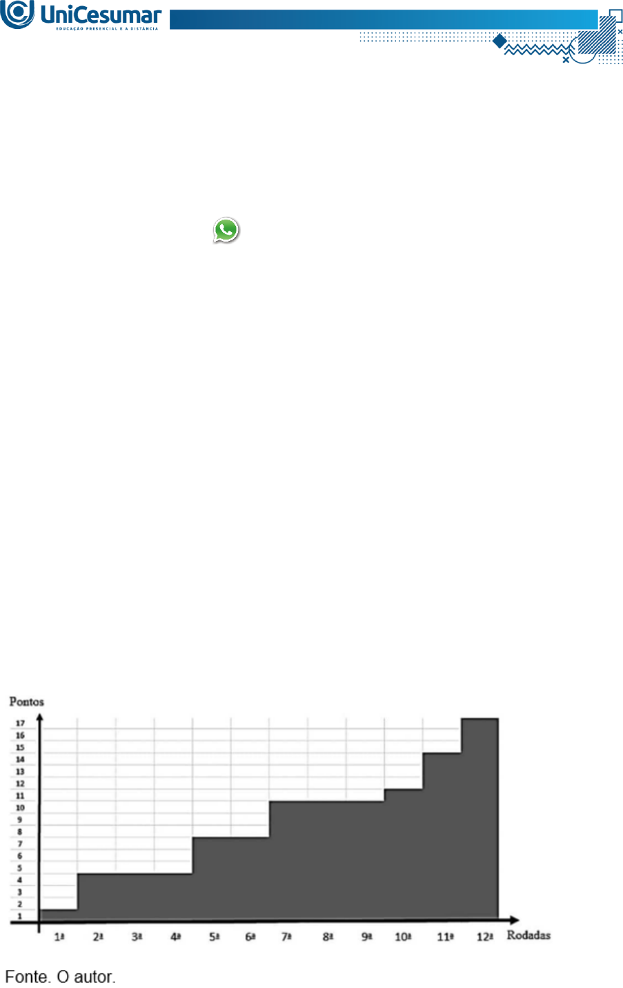 <p>Olá, aluno(a)! Está com dificuldade ou sem tempo para elaborar</p><p>esse MAPA? Iremos te ajudar!</p><p>Entre em contato</p><p>(63) 99129-5554</p><p>MAPA – ESOFT – ESTATÍSTICA - 53_2024</p><p>Olá, acadêmico(a)! Esta é a proposta de atividade M.A.P.A., ou seja, Material de Avaliação</p><p>Prática da Aprendizagem. Nesta atividade, nosso objetivo é proporcionar uma experiência</p><p>relacionada à análise de gráficos</p><p>Já havia pensado sobre a relevância da análise de gráficos na área de tecnologia e de que</p><p>forma ela pode trazer vantagens para profissionais de tecnologia?</p><p>O advento da era da informação trouxe consigo certo grau de complexidade que foi</p><p>tomando conta do cenário das empresas ao longo do tempo, sendo cada vez mais</p><p>necessária a presença da tecnologia. Os jogos de computador têm evoluído de forma a</p><p>trazer uma maior experiência de interatividade aos usuários. Atualmente, alguns jogos já</p><p>possibilitam formas de interação com ambientes virtuais criados a partir de ambientes reais</p><p>ou por meio da Realidade Aumentada. Esses novos recursos fornecem aos usuários uma</p><p>ressignificação dos espaços onde, agora, passam a participar ativamente do jogo.</p><p>Fonte: adaptado de</p><p>https://revista.fatectq.edu.br/interfacetecnologica/article/download/342/213. Acesso em: 29</p><p>maio 2023</p><p>Sobre a relação entre tecnologia e jogos, observe o gráfico a seguir (confira também a</p><p>imagem no link: https://shre.ink/lfxj):</p><p>No gráfico, constam as rodadas e as pontuações que João, um estudante do curso de</p><p>Engenharia de Software, teve em um campeonato de jogos de videogames. Na partida em</p><p>que João ganhou, foram somados três pontos; na partida em que João empatou, foi</p><p>somado um ponto; e, na partida em que João perdeu, foi somado 0 ponto. Com base nas</p><p>informações e no gráfico anterior, responda</p><p>a) Quantas partidas teve o campeonato?</p><p>b) Qual é o número de partidas em que João empatou?</p><p>c) Qual é o número de partidas em que João perdeu?</p><p>d) Qual é o número de partidas em que João ganhou?</p><p>e) João mais ganhou ou mais perdeu na competição?</p><p>f) Qual é o total de pontos que João teve?</p><p>g) Qual é a média, a mediana e a moda de pontos que João teve? Apresente os cálculos e</p><p>interprete os resultados</p><p>h) Selecionando uma partida aleatoriamente. Qual é a probabilidade de, na partida</p><p>selecionada, João ter ganhado a partida?</p><p>I) É possível afirmar que João foi campeão do campeonato?</p><p>IMPORTANTE:</p><p>1. Acesse o link com um vídeo tutorial para ajudá-lo nesse processo de criação e</p><p>desenvolvimento. O acesso deverá ser realizado em: Materiais >> Material da Disciplina</p><p>2. Responda a atividade seguindo como roteiro os tópicos elencados anteriormente.</p><p>3. A entrega deve ser feita exclusivamente por meio do Template de entrega da atividade</p><p>MAPA disponível no material da disciplina.</p><p>4. Antes de enviar sua atividade, certifique-se de que respondeu a todas as perguntas e</p><p>realize uma cuidadosa correção ortográfica.</p><p>5. Após o envio não são permitas alterações, ou modificações. Logo, você tem apenas uma</p><p>chance de enviar o arquivo corretamente. Revise bem antes de enviar!</p><p>6. Lembre-se que evidências de cópias de materiais, incluindo de outros acadêmicos, sem</p><p>devidas referências serão inquestionavelmente zeradas. As citações e referências, mesmo</p><p>que do livro da disciplina, devem ser realizadas conforme normas da Instituição de Ensino.</p><p>7. Não são permitidas correções parciais no decorrer do módulo, ou seja, o famoso:</p><p>“professor veja se minha atividade está certa?”. Isso invalida seu processo avaliativo.</p><p>Lembre-se que a interpretação da atividade também faz parte da avaliação.</p><p>8. Procure sanar suas dúvidas junto a mediação em tempo hábil sobre o conteúdo exigido</p><p>na atividade, de modo que consiga realizar sua participação.</p><p>9. Atenção ao prazo de entrega, evite envio de atividade em cima do prazo. Você pode ter</p><p>algum problema com internet, computador, software, etc. e os prazos não serão</p><p>flexibilizados, mesmo em caso de comprovação.</p><p>Bons estudos!</p><p>Em caso de dúvidas, encaminhar mensagem ao seu Professor(a) Mediador(a)</p>