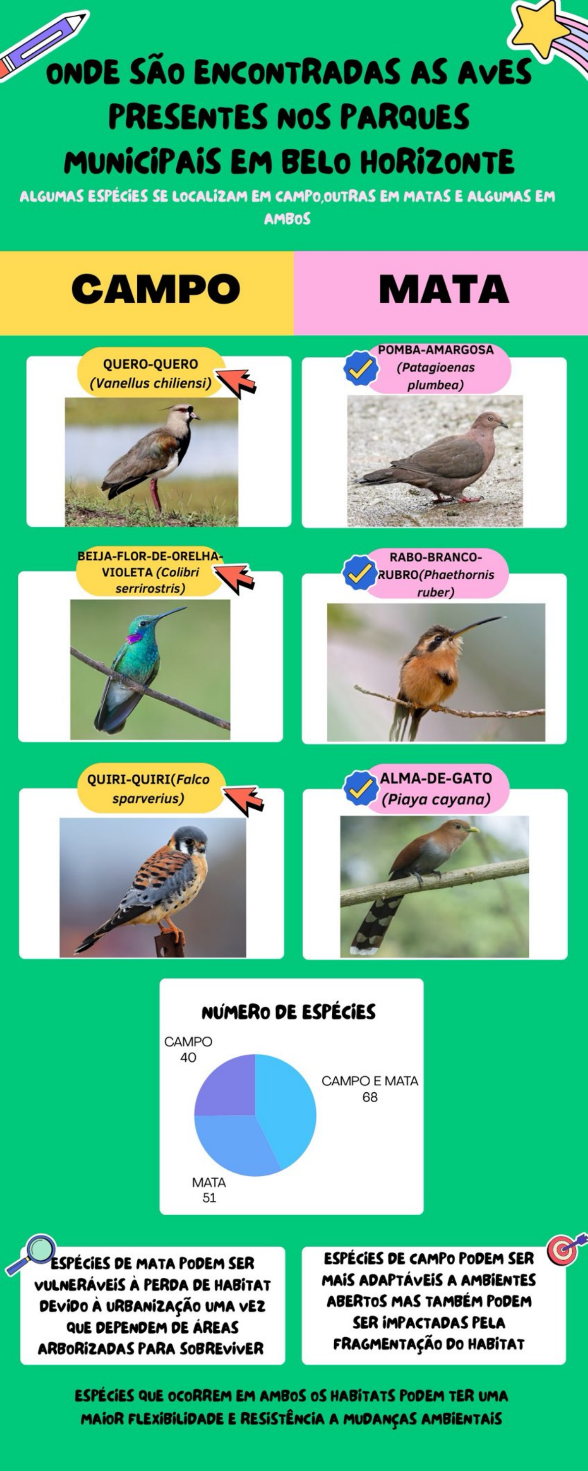 <p>ONDE SÃO ENCONTRADAS AS AVES PRESENTES NOS PARQUES MUNiCiPAiS EM BELO ALGUMAS SE EM CAMPO,OUTRAS EM MATAS E ALGUMAS EM AMBOS CAMPO MATA POMBA-AMARGOSA QUERO-QUERO (Patagioenas (Vanellus chiliensi) plumbea) RABO-BRANCO- VIOLETA (Colibri serrirostris) ruber) ALMA-DE-GATO sparverius) (Piaya NUMERO DE CAMPO 40 CAMPO E MATA 68 MATA 51 DE MATA PODEM SER DE CAMPO PODEM SER À PERDA DE HABITAT MAIS ADAPTÁVEIS A À UMA VEZ ABERTOS MAS TAMBÉM PODEM QUE DEPENDEM DE ÁREAS SER IMPACTADAS PELA ARBORIZADAS PARA SOBREVIVER FRAGMENTAÇÃO HABITAT QUE OCORREM EM AMBOS os HABITATS PODEM TER UMA FLEXiBiLiDADE E A MUDANÇAS</p><p>COMO A VEGETAÇÃO A PRESENÇA DAS AVES NOS PARQUES MUNiCiPAiS EM BELO ALIMENTAÇÃO A VEGETAÇÃO FORNECE FONTES DE ALiMENTO PARA AS AVES COMO FRUTOS, E QUE HABITAM NAS PLANTAS ÁRVORES ARBUSTOS COM SEMENTES E FLORES Jacu (Penelope obscura) DE ESPÉCiES ÁREAS COM VEGETAL TENDEM A TER UMA DE AVES RiCA E Carcará (Caracara plancus) E A E A DA VEGETAÇÃO SÃO FATORES QUE PODEM iNFLUENCiAR A ESCOLHA Do LOCAL DE PELAS Anu-preto (Crotophaga ani) DE AVES E VEGETAÇÃO ARBÓREA Registro de aves Estação Ecológica da UFMG 6 114,8 PM Tom Jobim 1,5 Colégio Santa Doroteia PM Paredão Serra Curral 101 37,4 PM Bosque São Bento 124 4.6 46 PM Rosinha Cadar 5573 0,7 PM Paulo Beirute 87107 PM das Mangabeiras 74 PM Mata das Borboletas 125 PM Rien 1,4 63 156 PM Das Nações 75 PM Amílcar Viana Martins 1,4 37 492 PM Américo Renne Giannetti 20,3 64 567 0,0 100,0 200,0 300,0 400,0 500,0 600,0 Título do Eixo Número de registros Vegetação arbórea (%) Área (ha)</p><p>PESO DE ALGUMAS AVES PRESENTES NOS PARQUES MUNiCiPAiS EM BELO PARDAL (Passer domesticus) PESO: 27g PARQUE MUNiCiPAL BOSQUE SÃO BENTO JURUVIARA (Vireo chi) PESO: 16g PARQUE MUNiCiPAL DAS MANGABEiRAS CORUJA-BURAQUEIRA (Athene cunicularia) PESO: 151g URUBU-PRETO (Coragyps atratus) PESO: 1882g PARQUES MUNiCiPAiS DA MANGABEiRAS E PAREDÃO DA SERRA DO CURRAL ROLINHA-FOGO- APAGOU (Columbina squammata) PESO: 53g PARQUE MUNiCiPAL MATA DAS BORBOLETAS Você sabia que o peso corporal das aves pode influenciar diretamente na sua vulnerabilidade? ESPÉCiES COM PESO CORPORAL PESADAS LEVE PODEM SER PODEM TER A PREDADORES, E MUDANÇAS E DE TORNANDO-AS ESCASSEZ DE RECURSOS A ALTERAÇÕES NO AMBiENTE</p><p>COMO A AFETA AS AVES 1.0 QUE É Fragmentação de habitats naturais em isoladas geralmente devido a atividades humanas como desmatamento e urbanização As áreas naturais tornam-se pequenas e separadas, como ilhas em um oceano de paisagens modificadas. (Taraba major) 2. EFEiTO NAS AVES Perda de Habitats: As aves perdem orandes áreas continuas de Floresta ou campo e consequentemente ficam com menos espaço para viver, se alimentar e reproduzir. Bem-te-vi (Pitangus sulphuratus) Perda da riqueza de Um parque com menor area um parque com menos recursos para as espécies consumirem. João-de-barro (Furnarius rufus) ALGUMAS PRESENTES NOS MUNICIPAIS CM BCLO HORIZONTO QUE SAO A Quero-quero (Vanellus chilensis) Gralha-do-campo (Cyanocorax cristatellus) Pica-pau-do-campo (Colaptes Coruja-buraqueira (Athene campestris) cunicularia)</p>