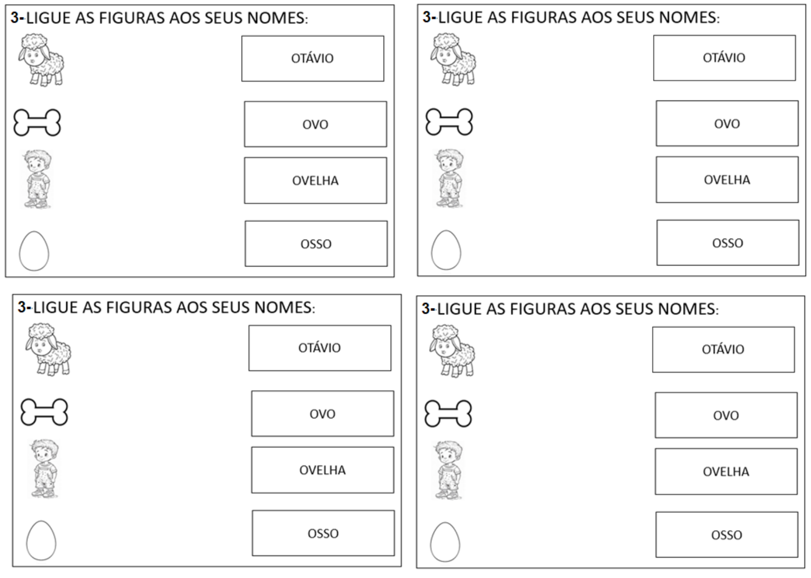 <p>3-LIGUE AS FIGURAS AOS SEUS NOMES: 3-LIGUE AS FIGURAS AOS SEUS NOMES: OTÁVIO OTÁVIO OVO OVO OVELHA OVELHA 3-LIGUE AS FIGURAS AOS SEUS NOMES: 3-LIGUE AS FIGURAS AOS SEUS NOMES: OTÁVIO OTÁVIO OVO OVO OVELHA OVELHA OSSO OSSO</p><p>4- COMPLETE A TABELA: FIGURA PALAVRA LETRA LETRA TOTAL DE INICIAL FINAL LETRAS 4- COMPLETE A TABELA: FIGURA PALAVRA LETRA LETRA TOTAL DE INICIAL FINAL LETRAS</p><p>1-LEIA o NOME DOS ANIMAIS E ESCREVA-OS NOS LUGARES CORRESPONDENTES: TIGRE - PAPAGAIO - TUCANO - VEADO - TAMANDUÁ - 1-LEIA o NOME DOS ANIMAIS E ESCREVA-OS NOS LUGARES TIGRE - PAPAGAIO - TUCANO - VEADO -</p><p>2-COMPLETE AS PALAVRAS COM AS SÍLABAS DO QUADRO E DESCUBRA o NOME DOS ANIMAIS: CIS AN RARA TA TETO NE GIO BOIA 2-COMPLETE AS PALAVRAS COM AS SÍLABAS DO QUADRO E DESCUBRA o NOME DOS ANIMAIS: GI CIS AN TA TETO RARA NE GIO BOIA</p><p>os NOMES DAS FIGURAS: 1-PINTE os NOMES DAS FIGURAS: - OMO ÓCULOS ÔNIBUS ONÇA OMO ÓCULOS ÔNIBUS ONÇA OLHO ORELHA OMBRO OSSO OLHO ORELHA OMBRO OSSO OVO OLINDA OVELHA OCA OVO OLINDA OVELHA OCA NOMES DAS FIGURAS: 1-PINTE os NOMES DAS FIGURAS: / - \ OMO ÓCULOS ÔNIBUS ONÇA OMO ÓCULOS ÔNIBUS ONÇA OLHO ORELHA OMBRO OSSO OLHO ORELHA OMBRO OSSO OVO OLINDA OVELHA OCA OVO OLINDA OVELHA OCA</p><p>Autismo 5 5 É preciso conhecer, para ajudar! 5 Autismo 5 5 É preciso conhecer, para ajudar! 5 Autismo 5 5 É preciso conhecer, para ajudar!</p>
