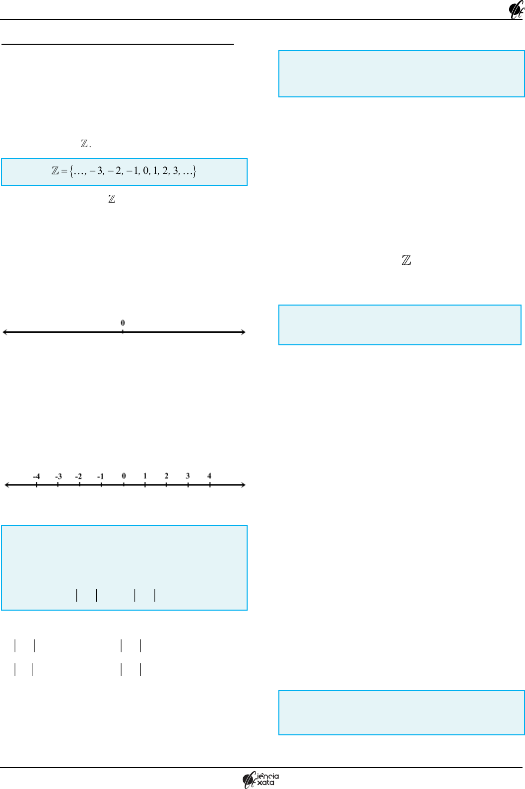 <p>MATEMÁTICA VUNESP PROFESSOR – AULA 01: NÚMEROS INTEIROS</p><p>Números inteiros: operações e propriedades</p><p>Conjunto dos números inteiros</p><p>A subtração nem sempre é possível no conjunto dos</p><p>números naturais. Para tornar tal operação sempre</p><p>possível, foi criado o conjunto dos números inteiros, que</p><p>será indicado por .</p><p>Note que o conjunto reúne os números negativos,</p><p>o zero e os números positivos.</p><p>Representação dos números inteiros na reta</p><p>Para representar os números inteiros em uma reta,</p><p>vamos assinalar na origem da reta, localizada no centro,</p><p>o inteiro 0 (zero):</p><p>À direita de 0 (sentido positivo), mantendo uma</p><p>mesma unidade de medida, assinalaremos os pontos que</p><p>correspondem aos números inteiros positivos e à</p><p>esquerda de 0 (sentido negativo), com a mesma unidade,</p><p>assinalaremos os pontos que correspondem aos números</p><p>inteiros negativos:</p><p>Valor absoluto ou módulo</p><p>Exemplos:</p><p>a) 4 4 b) 6 6 </p><p>c) 1 1 d) 7 7 </p><p>Observação:</p><p> O módulo de zero é o próprio zero.</p><p>Simétrico ou oposto de um número inteiro:</p><p>Exemplos:</p><p>a) O oposto de 5 é –5.</p><p>b) O oposto de –6 é 6.</p><p>c) O oposto de 8 é –8.</p><p>d) O oposto de –9 é 9.</p><p>Observação:</p><p> O oposto de zero é o próprio zero.</p><p>Operações no conjunto</p><p>Adição de números positivos</p><p>Exemplos:</p><p>a) (+ 3) + (+ 7) = + 3 + 7 = +10</p><p>Maneira simplificada: 3 + 7 = 10</p><p>b) (+ 12) + (+ 26) + (+ 30) = + 38 + 30 = + 68</p><p>Maneira simplificada: 12 26 30 38 30 68 </p><p>Observações:</p><p> Para obter a soma de três ou mais números inteiros,</p><p>adicionamos os dois primeiros e, em sequência,</p><p>adicionamos esse resultado com o terceiro, e assim</p><p>por diante.</p><p> Podemos dispensar o sinal positivo da primeira</p><p>parcela quando esta for positiva.</p><p> Ao eliminarmos os parênteses e o sinal positivo</p><p>que os antecede, devemos conservar o sinal do</p><p>número que está dentro dos parênteses.</p><p>Adição de números negativos</p><p> 3 2 1 0 1 2 3, , , , , , , , </p><p>Valor absoluto de um número inteiro é o número</p><p>natural que o representa, ou seja, é o número sem o</p><p>sinal.</p><p>a a ou a a </p><p>Para todo número inteiro a existe – a de modo que</p><p> 0a a </p><p>A soma de dois ou mais números positivos resulta</p><p>em um número positivo.</p><p>A soma de dois ou mais números negativos resulta</p><p>em um número negativo.</p><p> Produto ou quociente de sinais iguais =</p><p>resultado positivo.</p><p> Produto ou quociente de sinais diferentes =</p><p>Licenciado para - K</p><p>A</p><p>LIN</p><p>E</p><p>JA</p><p>N</p><p>A</p><p>IN</p><p>A</p><p>G</p><p>O</p><p>M</p><p>E</p><p>S</p><p>B</p><p>A</p><p>R</p><p>B</p><p>O</p><p>S</p><p>A</p><p>- 40655892826 - P</p><p>rotegido por E</p><p>duzz.com</p><p>MATEMÁTICA VUNESP PROFESSOR – AULA 01: NÚMEROS INTEIROS</p><p>2</p><p>Exemplos:</p><p>a) (– 4) + (– 5) = – 9</p><p>Maneira simplificada: – 4 – 5 = – 9</p><p>b) (– 6) + (– 8) + (– 11) = (– 14) + (– 11) = – 25</p><p>Maneira simplificada: – 6 – 8 – 11 = – 14 – 11 = – 25</p><p>Adição de números com sinais diferentes</p><p>Exemplos:</p><p>a) (– 10) + (+ 2) = – 8</p><p>Maneira simplificada: – 10 + 2 = – 8</p><p>b) (+ 10) + (– 2) = + 8</p><p>Maneira simplificada: 10 – 2 = 8</p><p>Subtração de números inteiros</p><p>A subtração é a operação inversa da adição.</p><p>Exemplos:</p><p>a) (+ 7) – (– 3) = + 7 + 3 = + 10</p><p>b) (– 4) – (– 6) = – 4 + 6 = + 2</p><p>c) (– 5) – (– 6) – (+ 8) = – 5 + 6 – (+ 8) = 1 – 8 = – 7</p><p>Observações:</p><p> Para subtrairmos três ou mais números inteiros,</p><p>subtraímos os dois primeiros e, em sequência,</p><p>subtraímos esse resultado com o terceiro, e assim</p><p>por diante.</p><p> Ao eliminarmos os parênteses e o sinal negativo</p><p>que os antecede, devemos trocar o sinal do número</p><p>que está dentro dos parênteses.</p><p>Multiplicação e divisão de números inteiros</p><p>Observe as sequências e os resultados das</p><p>multiplicações:</p><p>4 . 2 = 8 4 . (–2) = – 8</p><p>3 . 2 = 6 3 . (–2) = – 6</p><p>2 . 2 = 4 2 . (–2) = – 4</p><p>1 . 2 = 2 1 . (–2) = – 2</p><p>0 . 2 = 0 0 . (–2) = 0</p><p>(– 1) . 2 = – 2 (– 1) . (–2) = 2</p><p>(– 2) . 2 = – 4 (– 2) . (–2) = 4</p><p>(– 3) . 2 = – 6 (– 3) . (–2) = 6</p><p>(– 4) . 2 = – 8 (– 4) . (–2) = 8</p><p>Observe as sequências e os resultados das divisões:</p><p>8 : 2 = 4 8 : (–2) = – 4</p><p>6 : 2 = 3 6 : (–2) = – 3</p><p>4 : 2 = 2 4 : (–2) = – 2</p><p>2 : 2 = 1 2 : (–2) = – 1</p><p>0 : 2 = 0 0 : (–2) = 0</p><p>(– 2) : 2 = – 1 (– 2) : (–2) = 1</p><p>(– 4) : 2 = – 2 (– 4) : (–2) = 2</p><p>(– 6) : 2 = – 3 (– 6) : (–2) = 3</p><p>(– 8) : 2 = – 4 (– 8) : (–2) = 4</p><p>Pelos resultados observados, conclui-se que:</p><p>Na multiplicação:</p><p> (número positivo) (número positivo) = número</p><p>positivo</p><p> (número positivo) (número negativo) = número</p><p>negativo</p><p> (número negativo) (número positivo) = número</p><p>negativo</p><p> (número negativo) (número negativo) = número</p><p>positivo</p><p>Na divisão:</p><p> (número positivo) (número positivo) = número</p><p>positivo</p><p> (número positivo) (número negativo) = número</p><p>negativo</p><p> (número negativo) (número positivo) = número</p><p>negativo</p><p> (número negativo) (número negativo) = número</p><p>positivo</p><p>A soma de dois números inteiros de sinais diferentes</p><p>é obtida subtraindo-se os valores absolutos, dando-se</p><p>o sinal do número que tiver o maior módulo.</p><p> Produto ou quociente de sinais iguais =</p><p>resultado positivo.</p><p> Produto ou quociente de sinais diferentes =</p><p>resultado nega