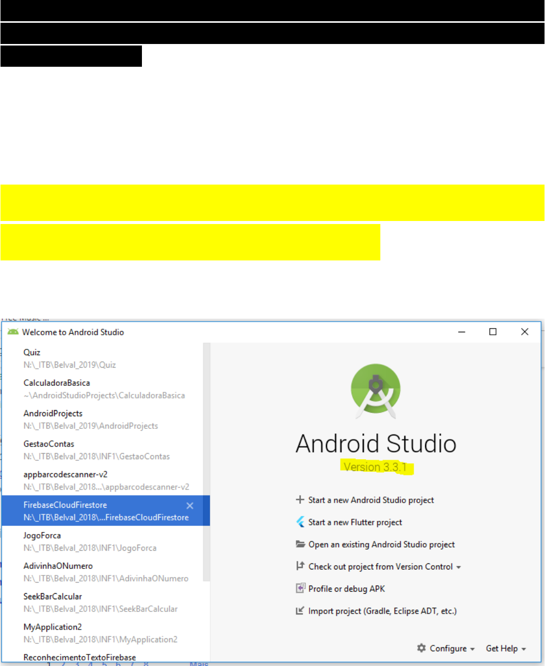 <p>CriminalIntent (COPIE ESTE ARQUIVO PARA SUA PASTA E MARQUE TODA AULA O LOCAL EM QUE VOCÊ PAROU)</p><p>Aplicativo baseado no livro Android Programming 3rd Editon – Big Nerd Ranch</p><p>Esse aplicativo irá armazenar uma lista de “crimes de escritório” como deixar a impressora sem papel após a impressão do seu arquivo ou deixar os pratos sujos na pia para serem lavados ou esquecer de entregar um trabalho para o professor. Um registro com título, data e foto será armazenado para que seja possível enviar para um contato suspeito esses dados por e-mail, facebook ou outro aplicativo.</p><p>Inicialmente criado com a versão 3.3.1 do Android Studio.</p><p>Vá PARA A PÁGINA 3</p><p>Durante o desenvolvido deste material utilizamos a versão 3.3.2 do Android Studio.</p><p>CONFIGURAÇÃO PARA ANDROID STUDIO 3.2.1 ESTA VERSÃO É A DO LABORATÓRIO</p><p>CLIQUE EM FILE NEW</p><p>NOME DO PROJETO CriminalIntent</p><p>(as próximas janelas apenas para referência)</p><p>LEITURA</p><p>https://android-developers.googleblog.com/2019/01/android-studio-33.html</p><p>https://codelabs.developers.google.com/</p><p>http://www.fujiax.com/developer_android_/studio/releases/</p><p>Criar uma nova classe na pasta Java com.example.criminalintent utilize o botão direito do mouse, escolha New Java Class nomeie a classe como CrimeActivity</p><p>Criar um novo layout na pasta res layout utilize o botão direito do mouse, escolha New Layout resource file nomeie o layout como activity_crime</p><p>No arquivo da classe CrimeActivity.java faça a alteração no código</p><p>Se preferir abra a classe MainActivity.java. Utilize CTRL+A para selecionar e depois CTRL+C para copiar. Retorne para classe CrimeActivity.java. Utilize CTRL+A para selecionar e depois CTRL+V para colar. Altere logo após public class MainActivity com erro para public class CrimeActivity.</p><p>Abra o arquivo AndroidManifest.xml para alterar a atividade que iniciará o aplicativo. Passe de MainActivity para CrimeActivity</p><p>Criando a camada Model do aplicativo escrevendo a classe Crime.java na pasta java com.example.criminalintent</p><p>Na classe Crime.java vamos adicionar os atributos (campos ou propriedades ou variáveis) Id, title, date and status para representar o crime e um construtor para inicializar o ID e data do registro.</p><p>Ao iniciar declaração private UUID mId; o editor de código do Android Studio irá atender ao pedido da linguagem Java para que solicite a inclusão no framework do Android a classe UUID. Faça uso do ALT+ENTER e importe a classe.</p><p>A classe UUID (Universally Unique Identifier) ou GUID (Globally Unique Identifier) são técnicas de identificação de registros globais, ou seja, os seus registros recebem um id de forma que não existirá outro no mundo com o mesmo (probabilidade muito baixa de acontecer). Na prática, este tipo de identificação é muito útil para evitar problemas de segurança e evitar que softwares mal-intencionados encontrem registros desprotegidos.</p><p>Ao fazer uso do ALT+ENTER com o cursor sobre UUID surge a janela para importar a classe.</p><p>Importe a classe java.util.Date</p><p>O próximo passo é gerar os getters e setters, ou seja, vamos fazer ENCAPSULAMENTO dos dados que “transitam” em nossa classe.</p><p>Mas o que é Encapsulamento? Consiste que os atributos de uma classe não podem ser acessados diretamente. Estes métodos são seletores e modificadores dos atributos de sua classe.</p><p>O Encapsulamento nos oferece a ideia de tornar o software ou aplicativo mais flexível, fácil de modificar e de criar novas implementações. O Encapsulamento oferece um controle de acesso aos atributos e métodos de uma classe. É uma forma eficiente de proteger os dados manipulados dentro da classe, além de determinar onde esta classe poderá ser manipulada.</p><p>Um método getter é utilizado para recuperar alguma informação, geralmente utilizado para trazer informação de algum atributo, sem ter que utilizar o atributo explicitamente. Então chamamos através de métodos. Eis ai um dos princípios de OO (paradigma de programação orientação a objetos). Já o método setter é utilizado para setar (definir) um valor dentro de um objeto, de uma variável.</p><p>Por convenção são utilizados minúsculos juntamente com os nomes dos métodos, get são assessores, consultores, somente acessam, consultam determinado atributo. Os set são modificadores, esses sim alteram os atributos.</p><p>Métodos getters e setters funcionam bem, principalmente quando se utilizam frameworks, como o Hibernate, porém, eles devem ser utilizados com moderação.</p><p>Quando um atributo é do tipo boolean você não usa GET, mas sim IS. Traduzindo essa regra não existe getSolved() e sim isSolved().</p><p>O nome 'set' e 'get' em um método é uma convenção da Sun, para representar que um método faz na classe. Além disso, por convenção get e set vem em caixa baixa e a primeira letra do nome do método em caixa alta.</p><p>LEITURA https://www.devmedia.com.br/get-e-set-metodos-acessores-em-java/29241</p><p>Com o botão direito do mouse clique no construtor Crime() e escolha Generate.</p><p>Escolha Getter</p><p>Escolha a variável mId. Este membro da classe é do tipo read-only (apenas leitura).</p><p>Veja o resultado na imagem abaixo.</p><p>Com o botão direito do mouse clique no construtor Crime() e escolha Generate.</p><p>Escolha Getter and Setter</p><p>Escolha mTitle, mDate e mSolved (utilize a tecla CTRL+clique para selecionar os três)</p><p>Veja o resultado desta ação na imagem abaixo.</p><p>UI Fragments</p><p>Esse aplicativo irá utilizar Fragmentos (para anexar a foto, iniciar um outro aplicativo, enviar um e-mail). O fragmento pertence a atividade, ou seja, é interno a atividade. O sistema operacional cuida somente da atividade, ou seja, não é responsável pelo que acontece com o fragmento. A responsabilidade sobre o que ocorre com o fragmento é da atividade. Esteja aten