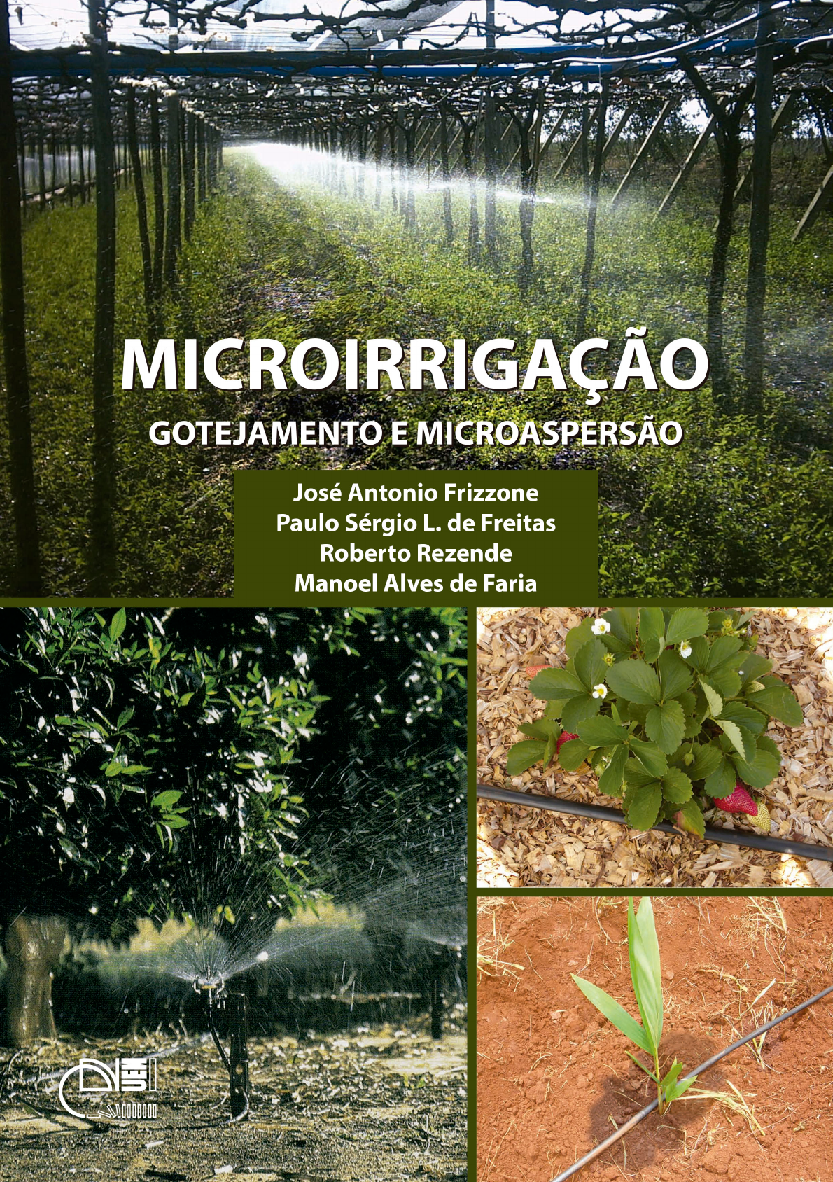 <p>MICROIRRIGAÇÃO</p><p>GOTEJAMENTO E MICROASPERSÃO</p><p>EDITORA DA UNIVERSIDADE ESTADUAL DE MARINGÁ</p><p>REITOR</p><p>Prof. Dr. Mauro Luciano Baesso</p><p>VICE-REITOR</p><p>Prof. Dr. Julio César Damasceno</p><p>DIRETORA DA EDUEM</p><p>Profa. Dra. Terezinha Oliveira</p><p>EDITORA-CHEFE DA EDUEM</p><p>Profa. Dra. Gisella Maria Zanin</p><p>CONSELHO EDITORIAL</p><p>PRESIDENTE</p><p>Profa. Dra. Terezinha Oliveira</p><p>EDITORES CIENTÍFICOS</p><p>Profa. Dra. Ana Lúcia Rodrigues, Profa. Dra. Angela Mara de Barros Lara, Profa. Dra. Analete Regina Schelbauer, Prof. Dr. Antonio Ozai da Silva, Profa. Dra.</p><p>Cecília Edna Mareze da Costa, Prof. Dr. Eduardo Augusto Tomanik, Profa. Dra. Elaine Rodrigues, Profa. Dra. Larissa Michelle Lara, Prof. Dr. Luiz Roberto</p><p>Evangelista, Profa. Dra. Luzia Marta Bellini, Prof. Me. Marcelo Soncini Rodrigues, Prof. Dr. Márcio Roberto do Prado, Prof. Dr. Mário Luiz Neves de Azevedo,</p><p>Profa. Dra. Maria Cristina Gomes Machado, Prof. Dr. Oswaldo Curty da Motta Lima, Prof. Dr. Raymundo de Lima, Profa. Dra. Regina Lúcia Mesti, Prof. Dr.</p><p>Reginaldo Benedito Dias, Prof. Dr. Sezinando Luiz Menezes, Profa. Dra. Valéria Soares de Assis</p><p>EQUIPE TÉCNICA</p><p>FLUXO EDITORIAL</p><p>Edneire Franciscon Jacob, Marinalva Aparecida Spolon Almeida, Mônica Tanamati Hundzinski, Vania Cristina Scomparin</p><p>PROJETO GRÁFICO E DESIGN</p><p>Luciano Wilian da Silva, Marcos Kazuyoshi Sassaka, Marcos Roberto Andreussi</p><p>MARKETING</p><p>Marcos Cipriano da Silva</p><p>COMERCIALIZAÇÃO</p><p>Gerson Ribeiro de Andrade, Paulo Bento da Silva, Solange Marly Oshima</p><p>José Antonio Frizzone</p><p>Paulo Sérgio Lourenço de Freitas</p><p>Roberto Rezende</p><p>Manoel Alves de Faria</p><p>MICROIRRIGAÇÃO</p><p>GOTEJAMENTO E MICROASPERSÃO</p><p>Maringá</p><p>2012</p><p>Copyright © 2012 para os autores</p><p>Reimpressão 2016 revisada</p><p>Todos os direitos reservados. Proibida a reprodução, mesmo parcial, por qualquer processo mecânico, eletrônico,</p><p>reprográfi co etc., sem a autorização, por escrito, dos autores.</p><p>Todos os direitos reservados desta edição 2012 para Eduem.</p><p>Todas as informações da obra, ora publicada, como as marcas registradas, os logos, as imagens e quaisquer outros</p><p>conteúdos utilizados, são de responsabilidade dos autores.</p><p>Revisão textual e gramatical: Luciane Braz Perez Mincoff</p><p>Normalização textual e de referência: Adriana Camargo Cantadori de Camargo</p><p>Projeto gráfi co/diagramação: Marcos Kazuyoshi Sassaka</p><p>Ficha catalográfi ca: Edilson Damasio (CRB 9-1123)</p><p>Fonte: Verdana, Futura Lt BT</p><p>Tiragem - versão impressa: 500 exemplares</p><p>Dados Internacionais de Catalogação-na-Publicação (CIP)</p><p>(Eduem - UEM, Maringá – PR., Brasil)</p><p>M626 Microirrigação : gotejamento e microaspersão / José Antonio Frizzone...[ et al.]. -- Maringá : Eduem, 2012.</p><p>356 p. : il., grafs., tabs. (algumas color.).</p><p>Os autores José Antonio Frizzone, Paulo Sérgio Lourenço de Freitas, Roberto Rezende, Manoel Alves de Faria</p><p>fazem parte do Instituto Nacional de Ciência e Tecnologia em Engenharia de Irrigação (INCTEI).</p><p>ISBN 978-85-7628-460-4</p><p>1. Microirrigação. 2. Irrigação. 3. Gotejamento. 4. Microaspersão. 5. Fertirrigação. 6. Dimensionamento</p><p>hidráulico. I. Frizzone, José Antonio. II. Freitas, Paulo Sérgio Lourenço de. III. Rezende, Roberto. IV. Faria, Manoel</p><p>Alves de. V. Título.</p><p>CDD 21.ed. 631.587</p><p>Editora fi liada à</p><p>Eduem - Editora da Universidade Estadual de Maringá</p><p>Av. Colombo, 5790 - Bloco 40 - Campus Universitário</p><p>87020-900 - Maringá-Paraná - Fone: 44 3011-4103</p><p>www.eduem.uem.br - eduem@uem.br</p><p>SUMÁRIO</p><p>PREFÁCIO ................................................................................................ 9</p><p>INTRODUÇÃO ........................................................................................... 11</p><p>Capítulo 1</p><p>SISTEMAS DE MICROIRRIGAÇÃO E SEUS COMPONENTES .. 13</p><p>1.1 INTRODUÇÃO .................................................................................... 13</p><p>1.2 BENEFÍCIOS E LIMITAÇÕES ................................................................. 15</p><p>1.3 CONSIDERAÇÕES TÉCNICAS, ECONÔMICAS E AMBIENTAIS ..................... 25</p><p>1.4 COMPOSIÇÃO DO SISTEMA ................................................................. 28</p><p>1.5 REFERÊNCIAS .................................................................................... 52</p><p>Capítulo 2</p><p>SELEÇÃO DE EMISSORES E SEUS ESPAÇAMENTOS ............. 53</p><p>2.1 EMISSORES PARA MICROIRRIGAÇÃO .................................................... 53</p><p>2.2 FATORES INTERVENIENTES NA SELEÇÃO DE EMISSORES ........................ 59</p><p>2.3 HIDRÁULICA DOS EMISSORES ............................................................. 61</p><p>2.4 VARIAÇÃO DE VAZÃO DOS EMISSORES ................................................. 73</p><p>2.5 PORCENTAGEM DA ÁREA MOLHADA ...................................................... 80</p><p>2.6 REFERÊNCIAS .................................................................................... 93</p><p>Capítulo 3</p><p>DESEMPENHO DA MICROIRRIGAÇÃO ................................. 97</p><p>3.1 INTRODUÇÃO .................................................................................... 97</p><p>3.2 USO DE ÁGUA - TERMINOLOGIA .......................................................... 99</p><p>3.3 PARTIÇÃO DA ÁGUA APLICADA POR IRRIGAÇÃO ..................................... 100</p><p>3.4 NECESSIDADE DE ÁGUA DAS CULTURAS ............................................... 103</p><p>3.5 NECESSIDADE DE IRRIGAÇÃO DAS CULTURAS ....................................... 104</p><p>M I C R O I R R I G A Ç Ã O : G O T E J A M E N T O E M I C R O A S P E R S à O</p><p>F R I z z O N E , 