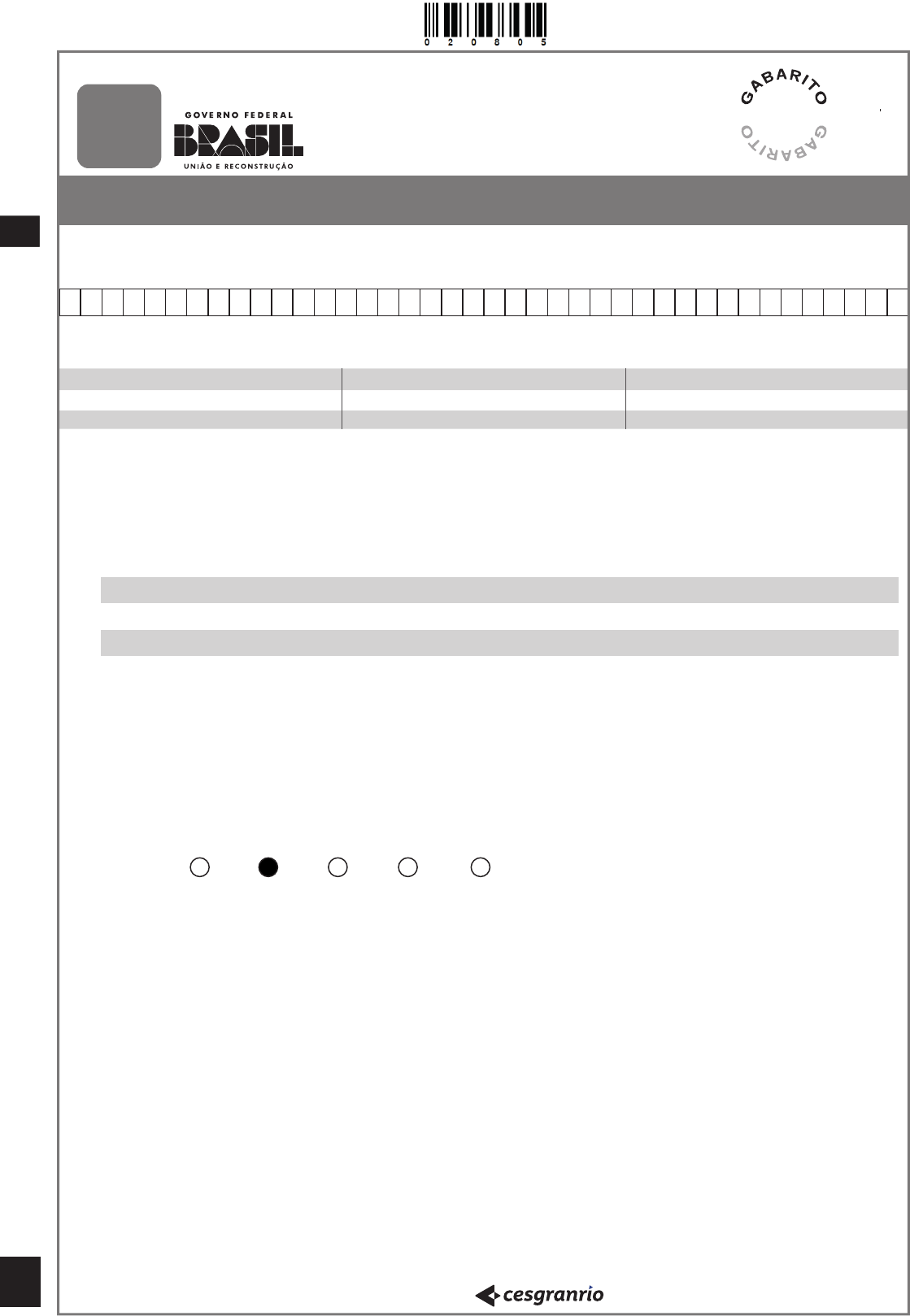 <p>Co</p><p>nc</p><p>ur</p><p>so</p><p>P</p><p>úb</p><p>lic</p><p>o N</p><p>ac</p><p>ion</p><p>al</p><p>Un</p><p>ific</p><p>ad</p><p>o d</p><p>o G</p><p>ov</p><p>er</p><p>no</p><p>F</p><p>ed</p><p>er</p><p>al</p><p>ED</p><p>ITA</p><p>L N</p><p>o 08</p><p>/20</p><p>24</p><p>de</p><p>10</p><p>de</p><p>ja</p><p>ne</p><p>iro</p><p>d</p><p>e 2</p><p>02</p><p>4.Concurso Público Nacional Unificado</p><p>PROVAS OBJETIVAS</p><p>BLOCO 8 - TARDE</p><p>NÍVEL INTERMEDIÁRIO</p><p>PROVA</p><p>16</p><p>LEIA ATENTAMENTE AS INSTRUÇÕES ABAIXO.</p><p>01 - ATENÇÃO: o candidato deve escrever seu nome, pondo uma letra em cada quadrícula, no espaço abaixo (não abreviar o primeiro e o</p><p>último nomes).</p><p>02 - O candidato recebeu do fiscal o seguinte material:</p><p>a) este Caderno de Questões, com o enunciado das 45 questões objetivas, em ordem, sem repetição ou falha, assim distribuídas:</p><p>Noções de Direito Matemática Realidade Brasileira</p><p>Questões Questões Questões</p><p>1 a 15 - Total: 15 16 a 30 - Total: 15 31 a 45 - Total: 15</p><p>b) Cartão-Resposta destinado às respostas das questões objetivas formuladas nas provas.</p><p>03 - O candidato deve verificar se o seu nome e número de inscrição conferem com os que aparecem no Cartão-Resposta. Caso não esteja</p><p>nessas condições, o fato deve ser IMEDIATAMENTE notificado ao fiscal.</p><p>04 - Após a conferência, o candidato deverá:</p><p>a) assinar, no espaço próprio do Cartão-Resposta, com caneta esferográfica de tinta preta, fabricada em material transparente.</p><p>b) transcrever, no espaço apropriado do seu Cartão-Resposta, com sua caligrafia usual, considerando as letras maiúsculas</p><p>e minúsculas, a seguinte frase:</p><p>c) preencher, no espaço apropriado do seu Cartão-Resposta, o campo de marcação referente ao seguinte gabarito:</p><p>05 - O candidato deve ter muito cuidado com o Cartão-Resposta, para não o dobrar, amassar ou manchar. O Cartão-Resposta SOMENTE</p><p>poderá ser substituído se, no ato da entrega ao candidato, já estiver danificado.</p><p>06 - Logo após a autorização para o início das provas, o candidato deve conferir se este Caderno de Questões está em ordem e com todas</p><p>as páginas. Caso não esteja nessas condições, o fato deve ser IMEDIATAMENTE notificado ao fiscal.</p><p>07 - Para cada uma das questões objetivas, são apresentadas 5 alternativas classificadas com as letras (A), (B), (C), (D) e (E);</p><p>só uma responde adequadamente ao quesito proposto. O candidato só deve assinalar UMA letra no Cartão-Resposta,</p><p>preenchendo todo o espaço compreendido pelos círculos, com caneta esferográfica de tinta preta, fabricada em material</p><p>transparente, de forma contínua e densa. A leitura óptica do Cartão-Resposta é sensível a marcas escuras; portanto, os</p><p>campos de marcação devem ser preenchidos completamente, sem deixar claros. A marcação em mais de uma alternativa</p><p>anula a questão, mesmo que uma das respostas esteja correta.</p><p>Exemplo: A B C D E</p><p>08 - As questões objetivas são identificadas pelo número que se situa acima do seu enunciado.</p><p>09 - Será eliminado deste Concurso Público o candidato que</p><p>a) for surpreendido, durante as provas, em qualquer tipo de comunicação com outro candidato;</p><p>b) portar ou usar, durante a realização das provas, aparelhos sonoros, fonográficos, de comunicação ou de registro, eletrônicos ou</p><p>não, tais como: agendas eletrônicas e(ou) similares, gravadores, pen drive, mp3 player e(ou) similar, fones de ouvido, chaves com</p><p>alarme ou com qualquer outro componente eletrônico, relógios de qualquer natureza, telefones celulares, microcomputadores</p><p>portáteis e(ou) similares;</p><p>c) se ausentar da sala em que se realizam as provas levando consigo o Caderno de Questões e(ou) o Cartão-Resposta;</p><p>d) se recusar a entregar o Caderno de Questões e(ou) o Cartão-Resposta, quando terminar o tempo estabelecido;</p><p>e) não assinar a lista de presença e(ou) o Cartão-Resposta.</p><p>f) deixar de transcrever corretamente, nos espaços próprios do Cartão-Resposta, o número do gabarito e a frase constantes na capa</p><p>de seu Caderno de Questões.</p><p>Obs. O candidato só poderá ausentar-se do recinto das provas após duas horas contadas a partir do efetivo início das mesmas.</p><p>Por motivos de segurança, o candidato NÃO poderá levar o Caderno de Questões, a qualquer momento.</p><p>10 - O candidato deve reservar os 30 (trinta) minutos finais para marcar seu Cartão-Resposta. Os rascunhos e as marcações assinaladas</p><p>no Caderno de Questões NÃO serão levados em conta.</p><p>11 - O tempo disponível para esta Prova objetiva é de 3 (três) horas, já incluído o tempo para marcação do Cartão-Resposta, findo o</p><p>qual o candidato deverá, obrigatoriamente, entregar o Cartão-Resposta, o Caderno de Questões e assinar a lista de presença.</p><p>12 - As questões e os gabaritos das Provas Objetivas serão divulgados a partir do primeiro dia útil após sua realização, na página do</p><p>Concurso Público Nacional Unificado (https://www.gov.br/gestao/pt-br/concursonacional).</p><p>FUNDAÇÃO</p><p>5</p><p>Gabarito 5</p><p>Inútil paisagem.</p><p>2</p><p>CONCURSO PÚBLICO</p><p>NACIONAL UNIFICADO</p><p>BLOCO 8 - TARDEPROVA 16 - GABARITO 5 - NÍVEL INTERMEDIÁRIO</p><p>NOÇÕES DE DIREITO</p><p>1</p><p>Um servidor público federal foi punido em um processo</p><p>administrativo disciplinar com a pena de demissão, pela</p><p>prática de corrupção. Posteriormente, ele foi absolvido na</p><p>esfera penal, por insuficiência de provas, pelos mesmos</p><p>fatos que ensejaram a punição no âmbito administrativo.</p><p>Como fica a situação funcional do servidor?</p><p>(A) Ele terá direito a ser reintegrado.</p><p>(B) Ele terá direito à aposentadoria proporcional.</p><p>(C) Ele não terá direito à revisão do process