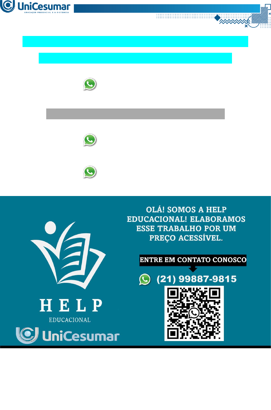 <p>ATIVIDADE 1 – AGRON - COMERCIALIZAÇÃO DE</p><p>PRODUTOS AGROINDUSTRIAIS - 53_2024</p><p>(21) 99887-9815</p><p>ASSESSORIA NOS SEUS TRABALHOS</p><p>(21) 99887-9815</p><p>(21) 99887-9815</p><p>No dinâmico mundo do agronegócio brasileiro, o Prêmio para Escoamento de Produto (PEP)</p><p>se destaca como um instrumento crucial da Política de Garantia de Preços Mínimos (PGPM)</p><p>do Governo Federal. Através de uma subvenção econômica, o PEP incentiva a compra de pro-</p><p>dutos agrícolas diretamente dos produtores rurais e cooperativas, garantindo-lhes um preço mí-</p><p>nimo e impulsionando o desenvolvimento das regiões produtoras. Nesta atividade desafiadora,</p><p>você, estudante de agronomia, assumirá o papel de um investigador do PEP, explorando seus</p><p>benefícios para diferentes áreas e contribuindo para o aprimoramento da compreensão sobre</p><p>essa importante ferramenta.</p><p>Diante desse contexto, EXPLIQUE quais os benefícios que estes instrumentos, utilizado pelo</p><p>Governo Federal, traz para as regiões produtoras e para as regiões consumidoras.</p><p>OLÁ! SOMOS A HELP EDUCACIONAL!</p><p>ELABORAMOS ESSE TRABALHO POR UM PREÇO</p><p>ACESSÍVEL.</p><p>ENTRE EM CONTATO CONOSCO</p><p>(21) 99887-9815</p>