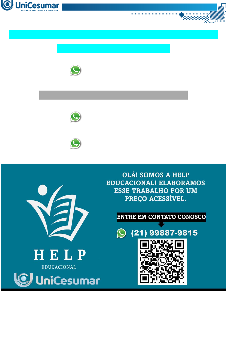 <p>MAPA – AGRON - COMERCIALIZAÇÃO DE PRODUTOS</p><p>AGROINDUSTRIAIS - 53_2024</p><p>(21) 99887-9815</p><p>ASSESSORIA NOS SEUS TRABALHOS</p><p>(21) 99887-9815</p><p>(21) 99887-9815</p><p>Desvendando o Poder da Embalagem no Agronegócio: Uma Missão para um futuro Agrô-</p><p>nomo</p><p>Introdução:</p><p>No mundo dinâmico do agronegócio, a embalagem transcende sua função básica de proteger os</p><p>alimentos. Ela se torna uma ferramenta estratégica de marketing, capaz de despertar o interesse</p><p>do consumidor e impulsionar as vendas.</p><p>Sua Missão:</p><p>Nesta atividade desafiadora, você, futuro agrônomo, assumirá o papel de um detetive da emba-</p><p>lagem. Sua missão é analisar 3 produtos do agronegócio e desvendar como a embalagem</p><p>contribui para o sucesso de cada um deles.</p><p>Desafio:</p><p>1. Selecione 3 produtos do agronegócio que despertem sua curiosidade:</p><p>Explore diferentes categorias, como frutas, legumes, grãos, laticínios, carnes, bebidas etc.</p><p>Priorize produtos com embalagens que chamem sua atenção, sejam inovadoras ou tradicionais.</p><p>- Descreva os nomes dos 3 produtos e as principais características de cada embalagem.</p><p>- Tire pelo menos uma fotografia de cada um dos produtos e insira no formulário.</p><p>2. Examine cada embalagem com lupa de marketing.</p><p>-Análise visual:</p><p>Observe cores, formas, imagens, tipografia e outros elementos visuais.</p><p>Responda: Como esses elementos contribuem para a identidade do produto e atraem o</p><p>consumidor?</p><p>Análise funcional:</p><p>Avalie a praticidade da embalagem, como abertura, fechamento, transporte e armazenamento.</p><p>Responda: Como a embalagem facilita a vida do consumidor e garante a integridade do</p><p>produto?</p><p>Análise informativa:</p><p>Leia atentamente as informações presentes na embalagem, como ingredientes, valor nutricional,</p><p>instruções de uso e data de validade.</p><p>Responda: Como essas informações auxiliam o consumidor na tomada de decisão e ga-</p><p>rantem a segurança alimentar?</p><p>Análise emocional:</p><p>Reflita sobre as sensações e emoções que a embalagem desperta em você.</p><p>Responda: Como a embalagem contribui para a construção da marca e gera uma conexão</p><p>emocional com o consumidor?</p><p>3. Registre suas descobertas em detalhes.</p><p>- Anote todas as suas observações e reflexões sobre cada embalagem.</p><p>- Tire fotos para ilustrar suas anotações.</p><p>- Responda: Descreva para cada produto analisado, uma sugestão para aprimorar/melho-</p><p>rar as embalagens (3 produtos - 3 sugestões).</p><p>INFORMAÇÕES GERAIS:</p><p>- A resposta desta atividade deverá ser realizada diretamente no FORMULÁRIO PADRÃO</p><p>MAPA, o qual está em arquivo WORD, disponível dentro da página da disciplina, no ícone de</p><p>MATERIAL DA DISCIPLINA.</p><p>- Acesse o VÍDEO EXPLICATIVO sobre a realização da atividade Mapa, que está disponível em</p><p>FÓRUM - Vídeos Explicativos, assista com atenção para compreender o processo de desenvol-</p><p>vimento de sua resposta.</p><p>- Realize uma cuidadosa correção ortográfica em seu texto, lembrando que toda e qualquer pes-</p><p>quisa exige a descrição de fonte, portanto, não deixe de referenciar as fontes de pesquisa, con-</p><p>forme as normas da ABNT (Associação Brasileira de Normas Técnicas), mesmo que sua fonte de</p><p>pesquisa seja o livro da disciplina.</p><p>ATENÇÃO:</p><p>- Esta atividade deve ser realizada individualmente.</p><p>- A forma de entrega é em ANEXO diretamente na ferramenta da atividade MAPA.</p><p>- É permitido anexar apenas um (1) arquivo.</p><p>- A Unicesumar não se responsabiliza pelo envio de arquivos errados, onde não haverá possibili-</p><p>dade de trocar o arquivo após clicar em FINALIZAR, nem mesmo o envio por outras ferramentas,</p><p>portanto, faça a devida conferência de seu arquivo anexado, antes de clicar na ferramenta para</p><p>finalizar a atividade Mapa.</p><p>- Seu arquivo contendo a resposta deverá ser anexado diretamente no campo do mapa, em seu</p><p>studeo, dentro do prazo estabelecido. Consulte o prazo de participação no cabeçalho desta ativi-</p><p>dade e também no calendário da disciplina.</p><p>***Após anexar seu arquivo, clique em responder e certifique-se de ter escolhido realmente o</p><p>arquivo correto, abrindo sua atividade antes de clicar em finalizar.</p><p>***Após clicar em finalizar, o arquivo anexado não poderá ser alterado ou substituído, nem mesmo</p><p>aceito por outro tipo de ferramenta.</p><p>Em caso de dúvidas, entre em contato conosco pela ferramenta FALE COM O MEDIADOR! Será</p><p>um prazer lhe atender.</p><p>Tenha uma ótima atividade, repleta de aprendizado!</p><p>OLÁ! SOMOS A HELP EDUCACIONAL!</p><p>ELABORAMOS ESSE TRABALHO POR UM PREÇO</p><p>ACESSÍVEL.</p><p>ENTRE EM CONTATO CONOSCO</p><p>(21) 99887-9815</p>