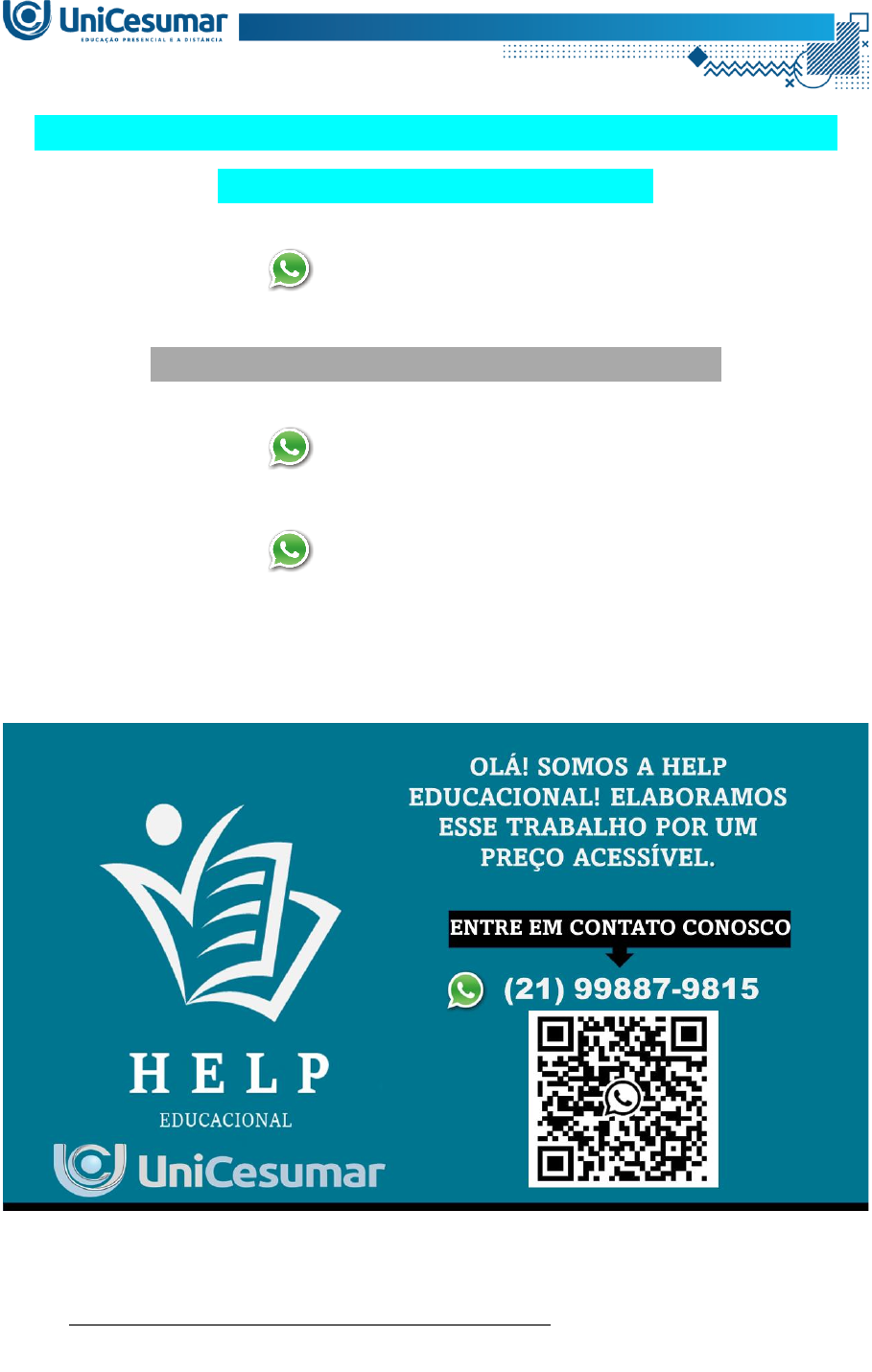 <p>MAPA – AGRON - COMERCIALIZAÇÃO DE PRODUTOS</p><p>AGROINDUSTRIAIS - 53_2024</p><p>(21) 99887-9815</p><p>ASSESSORIA NOS SEUS TRABALHOS</p><p>(21) 99887-9815</p><p>(21) 99887-9815</p><p>Desvendando o Poder da Embalagem no Agronegócio: Uma Missão para um futuro Agrô-</p><p>nomo</p><p>Introdução:</p><p>No mundo dinâmico do agronegócio, a embalagem transcende sua função básica de proteger os</p><p>alimentos. Ela se torna uma ferramenta estratégica de marketing, capaz de despertar o interesse</p><p>do consumidor e impulsionar as vendas.</p><p>Sua Missão:</p><p>Nesta atividade desafiadora, você, futuro agrônomo, assumirá o papel de um detetive da emba-</p><p>lagem. Sua missão é analisar 3 produtos do agronegócio e desvendar como a embalagem</p><p>contribui para o sucesso de cada um deles.</p><p>Desafio:</p><p>1. Selecione 3 produtos do agronegócio que despertem sua curiosidade:</p><p>Explore diferentes categorias, como frutas, legumes, grãos, laticínios, carnes, bebidas etc.</p><p>Priorize produtos com embalagens que chamem sua atenção, sejam inovadoras ou tradicionais.</p><p>- Descreva os nomes dos 3 produtos e as principais características de cada embalagem.</p><p>- Tire pelo menos uma fotografia de cada um dos produtos e insira no formulário.</p><p>2. Examine cada embalagem com lupa de marketing.</p><p>-Análise visual:</p><p>Observe cores, formas, imagens, tipografia e outros elementos visuais.</p><p>Responda: Como esses elementos contribuem para a identidade do produto e atraem o</p><p>consumidor?</p><p>Análise funcional:</p><p>Avalie a praticidade da embalagem, como abertura, fechamento, transporte e armazenamento.</p><p>Responda: Como a embalagem facilita a vida do consumidor e garante a integridade do</p><p>produto?</p><p>Análise informativa:</p><p>Leia atentamente as informações presentes na embalagem, como ingredientes, valor nutricional,</p><p>instruções de uso e data de validade.</p><p>Responda: Como essas informações auxiliam o consumidor na tomada de decisão e ga-</p><p>rantem a segurança alimentar?</p><p>Análise emocional:</p><p>Reflita sobre as sensações e emoções que a embalagem desperta em você.</p><p>Responda: Como a embalagem contribui para a construção da marca e gera uma conexão</p><p>emocional com o consumidor?</p><p>3. Registre suas descobertas em detalhes.</p><p>- Anote todas as suas observações e reflexões sobre cada embalagem</p><p>- Tire fotos para ilustrar suas anotações.</p><p>- Responda: Descreva para cada produto analisado, uma sugestão para aprimorar/melho-</p><p>rar as embalagens (3 produtos - 3 sugestões).</p><p>INFORMAÇÕES GERAIS:</p><p>- A resposta desta atividade deverá ser realizada diretamente no FORMULÁRIO PADRÃO</p><p>MAPA, o qual está em arquivo WORD, disponível dentro da página da disciplina, no ícone de</p><p>MATERIAL DA DISCIPLINA.</p><p>- Acesse o VÍDEO EXPLICATIVO sobre a realização da atividade Mapa, que está disponível em</p><p>FÓRUM - Vídeos Explicativos, assista com atenção para compreender o processo de desenvol-</p><p>vimento de sua resposta.</p><p>- Realize uma cuidadosa correção ortográfica em seu texto, lembrando que toda e qualquer pes-</p><p>quisa exige a descrição de fonte, portanto, não deixe de referenciar as fontes de pesquisa, con-</p><p>forme as normas da ABNT (Associação Brasileira de Normas Técnicas), mesmo que sua fonte de</p><p>pesquisa seja o livro da disciplina.</p><p>ATENÇÃO:</p><p>- Esta atividade deve ser realizada individualmente.</p><p>- A forma de entrega é em ANEXO diretamente na ferramenta da atividade MAPA.</p><p>- É permitido anexar apenas um (1) arquivo.</p><p>- A Unicesumar não se responsabiliza pelo envio de arquivos errados, onde não haverá possibili-</p><p>dade de trocar o arquivo após clicar em FINALIZAR, nem mesmo o envio por outras ferramentas,</p><p>portanto, faça a devida conferência de seu arquivo anexado, antes de clicar na ferramenta para</p><p>finalizar a atividade Mapa.</p><p>- Seu arquivo contendo a resposta deverá ser anexado diretamente no campo do mapa, em seu</p><p>studeo, dentro do prazo estabelecido. Consulte o prazo de participação no cabeçalho desta ativi-</p><p>dade e também no calendário da disciplina.</p><p>***Após anexar seu arquivo, clique em responder e certifique-se de ter escolhido realmente o</p><p>arquivo correto, abrindo sua atividade antes de clicar em finalizar.</p><p>***Após clicar em finalizar, o arquivo anexado não poderá ser alterado ou substituído, nem mesmo</p><p>aceito por outro tipo de ferramenta.</p><p>Em caso de dúvidas, entre em contato conosco pela ferramenta FALE COM O MEDIADOR! Será</p><p>um prazer lhe atender.</p><p>Tenha uma ótima atividade, repleta de aprendizado!</p><p>OLÁ! SOMOS A HELP EDUCACIONAL!</p><p>ELABORAMOS ESSE TRABALHO POR UM PREÇO</p><p>ACESSÍVEL.</p><p>ENTRE EM CONTATO CONOSCO</p><p>(21) 99887-9815</p>