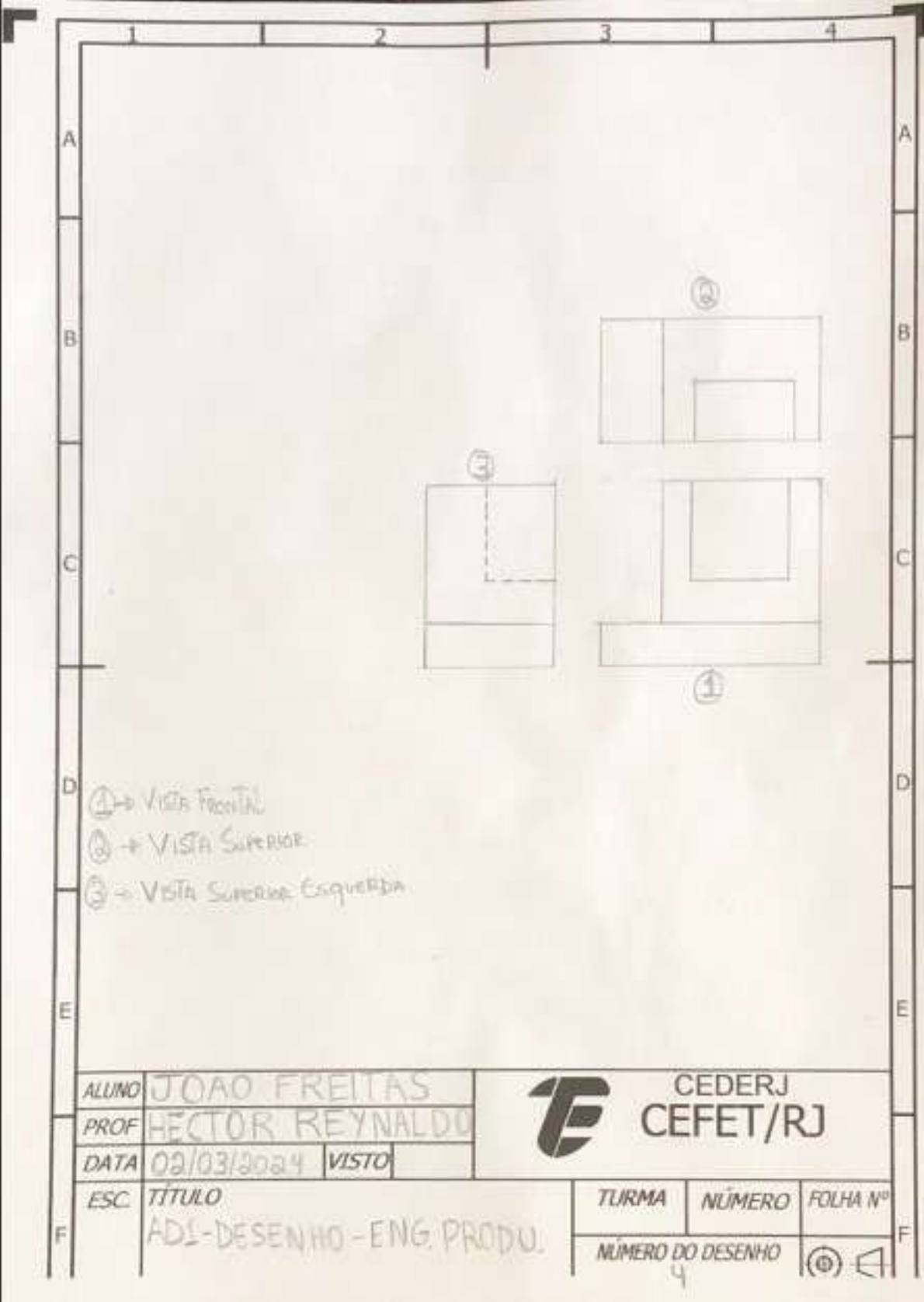 <p>1 2 3 4 A A B 1 D a + 3 E ALUNO JOAO FREITAS E CEDERJ PROF HECTOR REYNALDO CEFET/RJ DATA 02/03/2024 VISTO ESC TÍTULO TURMA FOLHA F -ENG F NUMERO DO DESENHO 4</p>
