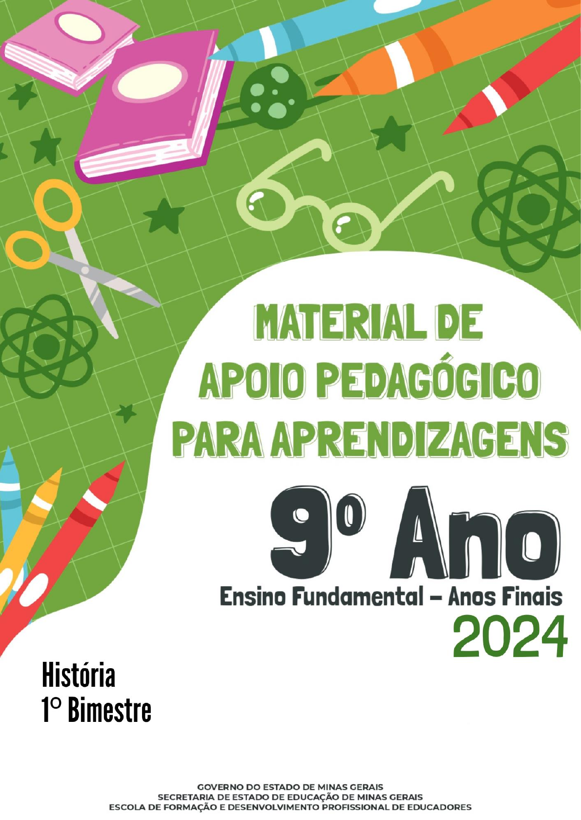 <p>1</p><p>2</p><p>SUMÁRIO</p><p>MATERIAL PARA O(A) PROFESSOR(A) .......................................................... pág 01</p><p>APRESENTAÇÃO ........................................................................................................... pág 02</p><p>HISTÓRIA</p><p>Planejamento 1: República, símbolos e contexto ............................................. pág 03</p><p>Planejamento 2: A representação negra na república e seus reflexos na</p><p>atualidade .................................................................................................... pág 12</p><p>Planejamento 3: Processos de Urbanização e Modernização da Sociedade</p><p>Brasileira ...................................................................................................... pág 18</p><p>Planejamento 4: O Papel do Trabalhismo como Força Política, Social e Cultural</p><p>no Brasil ...................................................................................................... pág 22</p><p>Planejamento 5: Indígenas, política e contexto ............................................... pág 27</p><p>Planejamento 6: A Primeira Guerra Mundial – contexto, texto e pesquisa ......... pág 32</p><p>3</p><p>MATERIAL PARA O ESTUDANTE ......................................................................... pág 41</p><p>APRESENTAÇÃO ........................................................................................................... pág 42</p><p>HISTÓRIA</p><p>Planejamento 1: República, símbolos e contexto ............................................. pág 43</p><p>Planejamento 2: A representação negra na república e seus reflexos na</p><p>atualidade .................................................................................................... pág 45</p><p>Planejamento 3: Processos de Urbanização e Modernização da Sociedade</p><p>Brasileira ...................................................................................................... pág 50</p><p>Planejamento 4: O Papel do Trabalhismo como Força Política, Social e Cultural</p><p>no Brasil ...................................................................................................... pág 52</p><p>Planejamento 5: Indígenas, política e contexto ............................................... pág 54</p><p>Planejamento 6: A Primeira Guerra Mundial – contexto, texto e pesquisa ......... pág 56</p><p>4</p><p>5</p><p>Prezado(a) Professor(a),</p><p>No intuito de contribuir com o seu trabalho em sala de aula, preparamos este caderno com muito</p><p>carinho. Por meio dele, você terá a oportunidade de ampliar o trabalho já previsto em seu</p><p>planejamento. O presente caderno foi construído tendo por base os Planos de Curso 2024, que</p><p>foram elaborados a partir das competências e habilidades estabelecidas na BNCC e no CRMG a</p><p>serem desenvolvidas e trabalhadas por todas as unidades escolares da rede pública de Minas</p><p>Gerais. Aborda os diversos componentes curriculares e para facilitar a leitura e manuseio foi</p><p>organizado de forma linear. Contudo ao implementá-lo em sala de aula, você poderá recorrer</p><p>aos planejamentos de forma não sequencial, atendendo às necessidades pedagógicas dos</p><p>estudantes. É preciso atentar-se, apenas, para os conhecimentos que são pré-requisitos, ou seja,</p><p>aqueles que foram trabalhados nos planejamentos anteriores e que precisam ser retomados com</p><p>os estudantes para a construção do novo conhecimento em questão.</p><p>Como o principal objetivo deste material é o trabalho com o desenvolvimento de habilidades,</p><p>este caderno vem com o propósito de dialogar com sua prática e com o seu planejamento dentro</p><p>das habilidades básicas - aquelas que devemos assegurar que todos os nossos estudantes</p><p>aprendam.</p><p>Destacamos ainda, que o livro didático continua sendo um instrumento eficiente e necessário,</p><p>principalmente por não anular o papel do professor de mediador insubstituível dentro dos</p><p>processos de ensino e de aprendizagem. Coracini (1999) nos diz que “o livro didático já se</p><p>encontra internalizado no professor (...) o professor continua no controle do conteúdo e da forma</p><p>(...)”, reafirmando que, o que torna o livro didático e o que torna os Cadernos MAPA eficientes,</p><p>é justamente a maneira como o professor utiliza-os junto aos estudantes.</p><p>Desejamos a você, professor(a), um bom trabalho!</p><p>Equipe da Escola de Formação e Desenvolvimento Profissional de Educadores</p><p>3</p><p>REFERÊNCIA</p><p>2024</p><p>MATERIAL DE APOIO PEDAGÓGICO PARA APRENDIZAGENS – MAPA</p><p>UNIDADE TEMÁTICA</p><p>O nascimento da República no Brasil e os processos históricos até a metade do século XX.</p><p>OBJETO(S) DE</p><p>CONHECIMENTO</p><p>HABILIDADE(S)</p><p>Experiências</p><p>republicanas e práticas</p><p>autoritárias: as tensões e</p><p>disputas do mundo</p><p>contemporâneo.</p><p>A Proclamação da</p><p>República e seus</p><p>primeiros</p><p>desdobramentos.</p><p>(EF09HI01X) Descrever e contextualizar os principais aspectos</p><p>sociais, culturais, econômicos e políticos da emergência da</p><p>República no Brasil, destacando os movimentos contestatórios</p><p>como parte constituinte da identidade nacional e mostrando a</p><p>enorme desigualdade social entre as elites e a população pobre.</p><p>(EF09HI02) Caracterizar e compreender os ciclos da história</p><p>republicana, identificando particularidades da história local e</p><p>regional até 1954.</p><p>PLANEJAMENTO</p><p>TEMA DE ESTUDO: República, símbolos e contexto.</p><p>A) APRESENTAÇÃO:</p><p>Professor (a), essa habilidade permite trabalhar o conceito de República bem como as</p><p>características que a consolidaram no Brasil. Nesse plano de aula, propõe-se o exercício de</p><p>desenvolver conjuntamente a habilidade EF09HI02, pois ela oportuniza a investigação dos</p><