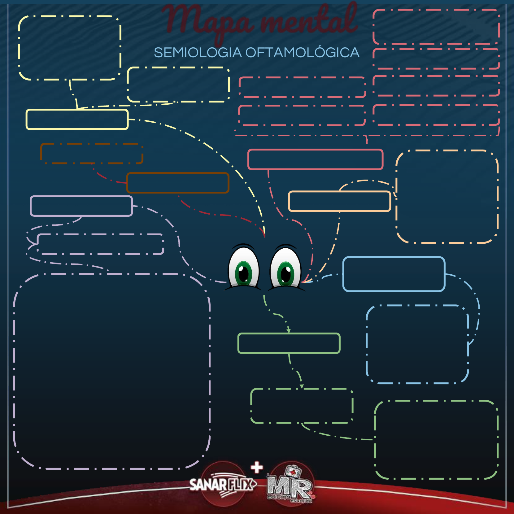 <p>SEMIOLOGIA OFTAMOLÓGICA</p><p>Mapa mental</p><p>Idade avançada</p><p>Fenômenos de</p><p>senescência Catarata;</p><p>Blefaroptose; Lesões</p><p>vasculares e</p><p>degenerativas da</p><p>retina</p><p>Avitaminose A</p><p>Olho seco;</p><p>Úlcera de</p><p>córnea; Cegueira</p><p>noturna;</p><p>Transtornos na</p><p>visão cromática</p><p>Excesso de álcool</p><p>e tabaco</p><p>Redução da</p><p>acuidade por</p><p>lesão</p><p>desmielinizante</p><p>do nervo óptico</p><p>Exame físico</p><p>Inspeção e palpação</p><p>• Globo ocular e cavidade</p><p>orbitária</p><p>• Aparelho lacrimal – aumento</p><p>principalmente por infecção e</p><p>neoplasia</p><p>• Pálpebras – cor, textura, posição</p><p>e movimentos</p><p>• Conjuntiva e esclera</p><p>• Córnea</p><p>• Pupila – normal = redondas,</p><p>centralizadas, de igual tamanho</p><p>• Cristalino – perda de</p><p>transparência = catarata</p><p>Trabalho</p><p>Ambiente</p><p>fechado, com</p><p>poeira – blefarite</p><p>e conjuntivite</p><p>Locais com muito</p><p>sol - pterígio</p><p>Acuidade visual</p><p>Quadro de Snellen</p><p>Principais sintomas</p><p>Sensação de corpo</p><p>estranho</p><p>Queimação</p><p>Dor ocular</p><p>Cefaleia</p><p>Prurido</p><p>Lacrimejamento</p>