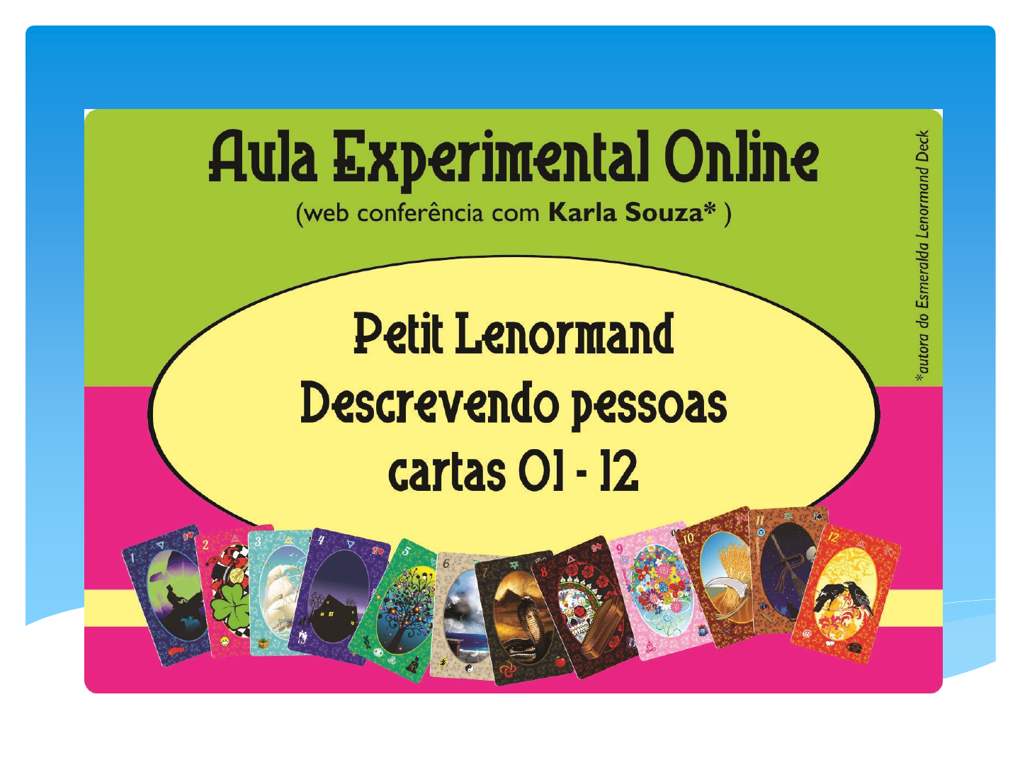 <p> Na maioria das vezes, do sexo</p><p>masculino;</p><p> alguém ágil, rápido, sempre em</p><p>movimento;</p><p> ativo e atlético, inteligente</p><p>("pensamento rápido"),</p><p> de boa aparência, bem vestido;</p><p>(metrosexual, na moda)</p><p> normalmente, jovem e bonito.</p><p>1. O Cavaleiro</p><p>2. O Trevo</p><p> Sorriso Marcante</p><p> De baixa estatura,</p><p> Mãos grandes</p><p> Pessoa divertida, alegre, generosa,</p><p>bom senso de humor ou "coringa".</p><p>3. O Navio</p><p> normalmente do sexo masculino;</p><p> Tende a ser estrangeira ou de</p><p>descendencia estrangeira;</p><p> viaja muito e passou sua vida se</p><p>movendo.</p><p> tende a ter pele morena e olhos</p><p>claros.</p><p>4. A Casa</p><p> Traços “retos”, rosto retangular ou</p><p>triangular, traços fortes e firmes.</p><p> uma pessoa caseira. Ela muitas vezes</p><p>cozinha, ou se diverte perto de sua</p><p>família e amigos.</p><p> pode estar acima do peso;</p><p>5. A Árvore</p><p> tende a ser uma pessoa com pele</p><p>escura, como Africano ou Caribenho.</p><p> pode ser um médico ou curandeiro,</p><p> rígido ;</p><p> Alto;</p><p> Cabelo encorpado, armado;</p><p>6. As Nuvens</p><p> Pode ser alguém com cabelo branco, ou</p><p>alguém que tinge seu cabelo;</p><p> o Rei de Paus pode se referir a um</p><p>homem mais velho, que não é muito</p><p>agradável, ou a quem você é obrigado a</p><p>conviver, de alguma forma - muitas</p><p>vezes um membro da família, e muitas</p><p>vezes uma ex de algum tipo;</p><p> pode indicar um fumante</p><p> pode ser completamente desagradável,</p><p>difícil e duro, difícil de conversar. Espere</p><p>um humor complicado;</p><p>7. A Cobra</p><p> Como tal, ela é uma mulher (às vezes</p><p>uma velha), que é muito astuta,</p><p>inteligente e confiável.</p><p> Alguém muito flexível, ágil, rápido</p><p> Mulher com curvas</p><p> Pode ser uma bailarina</p><p> Usa óculos, ou enxerga pouco</p><p>8. O Caixão</p><p> Cabelos escuros, pele clara, aspecto</p><p>de vampiro;</p><p> Pode ser alguem com aparencia</p><p>cansada, olheiras,</p><p> Pode ser corcunda;</p><p> à direita da pessoa, esta esconde um</p><p>dom musical ou artístico muito</p><p>grande.</p><p> pode significar alguém deprimido,</p><p>mal-humorado, de pouca sorte ou</p><p>que esteve doente há pouco tempo;</p><p>9. As Flores</p><p> uma mulher feliz, charmosa;</p><p> às vezes loira ou de cabelos</p><p>castanhos com luzes/reflexos loiros.</p><p> Ela é gentil, educada, delicada e um</p><p>pouco tradicional;</p><p> Forte, saudável, raramente fica</p><p>doente;</p><p> Guerreira;</p><p> pode ser a mãe.</p><p>10. A Foice</p><p> Homem, de traços finos,</p><p> Cabelos claros, ruivos</p><p> é alguém que parece rude e áspero.</p><p> Pode ser plus size;</p><p> se a árvore também está por perto,</p><p>pode ser cirurgião. Perto da</p><p>montanha, alguém que trabalha</p><p>junto a natureza, como um</p><p>agrônomo...</p><p>11. Chicote e Vassoura</p><p> tende a ser alguém que fala muito ou</p><p>tem uma voz incomum.</p><p> Eles podem ser agressivos – intensos,</p><p>passionais. Com os lírios podem têm</p><p>tendências ao fetiche, particularmente</p><p>Sadomasoquismo.</p><p> É a carta dos escritores, fala e linguagem</p><p>em geral.</p><p> Por exemplo, Caixão + Chicotes pode</p><p>indicar alguém com um defeito de fala,</p><p>ou que não fala a sua língua muito bem.</p><p>12. Os Pássaros</p><p> duas pessoas como uma tia ou tio,</p><p>sua avó ou avô,</p><p> pensar "pares" e "dois“</p><p> Pessoa com ornamentos em pares</p><p>(duas tattoos, dois piercings, etc)</p><p> Senhor ou senhora</p><p> Pessoa “antenada”, sempre sabe as</p><p>novidades.</p>