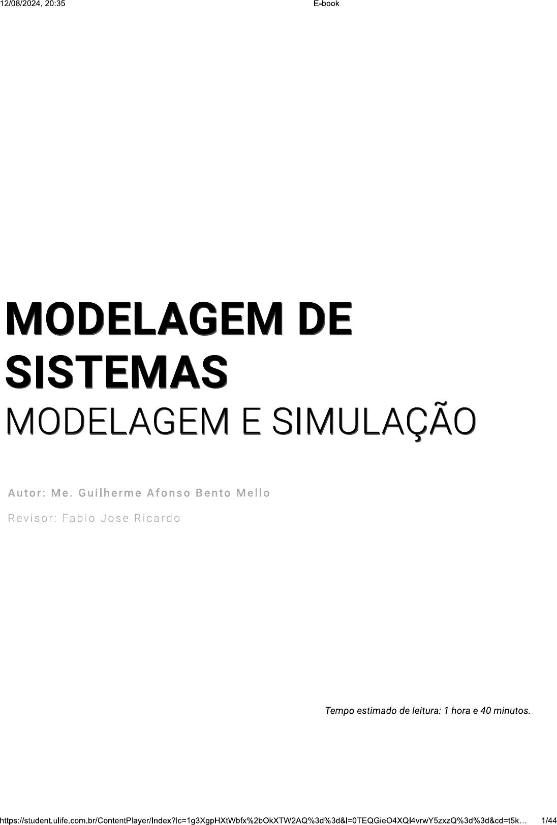 <p>12/08/2024, 20:35 E-book MODELAGEM DE SISTEMAS MODELAGEM E SIMULAÇÃO Autor: Me. Guilherme Afonso Bento Mello Revisor: Fabio Jose Ricardo Tempo estimado de leitura: 1 hora e 40 minutos. 1/44</p><p>12/08/2024, 20:35 E-book Introdução Olá, estudante! Vamos iniciar esta unidade curricular entendendo, primeiramente, o que significa modelar Para o Dicionário Brasileiro da Língua Portuguesa Michaelis ( on-line ) modelar significa: fazer modelo ou o molde; assinalar ou fazer sobressair os contornos; contornar, moldar; dar determinada forma a; determinar os traços gerais. E é exatamente nesse contexto que vamos trabalhar, em que modelar é uma representação de um sistema real. São inúmeras características e atributos em que o(a) engenheiro(a) deve avaliar e realizar a modelagem . Nesta unidade, serão apresentados diversos meios de representação de sistemas, introdução à modelagem e à simulação , contextualização e histórico; e modelagem e simulação de sistemas contínuos (estado estacionário) Bons estudos! Introdução à Modelagem e à 2/44</p><p>12/08/2024, 20:35 E-book Simulação, Contextualização e Histórico Podemos representar diversos objetos ao nosso próprio modo. Observe, nas imagens a seguir, duas formas de representação do mesmo objeto. Figura 1.1 - a) Dados de seis lados reais; b) Dados de seis lados em desenho Fonte: mik38 / 123RF; vector1st / Freepik. #PraCegoVer : foram apresentadas duas imagens, sendo a primeira uma foto em que constam dois dados reais, que correspondem a dois cubos, ou seja, um objeto tridimensional de seis lados iguais; os dados encontram-se em uma superfície branca; a segunda imagem refere-se a esses mesmos dados, contudo, desenhados em software tornando-os um modelo com as mesmas dimensões e valores apresentados em cada lado dos dados. Na figura à esquerda, são apresentados dois dados retirados de uma fotografia real, enquanto, na figura à direita, eles são um desenho, ou seja, uma representação 3/44</p><p>12/08/2024, 20:35 E-book do que são os dados; e é nisso que consiste uma modelagem : na capacidade de poder representar um sistema, um dispositivo, um equipamento, uma estrutura real etc. de forma que ele(a) possa ser transformado(a) em números ou informações que sejam úteis para o controle desse sistema. que podemos observar nos dados em forma de desenho: são dois dados com cores e numerações semelhantes. Nas duas imagens, são apresentadas três das faces de cada dado, e o formato é igual (figura geométrica de seis lados iguais cubos). Entretanto, não é possível representar um sistema de qualquer maneira, pois a modelagem de um sistema consiste na representação fidedigna do comportamento de um sistema. Se o dispositivo contém parâmetros, como temperatura, vazão, pressão, dentre outras variáveis, também é necessário realizar a modelagem de tal forma que esses parâmetros estejam relacionados. Lembre-se de que a maior parte dos dispositivos eletrônicos industriais são controlados por uma gama muito grande de variáveis, sendo as mais comuns as citadas anteriormente: temperatura, vazão, pressão e nível (volume de um reservatório). Para Bittencourt (2007, p. 8), "a identificação de sistemas é uma ferramenta para se obter modelos de sistemas a partir de dados de entrada e saída". Facilitando a identificação de processos, por mais difíceis e complexos que eles sejam. Um exemplo em que se pode ver isso é a representação de caixas d'água, que possuem uma bomba para abastecimento e uma válvula solenoide, para liberar a passagem de água para o consumidor. Nesse exemplo, o que comumente controla-se ou se mapeia é o nível, mas também é possível controlar a vazão de entrada e saída do fluido, o tempo de abastecimento e desabastecimento, a temperatura do fluido, a pressão no reservatório, dentre outros possíveis parâmetros que podem ser levados em consideração, como dilatação do reservatório viscosidade, enfim, diversos parâmetros Fonte: Yiu Tung Lee / podem ser considerados em uma caixa d'água. 4/44</p><p>12/08/2024, 20:35 E-book Agora imagine mapear toda uma estrutura industrial, que possui uma infinidade de equipamentos que devem realmente ser modelados, como caldeiras, reservatórios de óleo, pontes rolantes, gruas e guindastes robôs industriais? As gruas e os guindastes utilizados na construção civil são equipamentos que, muitas vezes, requerem modelagem, representação e controle. Esses equipamentos são amplamente utilizados para içar blocos e estruturas pesadas, geralmente até o alto de prédios e edifícios. Entretanto, não se içam todos os equipamentos da mesma forma, há um limite superior máximo de esforço que o equipamento suporta, um posicionamento do contrapeso, e, em alguns tipos de grua, inclusive, há movimentação do contrapeso, para poder balancear e controlar adequadamente a carga que está sendo içada. Portanto, essa estrutura precisa ser devidamente representada, inclusive os pontos atuantes de esforço, os pontos de apoio, a carga "fixa" e a altura na qual será elevada (pode ser em relação a uma cota - último pavimento construído - ou em relação ao solo). No próximo tópico, vamos conhecer um pouco mais sobre o histórico da modelagem, desde seu surgimento e suas diversas aplicações. Vamos lá? Origem da Modelagem e da Simulação Você pode não notar, mas em quase tudo que nos cerca emprega-se a modelagem. A modelagem remete a um tema muito antigo, no que tange ao vestuário. Segundo Soares (2019), os primeiros dados coletados direcionam para o período paleolítico, que relaciona o descobrimento da técnica do curtimento de peles e a utilização de agulhas de ossos. As primeiras técnicas de modelagem tridimensional apontam para gregos, egípcios e romanos, com vestimentas utilizando broches, cordões, faixas e cintos. Já a modelagem e a simulação industrial remetem às décadas de 1960 e 1970, em que a simula