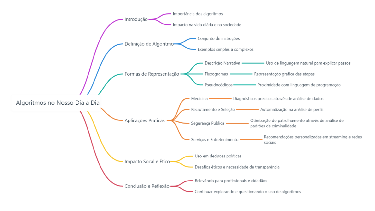 <p>Importância dos algoritmos Introdução Impacto na vida diária e na sociedade Conjunto de instruções Definição de Algoritmo Exemplos simples a complexos Descrição Narrativa Uso de linguagem natural para explicar passos Formas de Representação Fluxogramas Representação gráfica das etapas Pseudocódigos Proximidade com linguagem de programação Medicina Diagnósticos precisos através de análise de dados Algoritmos no Nosso Dia a Dia Recrutamento e Seleção Automatização na análise de perfis Aplicações Práticas Otimização do patrulhamento através de análise de Segurança Pública padrões de criminalidade Recomendações personalizadas em streaming e redes Serviços e Entretenimento sociais Uso em decisões políticas Impacto Socal e Ético Desafios éticos e necessidade de transparência Relevância para profissionais e cidadãos Conclusão e Reflexão Continuar explorando e questionando uso de algoritmos</p>