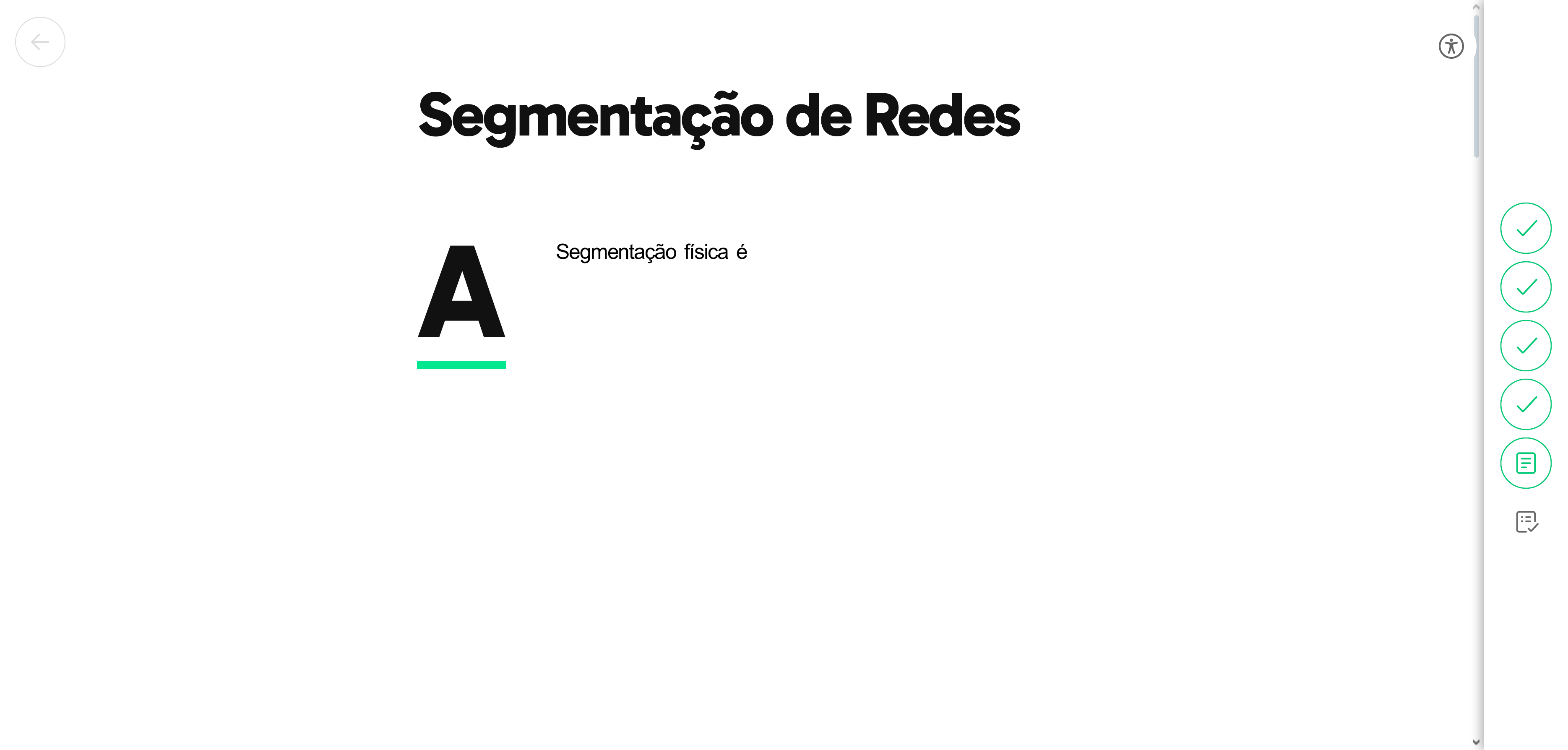 <p>A</p><p>Segmentação de Redes</p><p>Segmentação física é o ato de dividir uma rede privada</p><p>em subseções.</p><p>É um processo que, em redes locais, é considerado</p><p>antigo e ultrapassado, mas para redes de porte industrial,</p><p>com vários equipamentos com tecnologias distintas embarcadas, acabam</p><p>sendo de estrema utilidade e segurança. Cada segmento não é uma rede</p><p>independente.</p><p>Se a rede utiliza um símbolo, ou um método de prevenção de colisão de</p><p>escuta, um grande número de dispositivos na mesma rede pode provocar</p><p>atrasos na transmissão.</p><p>Se a rede é grande, com muitos dispositivos ligados, cada dispositivo tem</p><p>que esperar um longo tempo antes que haja silêncio na linha e possa</p><p>li d d l</p>