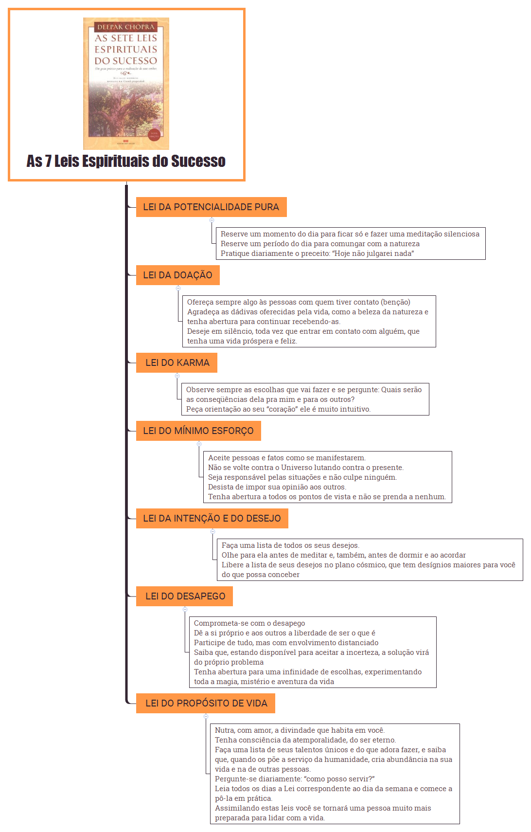 <p>DEEPAK CHOPRA AS SETE LEIS ESPIRITUAIS DO SUCESSO As 7 Leis Espirituais do Sucesso LEI DA POTENCIALIDADE PURA Reserve um momento do dia para ficar só e fazer uma meditação silenciosa Reserve um período do dia para comungar com a natureza Pratique diariamente preceito: "Hoje não julgare: nada" LEI DA DOAÇÃO Ofereça sempre algo às pessoas com quem tiver contato (benção) Agradeça as dádivas oferecidas pela vida, como a beleza da natureza e tenha abertura para continuar Deseje em silêncio, toda vez que entrar em contato com que tenha uma vida próspera e feliz LEI DO KARMA Observe sempre as escolhas que vai fazer e se Quais serão as dela pra mim e para os outros? Peça orientação ao seu "coração" ele é muito intuitivo LEI DO MÍNIMO ESFORÇO Aceite pessoas e fatos como se manifestarem Não se volte contra o Universo lutando contra o Seja responsável pelas situações e não culpe ninguém Desista de impor sua opinião aos outros Tenha abertura a todos os pontos de vista e não se prenda a nenhum LEI DA INTENÇÃO E DO DESEJO Faça uma lista de todos os seus desejos Olhe para ela antes de meditar antes de dormir e ao acordar Libere a lista de seus desejos no plano que tem maiores para você do que possa conceber LEI DO DESAPEGO Comprometa-se com o desapego Dê a si próprio e aos outros a liberdade de ser o que é Participe de tudo mas com envolvimento distanciado Saiba que, estando disponível para aceitar a incerteza, a solução virá do próprio problema Tenha abertura para uma infinidade de escolhas, experimentando toda a magia, mistério e aventura da vida LEI DO PROPÓSITO DE VIDA Nutra com amor, a divindade que habita em você. Tenha consciência da atemporalidade, do ser eterno Faça uma lista de seus talentos únicos e do que adora e saiba que, quando os a serviço da cria abundância na sua vida e na de outras pessoas Pergunte-se "como posso Leia todos os dias a Lei correspondente ao dia da semana e comece a pô-la em Assimilando estas leis você se tornará uma pessoa muito mais preparada para lidar com a</p>