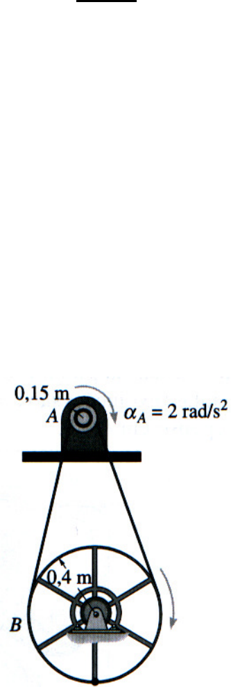 <p>Lista 1</p><p>1. Quando um motor elétrico é ligado, ele alcança uma rotação nominal de 2400 rpm em 4</p><p>s. Quando desligado, o motor livre atinge o repouso em 40 s. Admitindo um movimento</p><p>uniformemente acelerado, determine o número de rotações que o motor executa:</p><p>a) para alcançar a rotação nominal;</p><p>b) para atingir o repouso;</p><p>c) plotar o gráfico da rotação em função do tempo.</p><p>2. Usa-se um motor para girar uma roda com suas pás no interior do equipamento mostrado</p><p>na figura abaixo. Considere que a polia A, conectada ao motor, inicia seu movimento a</p><p>partir do repouso, com uma aceleração angular αA = 2 rad/s</p><p>2</p><p>. Plotar o gráfico da velocidade</p><p>angular da polia B em função de ∆θA, tal que 0≤ ∆θA ≤50.</p><p>3. Em função de um aumento de potência requerido, o motor M gira o eixo A com</p><p>velocidade angular inicial ωo = 50 rad/s e aceleração angular α = 6 rad/s</p><p>2</p><p>. Plotar o gráfico</p><p>da velocidade angular do eixo A após o eixo B realizar 0 a 200 revoluções c/ incremento de</p><p>1 rev.</p><p>Obs.: ∅ engrenagem do eixo A = 24 mm.</p><p>Raio da engrenagem do eixo B = 60 mm.</p><p>4. Considere as duas engrenagens cônicas (A e B) mostradas na figura. Se A parte do</p><p>repouso e tem aceleração angular constante αA = 2 rad/s</p><p>2</p><p>, plotar o gráfico do tempo vs</p><p>velocidade angular de B, que varia entre 20 e 50 rad/s com incremento de 10 rad/s.</p><p>RESPOSTAS</p><p>1. a) 80 rotações</p><p>b) 800 rotações</p><p>c)</p><p>0 5 10 15 20 25 30 35 40 45</p><p>0</p><p>500</p><p>1000</p><p>1500</p><p>2000</p><p>2500</p><p>t(s)</p><p>w</p><p>(r</p><p>p</p><p>m</p><p>)</p><p>2.</p><p>0 5 10 15 20 25 30 35 40 45 50</p><p>0</p><p>2</p><p>4</p><p>6</p><p>8</p><p>10</p><p>12</p><p>14</p><p>Polia A (revoluções)</p><p>V</p><p>e</p><p>lo</p><p>c</p><p>id</p><p>a</p><p>d</p><p>e</p><p>a</p><p>n</p><p>g</p><p>u</p><p>la</p><p>r</p><p>d</p><p>e</p><p>B</p><p>(</p><p>ra</p><p>d</p><p>/s</p><p>)</p><p>3.</p><p>0 20 40 60 80 100 120 140 160 180 200</p><p>50</p><p>100</p><p>150</p><p>200</p><p>250</p><p>300</p><p>Revoluções</p><p>V</p><p>e</p><p>lo</p><p>c</p><p>.</p><p>a</p><p>n</p><p>g</p><p>u</p><p>la</p><p>r</p><p>d</p><p>o</p><p>e</p><p>ix</p><p>o</p><p>A</p><p>(</p><p>ra</p><p>d</p><p>/s</p><p>)</p><p>4.</p><p>40 50 60 70 80 90 100</p><p>20</p><p>25</p><p>30</p><p>35</p><p>40</p><p>45</p><p>50</p><p>Tempo (s)</p><p>V</p><p>e</p><p>lo</p><p>c</p><p>id</p><p>a</p><p>d</p><p>e</p><p>a</p><p>n</p><p>g</p><p>u</p><p>la</p><p>r</p><p>d</p><p>e</p><p>B</p><p>(</p><p>ra</p><p>d</p><p>/s</p><p>)</p>