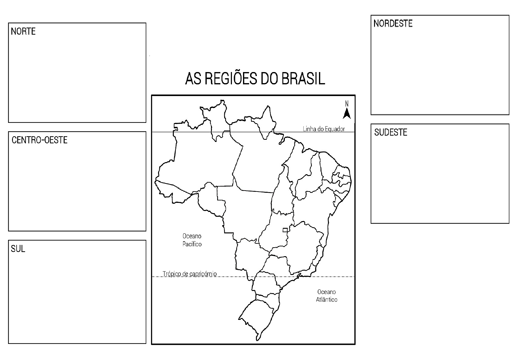 <p>NORDESTE ORTE AS REGIÕES DO BRASIL N Linha do Equador SUDESTE ENTRO-OESTE Oceano Pacífico UL Trópico de capricórnio Oceano Atlântico</p>