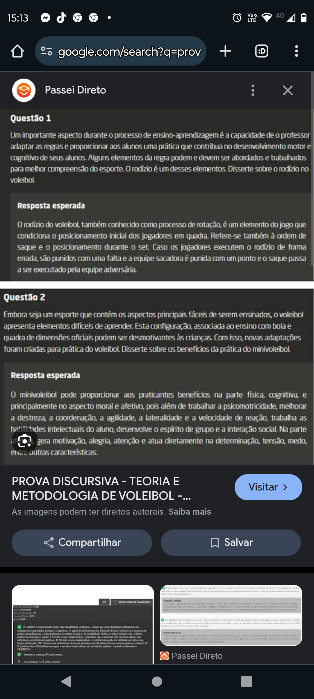<p>15:13 4G LTE google.com/search?q=prov + :D Passei Direto X Questão 1 Um importante aspecto durante processo de ensino-aprendizagem é a capacidade de professor adaptar as regras e proporcionar aos alunos uma prática que contribua no desenvolvimento motor e cognitivo de seus alunos. Alguns elementos da regra podem e devem ser abordados e trabalhados para melhor compreensão do esporte. rodizio é um desses elementos. Disserte sobre o rodizio no Resposta esperada rodizio do voleibol, também conhecido como processo de rotação, é um elemento do jogo que condiciona posicionamento inicial dos jogadores em quadra. Refere-se também à ordem de saque e posicionamento durante Caso os jogadores executem rodizio de forma errada, são punidos com uma falta e a equipe sacadora é punida com um ponto e saque passa a ser executado pela equipe adversária. Questão 2 Embora seja um esporte que contém os aspectos principais fáceis de serem ensinados, voleibol apresenta elementos de aprender. Esta configuração, associada ao ensino com bola e quadra de dimensões oficiais podem ser desmotivantes às crianças. Com isso, novas adaptações foram criadas para prática do voleibol. Disserte sobre os benefícios da prática do Resposta esperada minivoleibol pode proporcionar aos praticantes benefícios na parte física, cognitiva, e principalmente no aspecto moral e afetivo, pois além de trabalhar a psicomotricidade, melhorar a destreza, a coordenação, a agilidade, a lateralidade e a velocidade de reação, trabalha as habilidades intelectuais do aluno, desenvolve espirito de grupo e a interação social. Na parte gera motivação, atenção e atua diretamente na determinação, tensão, medo, entre outras características. PROVA DISCURSIVA - TEORIA E Visitar > METODOLOGIA DE VOLEIBOL - ... As imagens podem ter direitos autorais. Saiba mais Compartilhar Salvar Passei Direto</p>