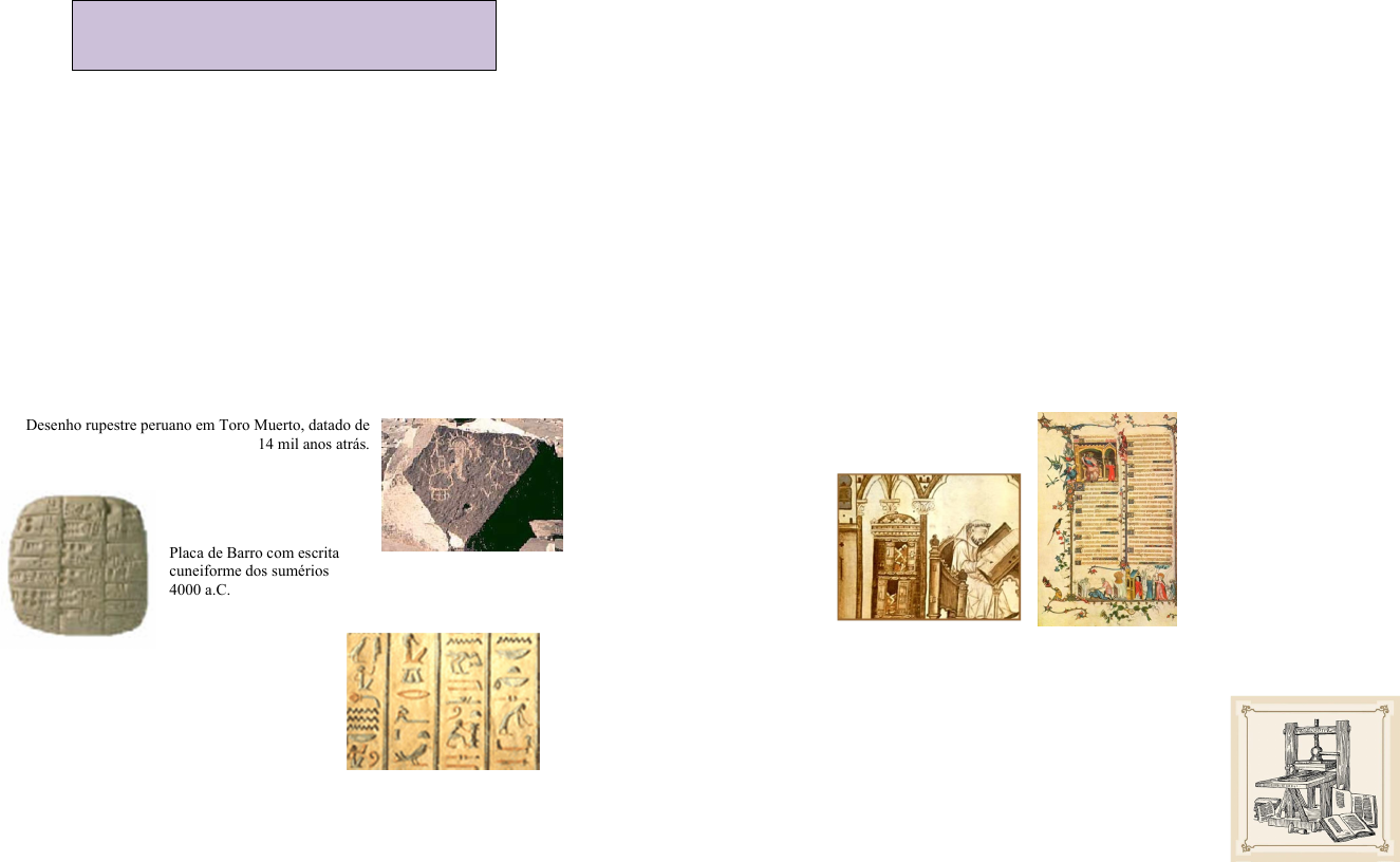 <p>Universidade Federal de Pelotas</p><p>Centro de Letras e Comunicação</p><p>Curso de Pós-Graduação em Letras</p><p>Especialização em Literatura Comparada</p><p>Metodologias do Ensino da Leitura e da Literatura</p><p>1</p><p>Pessoal,</p><p>Este material é parte de um trabalho feito para um curso dado a</p><p>distância. Apesar de ser de minha autoria, não quis alterar a</p><p>estrutura.</p><p> Leitura e Cultura</p><p> Nesta semana, começaremos a tratar do aparecimento da escrita, abordando sua</p><p>evolução ao longo da história da humanidade. Nessa esteira, refletiremos sobre</p><p>como ela chega e interfere nos rumos culturais da humanidade.</p><p>O objetivo dessa unidade é pensar sobre como o nascimento da cultura escrita</p><p>influenciou na construção da sociedade e desenvolveu novas relações entre o</p><p>homem e as produções culturais. Também vamos refletir sobre os aspectos</p><p>cognitivos e afetivos dos quais a leitura se vale.</p><p>Se a escrita nasce para facilitar as relações comerciais, em breve ela toma outro</p><p>caminho: auxilia o homem no registro de sua própria memória social e individual.</p><p>Assim, o nascimento da cultura escrita modificou as relações sociais, já que a própria</p><p>forma de manter a memória das sociedades ganhou outro formato. Nesse aspecto, a</p><p>produção escrita ganha corpo e também formas de se propagar e se perpetuar.</p><p>Desenho rupestre peruano em Toro Muerto, datado de</p><p>14 mil anos atrás.</p><p>Placa de Barro com escrita</p><p>cuneiforme dos sumérios</p><p>4000 a.C.</p><p>Escrita hieroglífica em pergaminho (Egito Antigo).</p><p>A escrita precisou de um suporte material para ser registrada. Assim, ao longo da</p><p>evolução da humanidade, o homem foi experimentando materiais diversos a fim de que</p><p>as informações veiculadas pela escrita não se perdessem. Higounet (2003) nos diz que:</p><p>Universidade Federal de Pelotas</p><p>Centro de Letras e Comunicação</p><p>Curso de Pós-Graduação em Letras</p><p>Especialização em Literatura Comparada</p><p>Metodologias do Ensino da Leitura e da Literatura</p><p>2</p><p>A pedra sempre foi o suporte por excelência das escritas monumentais. Os</p><p>hieróglifos egípcios, as inscrições hititas, os fragmentos de Biblos, os</p><p>caracteres monumentais gregos e latinos são gravados na pedra dura ou, vez</p><p>por outra, incisos em relevo. A escrita dita cuneiforme da Suméria e da Ásia</p><p>anterior era, por outro lado, preferentemente traçada em tabuletas de argila</p><p>fresca, depois cozidas ao forno. Os mais antigos caracteres chineses são</p><p>gravados no bronze ou no casco da tartaruga. No tempo de Maomé, os</p><p>árabes usavam muito ossos de camelo (p.16).</p><p>Além desses materiais duros, o autor cita ainda outros suportes que foram</p><p>utilizados para a escrita, como a madeira, a casca de árvore, as folhas de palmeira, a</p><p>tela, a seda, as peles de animais, as tabuletas de cera, o couro, a casca de bétula, o</p><p>papiro, o pergaminho e o papel. Esses três últimos são considerados os materiais mais</p><p>utilizados desde o início de nossa era (HIGOUNET, 2003, p.17).</p><p>Antes de pensarmos na invenção da prensa por Gutenberg (1390?-1468), o</p><p>homem tinha seus mecanismos de reprodução do material escrito, pois, mesmo após</p><p>abandonar os pergaminhos, a era medieval utilizava-se de mãos humanas para duplicar</p><p>e difundir a produção cultural através da atividade dos monges copistas. Ainda que o</p><p>material ficasse sob a guarda da igreja, não era proibido consultá-lo, era apenas</p><p>necessário obter permissão para ter acesso a material guardado em armários chaveados e</p><p>até acorrentados.</p><p>Iluminura</p><p>Monge Copista</p><p>Gutenberg substituiu as pranchas xilográficas por</p><p>caracteres móveis de madeira, depois pelo cobre e,</p><p>finalmente, pelo aço.</p><p>Universidade Federal de Pelotas</p><p>Centro de Letras e Comunicação</p><p>Curso de Pós-Graduação em Letras</p><p>Especialização em Literatura Comparada</p><p>Metodologias do Ensino da Leitura e da Literatura</p><p>3</p><p>Diante do fato de a cultura escrita estar sob o domínio de poucos durante muito</p><p>tempo, podemos perceber o quanto a apreensão do código escrito é importante para o</p><p>indivíduo, já que, sem esse domínio, jamais terá acesso a essa cultura. A importância da</p><p>cultura e do livro também se traduz na trajetória desse objeto que, por vezes, foi</p><p>considerado tão perigoso, pois o domínio da leitura dá ao homem a liberdade de</p><p>determinadas escolhas. A inquisição condenava não apenas pessoas perigosas, mas</p><p>livros perigosos que, em mãos erradas, poderiam causar grandes danos às leis</p><p>instituídas.</p><p>Para exemplificar, lembremos da passagem significativa de Dom Quixote, em</p><p>que sua biblioteca é condenada à fogueira por ser considerada a responsável pelo estado</p><p>mental e emocional da personagem.</p><p>“Pidió las llaves a la sobrina del aposento donde estaban los libros autores del daño, y</p><p>ella se las dio de muy buena gana” (CERVANTES, 2004, p. 50).</p><p>Atualmente, a escola é a responsável pelo acesso ao código escrito, pelo</p><p>letramento. Evidentemente que o trabalho da escola deve ir além do ensino da apreensão</p><p>do significado do código escrito, já que necessita proporcionar ao aluno o acesso a</p><p>diferentes gêneros discursivos, a fim de que ele seja um leitor crítico. Sabemos que há</p><p>uma relação intrínseca entre escrita e leitura, entretanto, devemos realizar a</p><p>diferenciação entre elas. Fischer (2006), em seu livro História da leitura, ressalta as</p><p>diferenças entre as duas habilidades de forma didática, poética e precisa:</p><p>Apesar de a leitura e a escrita estarem plenamente relacionadas, a leitura é,</p><p>na verdade, a antítese da escrita. Na realidade, cada uma ativ