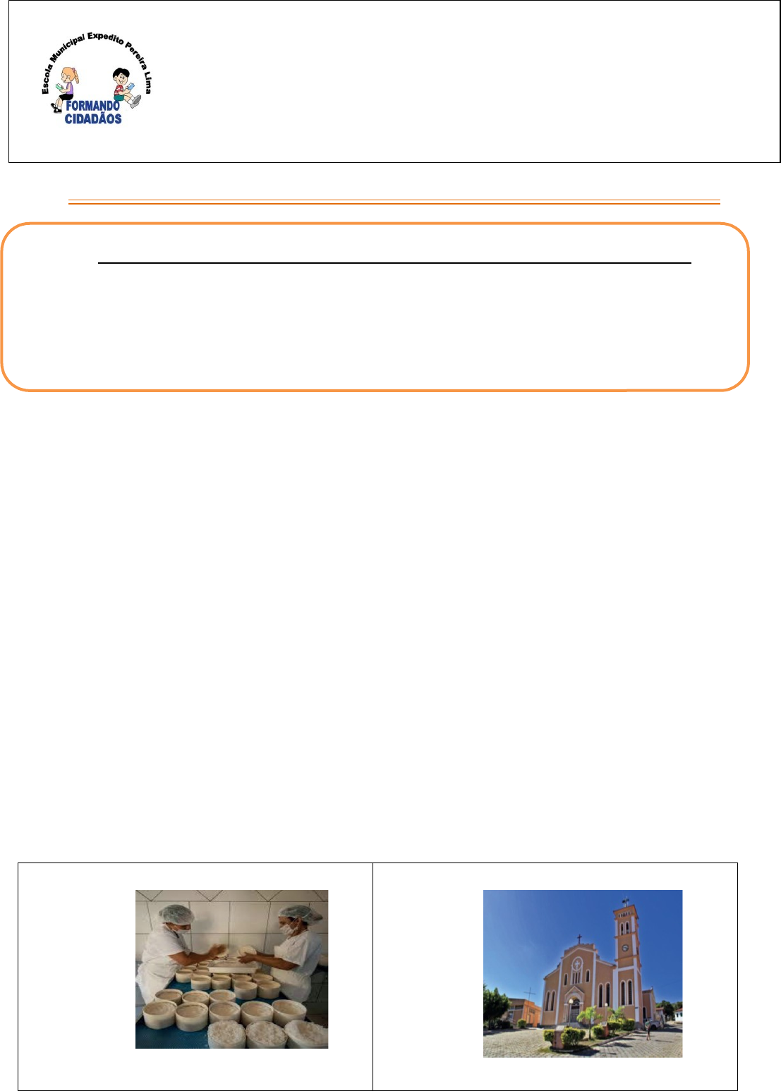 <p>Escola Municipal "Expedito Pereira Lima "</p><p>Professora : Janaí Bayão Viana / Professora de Apoio: Edilene</p><p>Data : _____/____/____ Série : 5º Ano: C Valor : 10,0 Nota:</p><p>Nome: _____________________________________________________</p><p>Assinatura do Responsável: _____________________________________</p><p>Conteúdo Avaliado : Registros do espaço : Patrimônio</p><p>Avaliação de Ciências Humanas – 2º Bimestre</p><p>LEIA ATENTAMENTE AS INSTRUÇÕES ANTES DE FAZER A PROVA:</p><p>· Faça uma leitura da prova antes de iniciá-la, com bastante atenção;</p><p>· Dê respostas completas;</p><p>· A prova deve ser feita à lápis;</p><p>· Fica expressamente proibida a comunicação com os colegas ou troca de materiais.</p><p>1) Leia.</p><p>Podemos definir patrimônio como um bem cultural ou um conjunto de bens culturais, reconhecidos por sua importância para uma comunidade, para um povo e para toda humanidade</p><p>Existem dois tipos de patrimônio: material e imaterial.</p><p>O patrimônio material consiste em elementos tangíveis, como edifícios e objetos de arte, a cultura não material está associada a elementos abstratos como hábitos e rituais. Os objetos artísticos, roupas, obras de arte, edifícios e sítios arqueológicos são exemplos de patrimônio material, já que é algo concreto, tangível e palpável. Por outro lado, literatura, culinária, festas, danças e esportes são considerados como patrimônio imaterial.</p><p>2) Identifique as imagens como patrimônio material(M) ou patrimônio imaterial (I). (2,0 ) :</p><p>( )</p><p>Queijo de Araxá- Sacola brasileira.</p><p>Fonte: QUEIJO de Araxá. Sacola Brasileira. [s. l.], 2022.</p><p>( )</p><p>A igreja Matriz de São José está localizada na Praça Frei Egídio S/N - Centro de Caraí.</p><p>( )</p><p>Cantigas de roda.</p><p>Fonte: CANTIGAS de roda: a importância para uma criança.</p><p>Blog Leiturinha. 24 fev. 2017.</p><p>( )</p><p>IPHAN reconhece Teatro de bonecos do</p><p>Nordeste como patrimônio cultural imaterial-</p><p>Editora Cidade Nova.</p><p>Fonte: MAMULENGO. Pinterest. [s. l.], 2022.</p><p>3) Sobre patrimônio cultural, assinale a alternativa FALSA: ( 1,2 )</p><p>a) A conservação da cultura de um povo depende da proteção de seus bens importantes.</p><p>b) A proteção da cultura material e imaterial depende exclusivamente dos governantes.</p><p>c) O patrimônio histórico é um legado deixado pelos mais velhos para as novas gerações.</p><p>d) Nem todo imóvel ou tradição pode ser considerado (a) um patrimônio histórico cultura</p><p>4) Leia.</p><p>O modo de produzir o queijo artesanal nas regiões da Serra da Canastra, do Salitre e do Serro, em Minas Gerais, foi considerado recentemente patrimônio imaterial. Além de uma fonte de renda para várias famílias rurais, o “queijo mineiro” é um forte elemento cultural do estado de Minas Gerais. Seu valor não está apenas em seu delicioso sabor, mas na sua técnica de fabricação, passada de geração em geração, há mais de trezentos anos. Seu processo artesanal, ao contrário da maior parte dos queijos comercializados em padarias e supermercados convencionais, é lento e traz histórias de muitos e muitos anos atrás. ( 1,2 )</p><p>Marque a alternativa correta : O queijo artesanal de Minas Gerais é um patrimônio imaterial, pois :</p><p>(A) mantém os hábitos alimentares do povo mineiro inalterados.</p><p>(B) possui o melhor sabor entre os queijos produzidos no Brasil.</p><p>(C) é fabricado com base em um saber tradicional, passado de geração em geração.</p><p>5) Leia os textos do quadro a seguir. ( 1,2 )</p><p>1. Feijão tropeiro</p><p>Era uma refeição típica dos tropeiros, homens que cruzaram o Brasil entre os séculos XVII e XIX. Essa refeição era feita com feijão, farinha, couve e muita carne salgada de porco. Até hoje essa refeição faz parte da tradição cultural brasileira.</p><p>2. Pizza napolitana</p><p>Uma receita conhecida no mundo inteiro, que remonta às tradições do século XVI. Feita de farinha de trigo, tomate, azeite, muçarela e manjericão, foi considerada patrimônio imaterial da humanidade pela Unesco em 2017.</p><p>3. Sushi</p><p>Uma técnica milenar japonesa de corte de peixe cru e arroz típico do Japão. Foi trazido para o Brasil pelos imigrantes japoneses e remonta às tradições daquele país asiático.</p><p>4. Acarajé</p><p>É um bolinho originado na África, feito com massa de feijão-fradinho e frito no azeite de dendê. O acarajé foi reelaborado no Brasil pelos escravizados e hoje é considerado patrimônio imaterial da Bahia.</p><p>A culinária de um povo é um forte elemento cultural. Em alguns pratos típicos encontramos muitas histórias. Quais pratos típicos apresentados acima são considerados patrimônios imateriais brasileiros?</p><p>(A) 1, 2, 3 e 4. (B) 1, 2 e 4. (C) 4. (D) 2 e 3.</p><p>6) Observe a imagem a seguir : ( 1,2 )</p><p>Secom/Governo do Estado da Bahia</p><p>Estátua da oficial Maria Quitéria de Jesus</p><p>Medeiros, em Salvador, Bahia. Foto de 2011.</p><p>A foto ao lado é do monumento em homenagem a Maria Quitéria, na Bahia. Ela lutou na Guerra de Independência do Brasil. A soldado Medeiros, como ficou conhecida, foi condecorada em 1823 por sua bravura e coragem durante a guerra.</p><p>Selecione a opção correta sobre esse monumento.</p><p>(A) Ele representa um episódio menor da história brasileira, por isso é pouco importante.</p><p>(B) É um monumento importante, já que ressalta a participação de mulheres nos grandes acontecimentos da história brasileira.</p><p>(C) Como todo tipo de monumento, ele não é um elemento importante para a memória de um povo.</p><p>7) Observe a imagem a seguir : ( 1,2 )</p><p>Jean-Baptiste Debret/Coleção particular</p><p>Detalhe da pintura Vista do Paço Imperial no Rio de Janeiro, produzida por volta de 1830 pelo artista francês Jean-Baptiste Debret.</p><p>O Paço Imperial, construído no século X
