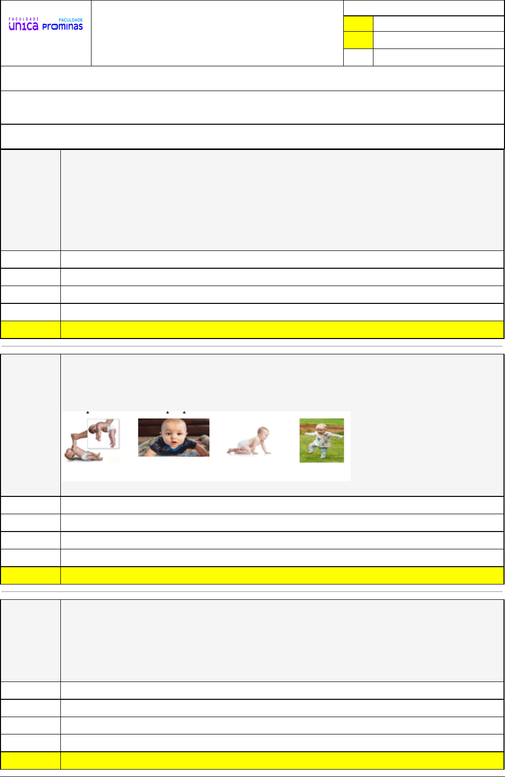 <p>Pincel Atômico - 25/08/2024 20:07:42 1/3</p><p>ADOLFO CARLOS</p><p>FIGUEIRA</p><p>Exercício Caminho do Conhecimento - Etapa 6 (22619)</p><p>Atividade finalizada em 25/08/2024 20:07:06 (1558744 / 1)</p><p>LEGENDA</p><p>Resposta correta na questão</p><p># Resposta correta - Questão Anulada</p><p>X Resposta selecionada pelo Aluno</p><p>Disciplina:</p><p>JOGOS E BRINCADEIRAS [941646] - Avaliação com 8 questões, com o peso total de 1,67 pontos [capítulos - 3]</p><p>Turma:</p><p>Segunda Graduação: Segunda Graduação 6 meses - Licenciatura em Educação Física - Grupo: FPD-OUTUBRO/2023 - SGegu0A101023</p><p>[102301]</p><p>Aluno(a):</p><p>91517725 - ADOLFO CARLOS FIGUEIRA - Respondeu 8 questões corretas, obtendo um total de 1,67 pontos como nota</p><p>[359744_149213]</p><p>Questão</p><p>001</p><p>O professor ao dar sequência a um programa de exercícios, solicita que seus alunos</p><p>entre 4 e 8 anos, realizem a posição de vela, explicando que devem se deitar sobre</p><p>o colchonete em decúbito dorsal e elevar suas membro inferiores para cima,</p><p>também, o glúteo e parte do tronco, sustentando a posição com a ajudadas mãos</p><p>apoiadas nas costas. Solicita que mantenham a posição por 10 segundos. Este</p><p>exercício busca privilegiar quais aspectos motores?</p><p>Marque a alterativa correta.</p><p>Coordenação motora global e coordenação motora fina.</p><p>Esquema corporal e lateralidade.</p><p>Esquema corporal e coordenação motora global.</p><p>Estrutura espaço temporal e equilíbrio.</p><p>X Equilíbrio e tonicidade.</p><p>[359744_147920]</p><p>Questão</p><p>002</p><p>O controle postural ocorre como uma sequência, é percebido no seu início quando o</p><p>bebê mantém suas mãos fechadas, desenvolvendo-se para outros estágios,</p><p>passando do engatinhar para a postura ortostática. Essa dinâmica é conhecida por</p><p>Thompson (2020) como ______.</p><p>Marque a alternativa que preenche corretamente a lacuna.</p><p>Habilidade motora.</p><p>Coordenação postural.</p><p>Controle postural.</p><p>Controle motor.</p><p>X Flutuação de tônus.</p><p>[359744_149212]</p><p>Questão</p><p>003</p><p>O professor ao solicitar que um grupo de crianças de idade entre 3 e 6 anos montem</p><p>um jogo de quebra-cabeça com a imagem do corpo humano, busca desenvolver a</p><p>noção de corpo inteiro e suas partes. Neste sentido, qual aspecto motor é</p><p>privilegiado?</p><p>Marque a alterativa correta.</p><p>Equilíbrio.</p><p>Lateralidade.</p><p>Coordenação motora fina.</p><p>Estruturação espaço temporal.</p><p>X Esquema corporal.</p><p>Pincel Atômico - 25/08/2024 20:07:42 2/3</p><p>[359744_147914]</p><p>Questão</p><p>004</p><p>Luria apresenta o mapeamento do cérebro, dividindo-o em três unidades funcionais,</p><p>onde são relacionadas diretamente aos aspectos psicomotores, onde a primeira</p><p>relaciona-se à condição de vigilância, de alerta e dos estados mentais; a segunda</p><p>compromete-se com a recepção, análise e armazenamento da informação; a terceira</p><p>relaciona-se com a organização da atividade consciente e a sua programação,</p><p>regulação e verificação da atividade psicomotora, (FONSECA, 2012).</p><p>Dadas as unidades funcionais de Luria, marque a opção que corresponde</p><p>corretamente as colunas:</p><p>Coluna 1</p><p>(1) Primeira</p><p>(2) Segunda</p><p>(3) Terceira</p><p>Coluna 2</p><p>( ) Esquema corporal.</p><p>( ) Tonicidade.</p><p>( ) Coordenação motora.</p><p>( ) Lateralidade.</p><p>( ) Equilíbrio.</p><p>3, 1, 2, 2, 1.</p><p>2, 1, 3, 2, 2.</p><p>X 2, 1, 3, 2,1 .</p><p>2, 1, 3, 2, 2.</p><p>1, 3, 2, 2, 1.</p><p>[359744_149211]</p><p>Questão</p><p>005</p><p>As crianças devem ficar em um determinado ponto e um adulto fica a frente deles,</p><p>mantendo certa distância. Quando o adulto virar de costas, as crianças devem correr</p><p>em direção à ele, porém quando ele virar de frente as crianças devem parar</p><p>imediatamente.</p><p>Sabemos que as funções e habilidades dos elementos motores trabalham de forma</p><p>integrada, para a harmonização do movimento corporal, entretanto, a brincadeira</p><p>descrita apresenta como objetivo central quais aspectos motores?</p><p>X Estruturação espaço temporal – equilíbrio.</p><p>Tonicidade - coordenação motora global.</p><p>Lateralidade - estruturação espaço temporal.</p><p>Coordenação motora global – equilíbrio.</p><p>Coordenação motora global – lateralidade.</p><p>[359744_149206]</p><p>Questão</p><p>006</p><p>Os aspectos psicomotores foram categorizados em unidade funcionais, sendo</p><p>regiões do cérebro responsáveis por determinadas funções.</p><p>De acordo com a afirmativa, marque a opção que se relaciona à 1ª, 2ª e 3ª unidades</p><p>funcionais respectivamente:</p><p>estrutura espaço temporal, esquema corporal, tonicidade.</p><p>X equilíbrio, esquema corporal, coordenação motora global.</p><p>equilíbrio, esquema corporal, lateralidade.</p><p>tonicidade, coordenação motora fina, equilíbrio.</p><p>coordenação motora global, lateralidade, tonicidade.</p><p>Pincel Atômico - 25/08/2024 20:07:42 3/3</p><p>[359744_147928]</p><p>Questão</p><p>007</p><p>(Professor de Educação Física, Prefeitura Municipal de Monteiro, PB/CONPASS,</p><p>2017). Habilidade são ações complexas e intencionais envolvendo toda uma cadeia</p><p>de mecanismos sensório, central e motor que, através do processo de</p><p>aprendizagem, tornaram-se organizadas e coordenadas de tal forma a alcançarem</p><p>objetivos predeterminados com máxima certeza, e classificam-se a partir das</p><p>características da tarefa. Sendo assim, marque a alternativa que corresponde à</p><p>habilidade classificada de acordo com a precisão do movimento, que tem como</p><p>particularidade envolver grandes grupos musculares na sua execução.</p><p>Habilidades cognitivas.</p><p>Habilidades contínuas.</p><p>X Habilidades grossas.</p><p>Habilidades discr