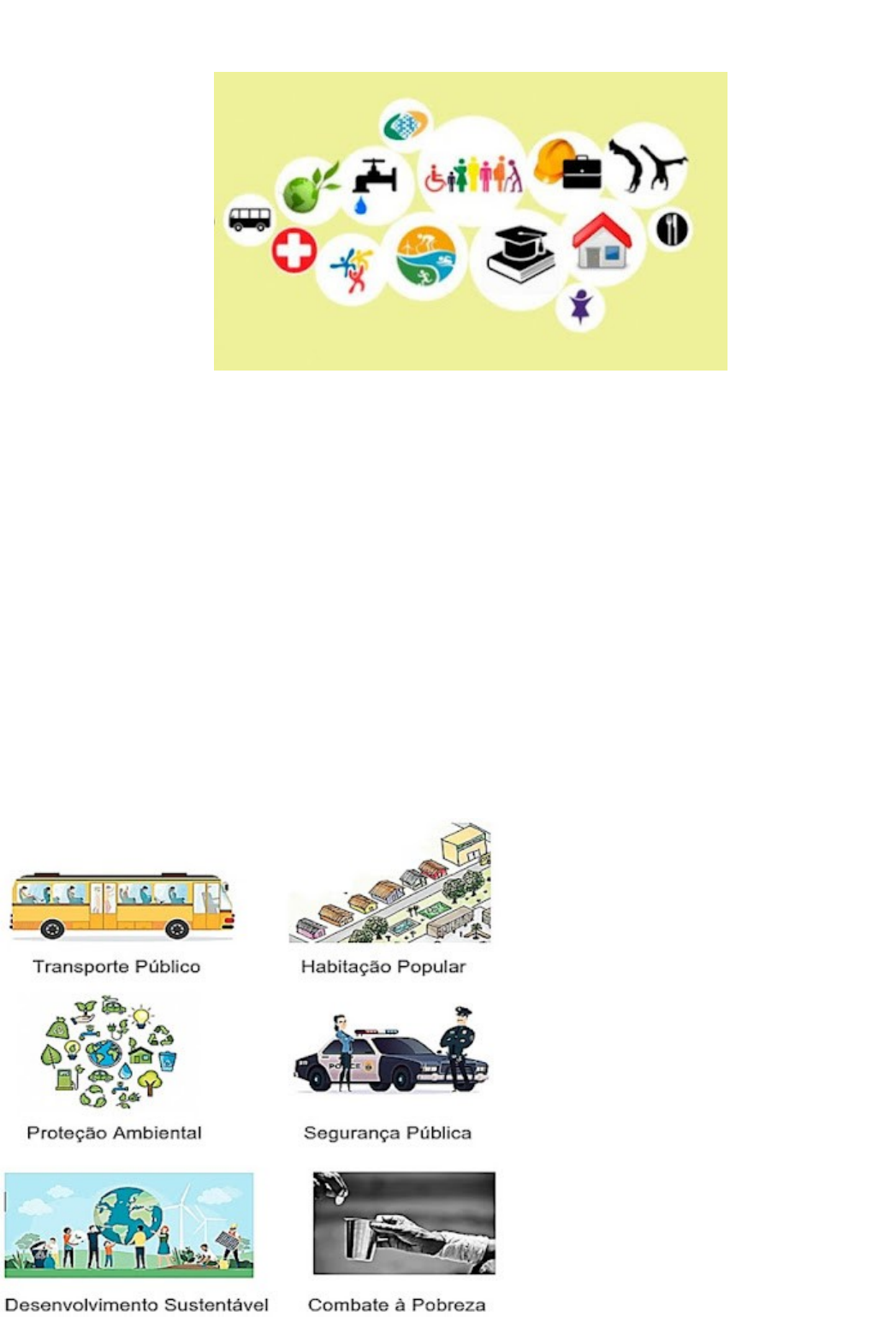 <p>POLÍTICAS PÚBLICAS</p><p>As políticas públicas são conjuntos de programas, ações e decisões tomados pelos governos (nacionais, estaduais ou municipais) com a participação, direta ou indireta, de entes públicos ou privados que visam assegurar determinado direito de cidadania para vários grupos da sociedade ou para determinado segmento social, cultural, étnico ou econômico. Ou seja, correspondem a direitos assegurados na Constituição.</p><p>Um programa da Prefeitura que esteja beneficiando seu bairro, por exemplo, é uma política pública. A educação, a saúde, o meio ambiente e a água são direitos universais, assim, para assegurá-los e promovê-los estão constituídas pela Constituição Federal as políticas públicas de educação e saúde, por exemplo.</p><p>O conceito de políticas públicas pode possuir dois sentidos diferentes. No sentido político, encara-se a política pública como um processo de decisão, em que há naturalmente conflitos de interesses. Por meio das políticas públicas, o governo decide o que fazer ou não fazer. O segundo sentido se dá do ponto de vista administrativo: as políticas públicas são um conjunto de projetos, programas e atividades realizadas pelo governo.</p><p>Exemplos de políticas públicas:</p><p>Uma política pública pode tanto ser parte de uma política de Estado ou uma política de governo. Vale a pena entender essa diferença: uma política de Estado é toda política que independente do governo e do governante deve ser realizada porque é amparada pela constituição.</p><p>Já uma política de governo pode depender da alternância de poder. Cada governo tem seus projetos, que por sua vez se transformam em políticas públicas.</p><p>Como são planejadas e executadas as políticas públicas?</p><p>As políticas públicas são planejadas em um processo que inclui formulação, implementação, monitoramento e avaliação, e revisão. Na etapa de formulação, são identificados os problemas e estabelecidos os objetivos da política. Na implementação, são alocados recursos e definidas as instituições responsáveis. O monitoramento e avaliação permitem acompanhar o progresso e fazer ajustes, enquanto a revisão busca aprimorar as políticas. A participação da sociedade civil é crucial. O processo visa atender às necessidades da população e melhorar a eficácia das políticas públicas ao longo do tempo.</p><p>Refletindo</p><p>Portanto, as políticas públicas desempenham um papel fundamental na vida dos cidadãos, pois têm o objetivo de atender às necessidades e promover o bem-estar da população. Elas são instrumentos que permitem a implementação de ações e programas que visam melhorar diversos aspectos da sociedade, como saúde, educação, segurança, meio ambiente e desenvolvimento econômico.</p><p>ATIVIDADE DE FIXAÇÃO</p><p>1. O que são políticas públicas?</p><p>a) Programas de entretenimento promovidos pelo governo.</p><p>b) Conjuntos de programas, ações e decisões tomados pelos governos com o objetivo de assegurar direitos de cidadania.</p><p>c) Empresas estatais responsáveis pela oferta de serviços públicos.</p><p>d) Organizações não governamentais que atuam em prol do meio ambiente.</p><p>2. Quais são os dois sentidos do conceito de políticas públicas mencionados no texto?</p><p>a) Social e cultural.</p><p>b) Político e administrativo.</p><p>c) Econômico e tecnológico.</p><p>d) Local e global.</p><p>3. As políticas públicas de saúde no Brasil são voltadas para garantir o acesso universal, integral e igualitário aos serviços de saúde para toda a população. Essas políticas são implementadas pelo Sistema Único de Saúde (SUS) e visam promover a prevenção de doenças, a promoção da saúde, o tratamento de enfermidades e a reabilitação dos indivíduos. Além disso, buscam assegurar a participação da comunidade, a gestão participativa, a equidade no atendimento e a qualidade dos serviços de saúde. Observe a charge a seguir e responda.</p><p>Em sua opinião, qual é a crítica que a charge faz?</p><p>_______________________________</p><p>4. Qual a importância das políticas públicas?</p><p>_______________________________</p><p>5. Apresente exemplos de políticas públicas mencionadas no texto. Os exemplos também podem ser representados através de desenhos.</p><p>6. Qual é a diferença entre uma política de Estado e uma política de governo?</p><p>Estado:</p><p>_______________________________</p><p>Governo:</p><p>_______________________________</p><p>7. Observe a imagem para responder à questão.</p><p>As políticas públicas desempenham um papel fundamental no combate à pobreza. Fontes do IBGE apontam que no ano de 2017, O país tinha 54,8 milhões de pessoas que viviam com menos de R$ 406 por mês em 2017, dois milhões a mais que em 2016. Isso significa que a proporção da população em situação de pobreza subiu de 25,7% para 26,5%, de acordo com a Síntese de Indicadores Sociais, divulgada hoje pelo IBGE.</p><p>Que caminhos podem contribuir para a redução da pobreza? Você acredita que seria necessário mais investimento em políticas públicas voltadas para esta problemática?</p><p>_______________________________</p><p>8. Qual é o objetivo principal das políticas públicas?</p><p>a) Aumentar a carga tributária sobre a população.</p><p>b) Beneficiar apenas determinados grupos sociais.</p><p>c) Atender às necessidades e promover o bem-estar da população.</p><p>d) Aumentar o poder dos governos locais.</p><p>9. Como as políticas públicas podem contribuir para o bem-estar da população?</p><p>_______________________________</p><p>10. Qual é a importância da participação da sociedade civil no processo de elaboração das políticas públicas?</p><p>a) Para garantir a supremacia do governo nas decisões.</p><p>b) Para promover o poder das empresas privadas na sociedade.</p><p>c) Para considerar os interesses e necessidad