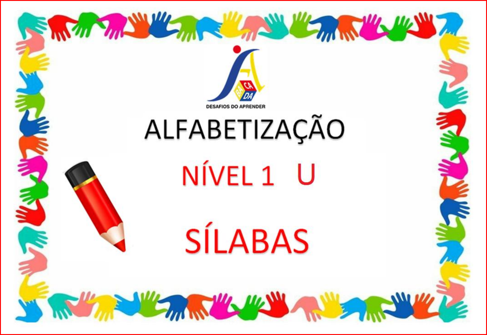 <p>UVA</p><p>U - U - U - U - U - U - U - U - U - U</p><p>U -</p><p>U -</p><p>CONTORNE A LETRA U.</p><p>A E I O U I E A O U</p><p>1</p><p>BULE</p><p>BU - BU - BU - BU - BU - BU - BU</p><p>BU -</p><p>BU -</p><p>CONTORNE A SÍLABA BU.</p><p>BA BE BI BO BU BI BO</p><p>2</p><p>CURUPIRA</p><p>CU - CU - CU - CU - CU - CU - CU</p><p>CU -</p><p>CU -</p><p>CONTORNE A SÍLABA CU.</p><p>CA CE CI CO CU CO CE</p><p>3</p><p>DUENDE</p><p>DU - DU - DU - DU - DU - DU - DU</p><p>DU -</p><p>DU -</p><p>CONTORNE A SÍLABA DU.</p><p>DA DE DI DO DU DO DU</p><p>5 4</p><p>FUNIL</p><p>FU - FU - FU - FU - FU - FU - FU</p><p>FU -</p><p>FU -</p><p>CONTORNE A SÍLABA FU.</p><p>FA FE FI FO FU FO FI</p><p>5 5</p><p>5</p><p>GUARDA-CHUVA</p><p>GU - GU - GU - GU - GU - GU - GU</p><p>GU -</p><p>GU -</p><p>CONTORNE A SÍLABA GU.</p><p>GA GE GI GO GU GA</p><p>5 6</p><p>JUIZ</p><p>JU - JU - JU - JU - JU - JU - JU</p><p>JU -</p><p>JU -</p><p>CONTORNE A SÍLABA JU.</p><p>JA JE JI JO JU JA JU JO</p><p>7</p><p>8</p><p>LUA</p><p>LU - LU - LU - LU - LU - LU - LU</p><p>LU -</p><p>LU -</p><p>CONTORNE A SÍLABA LU.</p><p>LA LE LI LO LU LA LI</p><p>5 8</p><p>MULHER</p><p>MU - MU - MU - MU - MU - MU</p><p>MU -</p><p>MU -</p><p>CONTORNE A SÍLABA MU.</p><p>MA ME MI MO MU MI</p><p>5 9</p><p>9</p><p>NUVEM</p><p>NU - NU - NU - NU - NU - NU - NU</p><p>NU -</p><p>NU -</p><p>CONTORNE A SÍLABA NU.</p><p>NA NE NI NO NU NO</p><p>5 10</p><p>PUDIM</p><p>PU - PU - PU - PU - PU - PU - PU</p><p>PU -</p><p>PU -</p><p>CONTORNE A SÍLABA PU.</p><p>PA PE PI PO PU PO</p><p>5 11</p><p>RUA</p><p>RU - RU - RU - RU - RU - RU - RU</p><p>RU -</p><p>RU -</p><p>CONTORNE A SÍLABA RU.</p><p>RA RE RI RO RU RO</p><p>5 14 5 12</p><p>SUCO</p><p>SU - SU - SU - SU - SU - SU - SU</p><p>SU -</p><p>SU -</p><p>CONTORNE A SÍLABA SU.</p><p>SA SE SI SO SU SA</p><p>5 13</p><p>TUBARÃO</p><p>TU - TU - TU - TU - TU - TU - TU</p><p>TU -</p><p>TU -</p><p>CONTORNE A SÍLABA TU.</p><p>TA TE TI TO TU TA</p><p>5 16 5 14</p><p>VULCÃO</p><p>VU - VU - VU - VU - VU - VU - VU</p><p>VU -</p><p>VU -</p><p>CONTORNE A SÍLABA VU.</p><p>VA VE VI VO VU VO</p><p>5 15</p><p>XUXA</p><p>XU - XU - XU - XU - XU - XU - XU</p><p>XU -</p><p>XU -</p><p>CONTORNE A SÍLABA XU.</p><p>XA XE XI XO XU XA</p><p>5 16</p><p>ZUZU</p><p>ZU - ZU - ZU - ZU - ZU - ZU - ZU</p><p>ZU -</p><p>ZU -</p><p>CONTORNE A SÍLABA ZU.</p><p>ZA ZE ZI ZO ZU ZA</p><p>5 17</p><p>ESCREVA A SÍLABA INICIAL DOS DESENHOS.</p><p>18</p><p>LIGUE AS SÍLABAS ÁS PALAVRAS DE ACORDO COM A SÍLABA INICIAL.</p><p>BULE</p><p>TUBARÃO</p><p>JUIZ</p><p>FUNIL</p><p>MULHER</p><p>MU</p><p>TU</p><p>BU</p><p>JU</p><p>19</p><p>FU</p><p>LIGUE AS SÍLABAS ÁS PALAVRAS DE ACORDO COM A SÍLABA INICIAL.</p><p>NUVEM</p><p>SUCO</p><p>VULCÃO</p><p>LUA</p><p>XUXA</p><p>GUARDA-CHUVA</p><p>XU</p><p>GU</p><p>NU</p><p>SU</p><p>VU</p><p>LU</p><p>20</p><p>LIGUE AS SÍLABAS ÁS PALAVRAS DE ACORDO COM A SÍLABA INICIAL.</p><p>UVA</p><p>CURUPIRA</p><p>RUA</p><p>PUDIM</p><p>ZUZU</p><p>DUENDE</p><p>PU</p><p>XXZU</p><p>DU</p><p>U</p><p>RU</p><p>CU</p><p>21</p><p>LEIA AS SÍLABAS INICIAL DAS PALAVRAS.</p><p>UVA BULE CURUPIRA</p><p>DUENDE FUNIL GUARDA-CHUVA</p><p>JUIZ LUA MULHER</p><p>NUVEM PUDIM TUBARÃO</p><p>RUA SUCO ZUZU</p><p>VULCÃO XUXA</p><p>22</p><p>PINTE A SÍLABA INICIAL DA FIGURA.</p><p>MU SU</p><p>DU LU</p><p>BU VU</p><p>LU ZU</p><p>GU MU</p><p>PU RU</p><p>FU XU</p><p>TU CU</p><p>NU DU</p><p>23</p><p>PINTE A SÍLABA INICIAL DA FIGURA.</p><p>PU BU</p><p>LU CU</p><p>U MU</p><p>JU U</p><p>GU FU</p><p>RU JU</p><p>NU XU</p><p>JU VU</p><p>24</p><p>LEIA E COPIE AS SÍLABAS.</p><p>O BU CU DU FU GU JU LU MU</p><p>NU PU RU SU TU VU XU ZU</p><p>25</p><p>ESCREVA A SÍLABA INICIAL DOS DESENHOS.</p><p>26</p><p>ESCREVA A LETRA QUE FALTA PARA FORMAR A PALAVRA.</p><p>___UDIM</p><p>___UENDE</p><p>___ULE</p><p>___URUPIRA</p><p>___UCO</p><p>___UARDA</p><p>CHUVA</p><p>___UA</p><p>___UZU</p><p>27</p><p>ESCREVA A LETRA QUE FALTA PARA FORMAR A PALAVRA.</p><p>___UVEM</p><p>___UIZ</p><p>___UNIL</p><p>___ULHER</p><p>___UXA</p><p>___ULCÃO</p><p>___UA</p><p>___UBARÃO</p><p>28</p><p>ESCREVA AS SÍLABAS DO UBUCUDU QUE FALTAM NA FIGURA DA UVA.</p><p>29</p><p>30</p>
