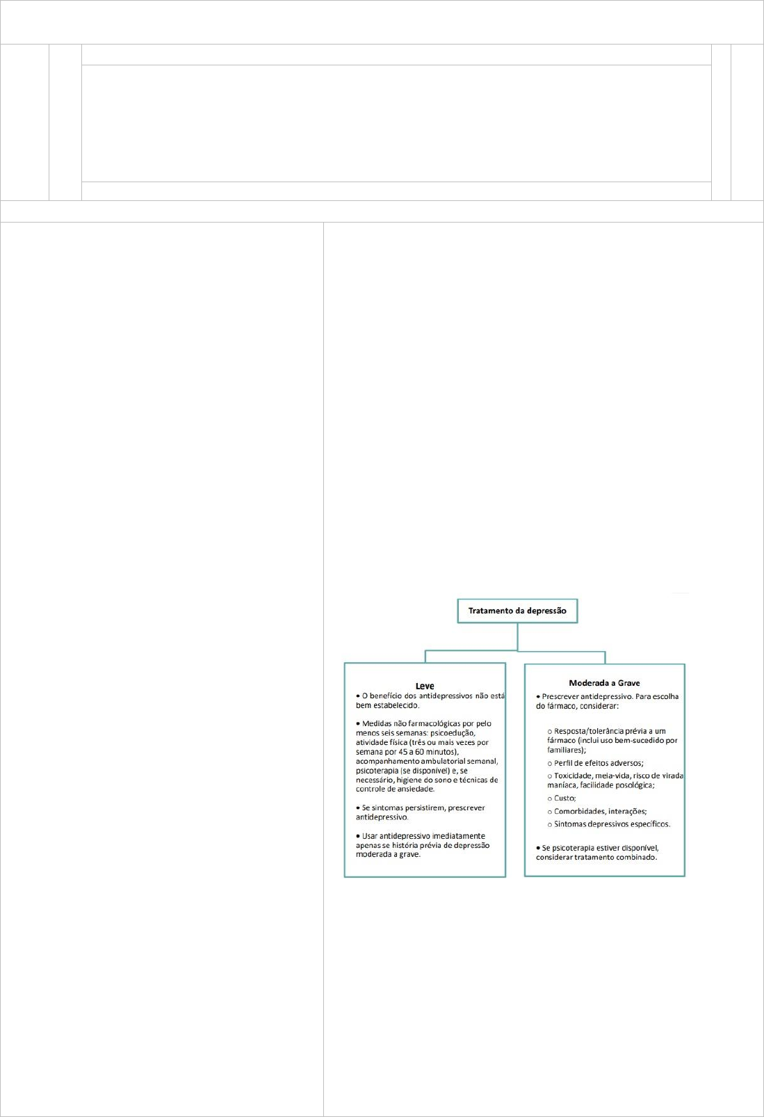 <p>FARMACOLOGIA</p><p>SNC: ANTIDEPRESSIVOS</p><p>Depressão: doença crônica doradoura e gera</p><p>incapacitação.</p><p>Estresse, doenças crônicas, traumas familiares.</p><p>Perspectiva biossocial: biológico, ambietal,</p><p>psicológico.</p><p>Teoria monoaminérgica</p><p>Baixa liberação de monoaminas,menor quantidade</p><p>de neurotransmissor na fenda sináptica.</p><p>• Noradrenalina (NA);</p><p>• Sertonina (5-HT);</p><p>• Dopamina (D)</p><p>Síntese de serotonina</p><p>Triptofano internalizado- ação da enzima triptofano</p><p>hidrocarboxilase- hidroxila posição s. aminoacido</p><p>descarboxilase(anel aromático aberto,</p><p>neurotransmissor é sintetizado e armazenado em</p><p>vesículas.</p><p>Na depressão ocorre baixa liberação de</p><p>neurotransmissores na fenda sinaptica, estimulo</p><p>neuronal é falho,portanto há pouca ativação de</p><p>receptores adrenérgicos,dopáminérgicos e</p><p>serotoninérgicos.</p><p>Hipótese imunológica:</p><p>Alteração da função dos NT por citocianas.</p><p>Anormalidades nos neurotransmissores</p><p>relacionam-se com diferentes sintomas:</p><p>• Dopamina:</p><p>• Redução da capacidade de sentir prazer;</p><p>• Redução da motivação;</p><p>• Redução da atenção;</p><p>• Apatia;</p><p>• Lentificação cognitiva.</p><p>Noradrenalina:</p><p>• Letargia;</p><p>• Redução do estado de alerta.</p><p>• Serotonina</p><p>• Sintomas obsessivo-compulsivo.</p><p>Teoria sobre alteração dos receptores:</p><p>• Número e sensibilidade dos receptores β-adrenérgicos</p><p>pós sinápticos centrais estão diminuídos com o uso</p><p>crônico de AD.</p><p>Classes de Antidepressivos:</p><p>1- Antidepressivos tricíclicos (ADT)</p><p>2- Inibidores da Monoaminoxidase (IMAO)</p><p>3- Inibidor seletivo da receptação da 5-HT (ISRS)</p><p>4- Inibidor seletivo da receptação da NA (ISRN)</p><p>5- Inibidor da receptação da 5-HT e NA (ISRSN)</p><p>6- Antidepressivo noradrenérgico e setoroninérgico</p><p>específico (ANASE)</p><p>7- Inibidor da receptação da NA e D (IRND)</p><p>3,4 e 5 segunda geração, sintetizados a partir dos de 1º</p><p>geração.</p><p>+ específicos, + seletivos e menos efeitos adversos</p><p>1- Antidepressivos triciclicos(ADT).</p><p>Não é específica e seletiva</p><p>Aminas secundárias – Noradrenalina</p><p>• Desipramina, Nortriptilina, Protriptilina.</p><p>Aminas Terciárias – Serotonina</p><p>• Imipramina, Amitriptilina, Doxepina,</p><p>Clomipramina</p><p>Muitos efeitos colaterais.</p><p>Contra indicado para cardíacos</p><p>Efeitos SNC:</p><p>• Hipomania ou mania;</p><p>• Psicose tóxica;</p><p>• Sonolência e Sedação</p><p>excessiva;</p><p>• Insônia e agitação;</p><p>• Tremores;</p><p>• Crises convulsivas e coma</p><p>Efeitos cardíacos:</p><p>• Taquicardia;</p><p>• Hipotensão ortostática;</p><p>• Distúrbio da condução;</p><p>• Morte súbita.</p><p>Dieta pobre em TIRAMINA</p><p>restringir o consumo de queijo, carnes defumadas</p><p>ou envelhecidas,</p><p>vinho, feijão e fígado.</p><p>Reação do queijo:</p><p>Ingestão de tiramina – libera NA e outras aminas</p><p>simpaticomiméticas – a MAO esta inibida e não as</p><p>metaboliza.</p><p>Aumenta o nível sanguíneo dessas aminas</p><p>perigosamente, pressão arterial se eleva, causando</p><p>ruptura de vasos – risco de AVC e infarto.</p><p>2- Inibidores da Monoamino-oxidase (IMAO):</p><p>Não é específica e seletiva</p><p>* Não é droga de escolha</p><p>Atualmente são raramente prescritos, apenas quando</p><p>os demais antidepressivos não atuam;</p><p>• Os IMAO podem interagir com uma imensa variedade</p><p>de drogas e alimentos;</p><p>• Embora considerados por muitos psiquiatras como as</p><p>drogas mais eficazes dentre todas as classes de</p><p>antidepressivos, os IMAO são pouco utilizados devido</p><p>a baixa tolerabilidade e segurança.</p><p>Mao tipo A – neurônio, coração, TGI.</p><p>Degrada feniletilamida.</p><p>Relacinada ao Parkison</p><p>Mao tipo B- Neurônios, estômago, instestino e fígado.</p><p>Degrada serotonina.</p><p>Bloqueio ideal seria apenas no neurônio, mas bloqueia também no</p><p>estomago e instestino , podendo gerar intoxicações no fígado</p><p>Efeitos adversos dos IMAOs irreversíveis:</p><p>•IMAO de primeira geração são irreversíveis, inespecíficos</p><p>quanto aos subtipos de MAO A e B – crise hipertensiva;</p><p>•Contra-indicado: hipertensos, AVC, ICC e icterícia hepática</p><p>• Insônia;</p><p>• Irritabilidade e agitação;</p><p>• Conversão de depressão inibida em ansiosa – risco</p><p>de suicídio;</p><p>• Conversão de depressão em hipomania ou mania</p><p>Boca seca</p><p>Alterações sexuais</p><p>Efeitos adversos dos IMAO reversíveis:</p><p>Moclobemida</p><p>• SNC:</p><p>• Insônia;</p><p>• Irritabilidade e agitação;</p><p>• Hipomania;</p><p>• Efeitos anticolinérgicos típicos do ADT</p><p>Interações medicamentosas</p><p>Opióides, antihipertensivos</p><p>3- Inibidores seletivos da receptação de</p><p>serotonina ou 5-HT (ISRS):</p><p>2º geração- seletivo</p><p>CITALOPRAM</p><p>EXCITALOPRAM</p><p>FLUOXETINA</p><p>SETRALINA</p><p>FLUVOXAMINA</p><p>VILAZODONA</p><p>PARAXETINA</p><p>Menos efeitos colaterais</p><p>Droga de escolha</p><p>Eficácia similar aos ADTs, porém são mais</p><p>seguros.</p><p>Antidepressivo e ansiolítico</p><p>Toc, transtorno por traumático, fobias, t. pânico, t.</p><p>alimentares, depressão pós parto.</p><p>Potência</p><p>Paroxetina-fluoxamina-sertralina-fluoxetina(menos</p><p>potente)</p><p>Efeitos adversos:</p><p>• Distúrbios no TGI – diarreia, náuseas e vômito.</p><p>• Anorexia e perda de apeZte;</p><p>• Insônia;</p><p>• Tremores (efeitos extrapiramidais);</p><p>• Agitação, pânico e cefaléia;</p><p>• Agressividade;</p><p>• Perda de libido e incapacidade para atingir o</p><p>orgasmo.</p><p>Sindrome serotoninérgica: excess
