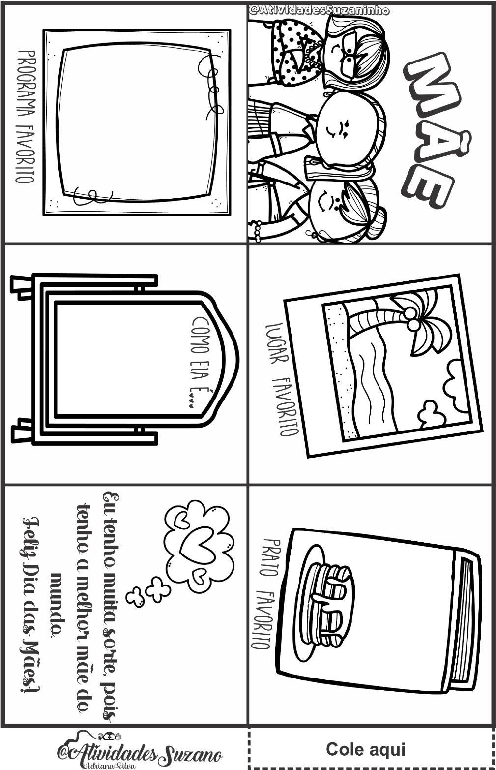 <p>LUGAR FAVORITO PRATO FAVORITO COMO ELA Eu tenho muita sorte, pois tenho a melhor mãe do mundo. PROGRAMA FAVORITO Feliz Dia das Mães!</p><p>ATIVIDADES PEDAGÓGICAS SUZANO Adriana https://www.loja.atividadespedagogicasuzano.com.br/ Siga-me no Instagram: Instagram - @suzanoadriana Todo material deste site é elaborado pela autora e é protegido pela lei dos direitos autorais, de n° 9.610/98 - proibindo cópias de imagens para outros sites, blogs ou redes sociais. É proibido sua reprodução em grupos ou venda do mesmo. Conteúdo exclusivo para apoio pedagógico em sala de aula, pelos professores, ou em casa pelos pais. Valorize o trabalho dos criadores de conteúdo! Indique o trabalho para os colegas. Obrigado! Adriana Silva. Contato: pedagogiasuzano@gmail.com Imagens utilizadas nas atividades: MERYTA CREATIVA Graphics WHIMSY Clips CLIPS rainbow Creating4the SPRINKLE CLASSROOM studio Clipart ?ARTYHEAD 2 GRAPHICS graphics JacFonts FROM THE POND m KariBolt children's illustrator Golden</p>