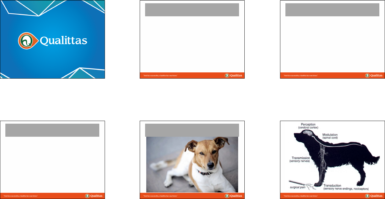 <p>ANALGESIA – INTRODUÇÃO</p><p>• O tratamento da dor e sua evolução</p><p>• Uma questão ética: bem estar animal</p><p>• Pets são parte do núcleo familiar</p><p>• A família se preocupa com conforto e segurança</p><p>• Mostrar preocupação com analgesia</p><p>• Conforto em casa e menor custo e estresse pro cliente</p><p>CONSEQUÊNCIAS DA DOR</p><p>• Acarreta consequências fisiológicas deletérias:</p><p>• Diminuição da ingestão de água e comida: perda de</p><p>peso, catabolismo proteico e desidratação</p><p>• Altera eixo neuroendócrino: aumento dos níveis de</p><p>aldosterona, cortisol e catecolaminas</p><p>• Variação no tônus vascular pulmonar, aumento de CO2,</p><p>atelectasias levando à hipoventilação e hipóxia</p><p>DEFINIÇÃO DA DOR</p><p>’’É uma experiência sensorial e/ou emocional</p><p>desagradável que é associada a lesões reais ou</p><p>potenciais.’’</p><p>Comitê de taxomomia da Associação Internacional para estudo</p><p>da dor, 1986.</p><p>FISIOPATOLOGIA DA DOR FISIOPATOLOGIA DA DOR</p><p>FISIOPATOLOGIA DA DOR</p><p>• Transdução - nociceptores periféricos</p><p>• Sensibilização periférica - mediadores químicos da dor</p><p>• transmissão - Vias ascendentes</p><p>• Modulação - centros supraespinhais e vias</p><p>descendentes</p><p>• Percepção</p><p>TRANSDUÇÃO E SENSIBILIZAÇÃO PERIFÉRICA</p><p>• A injúrica tecidual deflagra processo inflamatório que</p><p>altera o ambiente químico dos nociceptores</p><p>• Substâncias algogênicas (Hiperalgesia): H+, ATP,</p><p>adenosina que ativam as células vizinha como</p><p>macrófagos, linfócitos e monócitos, que por sua vez</p><p>libraram interleucinas, interferons, fator de</p><p>crescimento tumoral e fator de ativação plaquetária</p><p>• GLUTAMATO estimula inflamação e hiperalgesia</p><p>SENSIBILIZAÇÃO PERIFÉRICA</p><p>• BRADICININA leva a sensibilização intensa ao calor e</p><p>age de forma sinérgica com outros algogênicos</p><p>• Prostaglandinas G2, H2, I2 e a troboxana A são</p><p>metabólitos do ácido araquidônico - inflamação</p><p>sensibilização de nociceptores</p><p>SENSIBILIZAÇÃO PERIFÉRICA</p><p>• BRADICININA leva a sensibilização intensa ao calor e</p><p>age de forma sinérgica com outros algogênicos</p><p>• Prostaglandinas G2, H2, I2 e a troboxana A são</p><p>metabólitos do ácido araquidônico - inflamação</p><p>sensibilização de nociceptores</p><p>TRANSMISSÃO</p><p>• As fibras A-delta e C chegam à medula pela raiz dorsal</p><p>do nervo espinhal</p><p>• Neurotransmissores excitatótios: GLUTAMATO,</p><p>substância P e aspartato</p><p>• Neurotransmissores inibitórios: encefalina,</p><p>serotonina, GABA, glicina, acetilcolina, noradrenalina</p><p>- Antinocicepção descentende e a teroria da</p><p>comporta (MELZAK E WALL, 1960)</p><p>MODULAÇÃO</p><p>• Os neurotransmissores excitatórios atuam pricipalmente nos</p><p>receptores NMDA e AMPA, ao se ligar o GLUTAMATO ativa vias</p><p>ascendentes e transmitem a dor para centros espinhais</p><p>• Estes receptores estão envolvidos com o mecanismo de</p><p>SENSIBILIZAÇÃO CENTRAL.</p><p>• Estímulo persistente dos mesmos leva a HIPERAGESIA E</p><p>ALODINIA</p><p>• Substância P e o receptor NMDA - hipersensibilização</p><p>• GLUTAMATO e o receptor NMDA - ‘’WIND UP’’, dor crônica</p><p>PERCEPÇÃO E MODULAÇÃO</p><p>• Percepção ocorre em múltiplas áres do cérebro</p><p>• A precepção ocorre no córtex. Envolve diversos</p><p>centros e neurotransmissores. Alterações bioquímicas</p><p>e moleculares ocorrem: plasticidade do SNC</p><p>DIAGNÓSTICO</p><p>DIAGNÓSTICO DIAGNÓSTICO ESCALA ANALÓGICA VISUAL</p><p>• Simples e direta.</p><p>✓0 - ausência total de dor</p><p>✓10 - pior dor que pode ser experimentada</p><p>ESCALA DE ANÁLISE DESCRITIVA</p><p>Lacelles et al., 1994</p><p>•0 - analgesia completa, sem sinais de desconforto ou</p><p>sem resposta à pressão na ferida cirúrgica</p><p>•1 - Boa analgesia, sem sinais de desconforto à pressão</p><p>exercida na ferida cirúrgica</p><p>•2 - Moderada analgesia, com alguns sinais de</p><p>desconforto, evidentes quando há pressão na ferida</p><p>•3 - Com sinais óbvios de desconforto, piorando com</p><p>pressão na ferida</p><p>ESCALA DE ANÁLISE DESCRITIVA ESCADA DA DOR - OMS</p><p>ADJUVANTES</p><p>PERÍODO DE TRATAMENTO</p><p>• Dor leve: resolução em 24 - 48 horas</p><p>• Dor moderada: resolução de 2 a 3 dias</p><p>• Dor severa: resolução de 3 a 5 dias</p><p>• Outras forma de avaliar o tempo é pela localização:</p><p>membros, abdome e tórax</p><p>ANALGESIA PREEMPITIVA</p><p>ANALGESIA PREEMPTIVA</p><p>• Previne a dor</p><p>• Aumenta analgesia transoperatória diminuindo a</p><p>necessidade de anestésicos gerais</p><p>• Proporciona menores doses de analgésicos no pós</p><p>operatório e um período de tratamento mais curto</p><p>FÁRMACOS ANALGÉSICOS</p><p>• Anestésicos locais – atuam na transmissão</p><p>• Opióides – atuam na percepção e modulação</p><p>• Cetamina – bloqueio dos receptores NMDA, atuando</p><p>no manjo da dor aguda e crônica</p><p>• Agonistas alfa 2 adrenérgicos – atuam na modulação</p><p>e percepção</p><p>FÁRMACOS – INFUSÃO CONTÍNUA</p><p>• Lidocaína</p><p>• Opióides: morfina, fentanil</p><p>• Cetamina</p><p>• MILK</p><p>FÁRMACOS – INFUSÃO CONTÍNUA</p><p>• Maroptant</p><p>– 5 mg/kg EV seguido de 30 a 150 µg/kg/min</p><p>AINE’S</p><p>• Atuam na sensibilização periférica</p><p>• Bloqueio das prostaglandinas pela inibição das</p><p>ciclooxigenases (COX)</p><p>• Previne ou reduz WIND UP</p><p>• Deve ser utilizados em animais jovens saudáveis,</p><p>normotensos, normovolêmicos. Interromper nos</p><p>casos de evidências de úlcera gástrica e</p><p>comprometimento da função renal</p><p>AINE’S</p><p>• Carprofeno: uso em cães