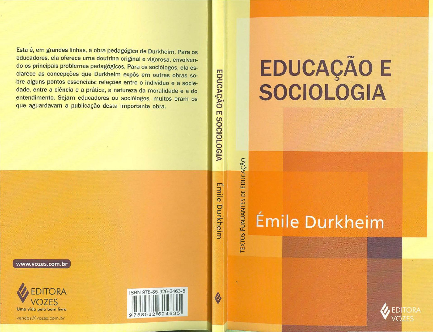 <p>Esta e, em grandes linhas, a obra pedag6gica de Durkheim. Para os</p><p>educadores, ela oferece uma doutrina original e vigorosa, envolven</p><p>do os principais problemas pedag6gicos. Para os soci610gos, ela es</p><p>clarece as concep~oes que Durkheim expos em outras obras so</p><p>bre alguns pontos essenciais: rela90es entre 0 indivfduo e a socie</p><p>dade, entre a ciencia e a pratica, a natureza da moralidade e a do</p><p>entendimento. Sejam educadores ou soci610gos, muitos eram os</p><p>que aguardavam a publica9ao desta importante obra.</p><p>www.vozes.com.br</p><p>IIiEDITORA</p><p>Y VOlES</p><p>Uma vida pelo born livro</p><p>vendos@vozes.com.br</p><p>m</p><p>0</p><p>C</p><p>C"></p><p>l></p><p>0(")</p><p>l>'</p><p>0</p><p>m</p><p>(f)</p><p>0</p><p>Q</p><p>0</p><p>5</p><p>Cl</p><p>l></p><p>m ,</p><p>3</p><p>II)</p><p>0</p><p>c:: ...,</p><p>'" :r-</p><p>II)</p><p>3</p><p>-EDUCACAO E</p><p>SOCIOLOGIA</p><p>0</p><p>'..: U-</p><p>..:</p><p>u</p><p>:::></p><p>e</p><p>UJ</p><p>w</p><p>0</p><p>'" w</p><p>I-</p><p>Z</p><p>C5 z</p><p>:::></p><p>LL.</p><p>'" ~</p><p>X</p><p>w</p><p>I-</p><p>Qual a relalfao entre Sociologia e</p><p>Educalfao? A oportuna edi~ao deste</p><p>Iivro esclarece a importante</p><p>contrlbullfao desta obra de Emile</p><p>Durkheim para 0 esclarecimento da</p><p>verdadelra natureza da educa~ao</p><p>como fato eminentemente social.</p><p>Para estabeiecer fronteiras com a</p><p>Biologia e com a Psicologia,</p><p>Durkheim pretende estudar as fatos</p><p>da vida moral mediante urna cil!ncia</p><p>positlva, a Ciencia da Moral. Por</p><p>discordar dos auto res socialistas e</p><p>por dlscordar da dialetica, a sua</p><p>proposta e a de concilia~ao entre</p><p>ciencia e moral; para ele, so</p><p>aparenternente contraditorias. Os</p><p>fatos morais sao fatos socia is,</p><p>passiveis de observa~ao, descrilfao e</p><p>classlficalfao, para se chegar as leis</p><p>gerais que os exp/iquem. Se a</p><p>liberdade implica nega~ao de uma lei</p><p>determinada pela sociedade, ela e</p><p>um obstaculo para a realiza~ao da</p><p>ciencia positiva, devendo ser negada.</p><p>Nesse contexto, a EducaC;ao</p><p>desempenha papel preponderante</p><p>por constltuir-se, tai como a moral,</p><p>um fato social. Sendo sua natureza</p><p>eminentemente social e repousando</p><p>sobre a base comum de fatos morais,</p><p>a Educalfao varia de sociedade para</p><p>sociedade, uma vez que cada uma</p><p>constitui a especificidade na qual se</p><p>forma, para seu uso, urn certo tipo</p><p>ideal de homem. Esse ideal e 0 e/xo</p><p>educativ~ mediante 0 qual a</p><p>sociedade prepara a crian~a</p><p>instaurando, pela educac;ao, as</p><p>condic;oes ideals de sua existencia. A</p><p>educactao e vista, entao, como forma</p><p>de civllizar 0 ser egoista e antlssocial</p><p>que exlste na crian~a. Atraves da</p><p>educac;ao da crianc;a, a sociedade</p><p>cria e reproduz as condi~oes de sua</p><p>propria existencia.</p><p>Franc/sea Eleodora Santos Severino</p><p>Unisantos</p><p>E OUCA<;:AO E SOC IOLOGIA</p><p>COLE<;AO 'rEXTOS F UNDANTES DE E OUCAGAO</p><p>Coorde'Jnd01~ Anttmio Joaquim Severino</p><p>- A mUlICo turbulenta - Es/udos sobre os retardame1JlOS</p><p>e OJ olloma/ins do desenvo/vimento motor emelita/</p><p>Henri Wallon</p><p>- A reprodufrio - Elemelllos para ullIa teoria do sistema de CflsitJo</p><p>Pierre Buurclieu e Jean-C laude Passeron</p><p>- 0 /wme", com um mundo estilha((J(/()</p><p>A R. Luria</p><p>Do a/o no pe1J.sametJlO - Ellsaio de psic%gia compara""</p><p>Henri Wallon</p><p>De 1lIogistro</p><p>Samo Agostinho</p><p>- E"periillda e r:duco{llo</p><p>John Dewey</p><p>- Psicogcllese e hist6ria das dindus</p><p>Jean Piagcc c Rolando Garcia</p><p>Educa{iio e Soci%gja</p><p>Emilc D urkheim</p><p>Edu(,'{t(.'(70 pam uma .waedode em trrtmjonna{iio</p><p>W. II. Kilpatrick</p><p>Dudos Internac ionais de Catalogu~ao na Publjcac;ao (eIIJ</p><p>)</p><p>(Camara Hrasileira do Livro. SP. Brasil)</p><p>Durkheim, Emile, 1858-1917.</p><p>Educa9uo c Socio logia / Emile Durkheim;</p><p>rradu930 de Stephania Matousek. - Petr6polis, RJ:</p><p>Vozes, 2011 - (Co\e9ao Textos F'undantes de Educa930).</p><p>Titu lo original: Educarion et sociulogie</p><p>ISBN 978-85-326-2463-5</p><p>1. Sociologia educacion3! r. T itu lo.</p><p>10-11968</p><p>indIces para cata logo Slstematlcu:</p><p>1. Sociulogia ambiental 306.43</p><p>CDD-306.43</p><p>EM ILE DURI<HEI M</p><p>EOUCAC:AO E SOC10LOG1A</p><p>Traduo;ao de Stephania Matousek</p><p>Ib EDITORA</p><p>Y VOlES</p><p>Petro polis</p><p>Direiws de publ ica~ao em lingua porrugllesa:</p><p>© 2011, Editora Vozes Ltda.</p><p>Rua Fre i L UIs, 100</p><p>25689-900 Perr6po li s, RJ</p><p>Internee http://w\vw.vozes.com.br</p><p>Brasil</p><p>Titulo ori ginal frances: EducatiON et soci%J!,ie</p><p>Todos os direitos reservados. Nenhuma parte desta ubr<l podera</p><p>ser rcpro<.iuzida Oll transmitida por qualq uer forma c/ou</p><p>quaisqller meios (eletronico ou mccanico, incluindu for.oc6pia</p><p>c grava~ao) ou arq uivada ern q ualquer siscema ou banco de dados</p><p>scm pcrmissao escrita da Ed itora.</p><p>Dirctor editorial</p><p>Frei Am6nio Moser</p><p>Editores</p><p>AJ ine dos Santos Carneiro</p><p>Jos6 Maria da Si lva</p><p>I .fd io Peretti</p><p>Marilac Loraine Oleniki</p><p>Sccretano executivo</p><p>10ao Batista Kreuch</p><p>Editortlp'io: Frci Andre Luiz da Rocha Henriq ues</p><p>Plvjeto gnffico: AG.SR Desenv. Gdfico</p><p>Capo: Maria foe rnanda de Novaes</p><p>ISBN 978-85-326-2463-5 (edi,ao brasileira)</p><p>ISBN 2- 13-055329-X (cdi,ao francesa)</p><p>Edicado con forme 0 novo acordo ortografico.</p><p>Esre livro foi composto e impresso pe la Editora Vozes L[da.</p><p>Rua Frci Luis, 100 - Petr6polis, RJ - llrasil - CEP 25689-900</p><p>Caixa PoStal 90023 - TeL (24) 2233-9000</p><p>Fax: (24) 22.11-4676</p><p>SUMA RlO</p><p>AjJrescl1tO(iio ria co/celio, 7</p><p>Antonio Joaqu im Severino</p><p>[f/trodup]o: A obra pedag6gica de DurNteim, 9</p><p>Prof. Paul Fallconnet</p><p>A educa~ilo, sua natureza e se