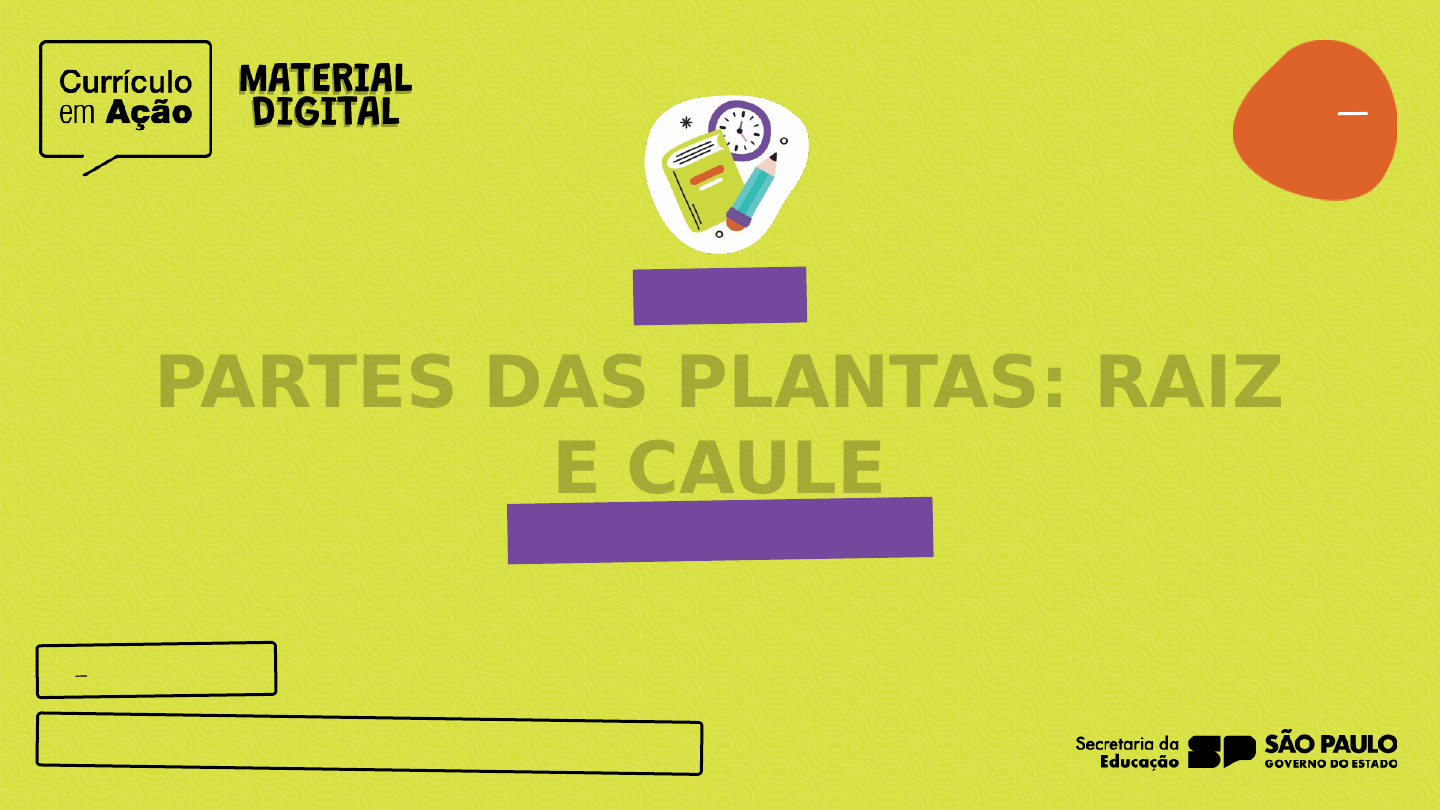 <p>3o BIMESTRE</p><p>ENSINO FUNDAMENTAL: ANOS INICIAIS</p><p>PARTES DAS PLANTAS: RAIZ E CAULE</p><p>CIÊNCIAS</p><p>AULA 2</p><p>2o</p><p>2024_AI_V1</p><p>ANO</p><p>CONHECER AS FUNÇÕES DA RAIZ E DO CAULE DE UMA PLANTA;</p><p>IDENTIFICAR A DIFERENÇA ENTRE O CAULE E A RAIZ;</p><p>CONHECER DIFERENTES TIPOS DE RAIZ E DE CAULE.</p><p>RAIZ E CAULE DAS PLANTAS.</p><p>CONTEÚDO</p><p>OBJETIVOS DE APRENDIZAGEM</p><p>2024_AI_V1</p><p>Habilidade: (EF02CI06) Identificar as principais partes de uma planta (raiz, caule, folhas, flores e frutos) e a função desempenhada por cada uma delas, e analisar as relações entre as plantas, o ambiente e os demais seres vivos.</p><p>Unidade temática: Vida e evolução.</p><p>Objeto do conhecimento: Seres vivos no ambiente.</p><p>NO NOSSO AMBIENTE, TEMOS ÁRVORES E PLANTAS DE DIFERENTES FORMATOS, TAMANHOS, CORES E FUNÇÕES.</p><p>VOCÊ JÁ PAROU PARA OBSERVÁ-LAS?</p><p>CONTINUA...</p><p>PARA COMEÇAR</p><p>2024_AI_V1</p><p>Referência de imagem: https://www.gettyimages.com.br/detail/foto/green-herbs-isolated-on-white-imagem-royalty-free/157602635?adppopup=true.</p><p>https://www.gettyimages.com.br/detail/foto/trees-collection-imagem-royalty-free/135180352?adppopup=true.</p><p>OBSERVE A PLANTA DA IMAGEM. CONVERSE COM SEU PROFESSOR E COM SEUS COLEGAS.</p><p>TODAS AS PARTES DA PLANTA SÃO IGUAIS?</p><p>SE VOCÊ RESPONDEU QUE AS PARTES DAS PLANTAS SÃO DIFERENTES, PARABÉNS!</p><p>VOCÊ SABE O NOME DESSAS PARTES E PARA QUE ELAS SERVEM?</p><p>VIREM E CONVERSEM</p><p>PARA COMEÇAR</p><p>2024_AI_V1</p><p>Sugestão de IMAGEM GETTY DO PACOTE FCAV:</p><p>https://www.gettyimages.com.br/detail/foto/young-oak-tree-imagem-royalty-free/176827447?phrase=planta%2Braiz</p><p>CONTINUA...</p><p>LUISA E JOÃO ESTÃO CONVERSANDO SOBRE AS PRINCIPAIS PARTES DE UMA PLANTA E OBSERVARAM QUE, GERALMENTE, ELAS TÊM RAIZ, CAULE E FOLHAS. ALGUMAS TÊM FLORES, OUTRAS NÃO. ELAS TAMBÉM PODEM TER CAULES MAIS RÍGIDOS E CRESCER NA VERTICAL OU SER RASTEIRAS E CRESCER NO CHÃO.</p><p>O QUE É?</p><p>2024_AI_V1</p><p>Referência de imagem: https://www.gettyimages.com.br/detail/ilustra%C3%A7%C3%A3o/boys-and-girls-set-ilustra%C3%A7%C3%A3o-royalty-free/1148806323?adppopup=true</p><p>CONTINUA...</p><p>VAMOS IDENTIFICAR CADA PARTE DA PLANTA E CONHECER SUAS FUNÇÕES?</p><p>VEJAMOS CADA UMA DELAS:</p><p>O QUE É?</p><p>2024_AI_V1</p><p>Sugestão de IMAGEM GETTY DO PACOTE FCAV:</p><p>https://www.gettyimages.com.br/detail/foto/young-oak-tree-imagem-royalty-free/176827447?phrase=planta%2Braiz</p><p>CONTINUA...</p><p>É A PARTE DA PLANTA QUE A FIXA NO SOLO, ABSORVENDO A ÁGUA E OS NUTRIENTES DO SOLO.</p><p>RAIZ</p><p>O QUE É?</p><p>2024_AI_V1</p><p>Sugestão de IMAGEM GETTY DO PACOTE FCAV:</p><p>https://www.gettyimages.com.br/detail/foto/vertical-shot-of-a-growing-bonsai-pine-tree-with-imagem-royalty-free/1439178632?phrase=planta%2Braiz</p><p>CONTINUA...</p><p>A FUNÇÃO DA RAIZ É ABSORVER ÁGUA E SAIS MINERAIS DO SOLO E FIXAR A PLANTA, ALÉM DE SERVIR PARA ARMAZENAR OS NUTRIENTES.</p><p>A FUNÇÃO DA RAIZ NAS PLANTAS</p><p>O QUE É?</p><p>2024_AI_V1</p><p>Sugestão de IMAGEM GETTY DO PACOTE FCAV:</p><p>https://www.gettyimages.com.br/detail/foto/vertical-shot-of-a-growing-bonsai-pine-tree-with-imagem-royalty-free/1439178632?phrase=planta%2Braiz</p><p>https://www.gettyimages.com.br/detail/foto/tree-isolated-nature-imagem-royalty-free/647523514</p><p>CONTINUA...</p><p>AS RAÍZES SÃO CLASSIFICADAS EM:</p><p>TERRESTRES: PLANTAS CUJAS RAÍZES SÃO SUBTERRÂNEAS.</p><p>AQUÁTICAS: PLANTAS CUJAS RAÍZES VIVEM NA SUPERFÍCIE DA ÁGUA OU SUBMERSAS.</p><p>AGUAPÉ</p><p>O QUE É?</p><p>2024_AI_V1</p><p>Sugestão de IMAGEM GETTY DO PACOTE FCAV:</p><p>https://www.gettyimages.com.br/detail/foto/river-with-fully-covered-water-hyacinth-or-imagem-royalty-free/1383514670?phrase=aguap%C3%A9</p><p>https://www.gettyimages.com.br/detail/foto/tree-isolated-nature-imagem-royalty-free/647523514</p><p>CONTINUA...</p><p>AÉREAS: PLANTAS CUJAS RAÍZES PODEM SE DESENVOLVER EM CIMA DE OUTRAS SUPERFÍCIES OU FORA DA TERRA.</p><p>ORQUÍDEA</p><p>O QUE É?</p><p>2024_AI_V1</p><p>Sugestão de IMAGEM GETTY DO PACOTE FCAV:</p><p>https://www.gettyimages.com.br/detail/foto/beautiful-orchid-in-pot-on-window-imagem-royalty-free/1169633118?phrase=ORQUIDEOA+AMARELA&adppopup=true</p><p>NOVA SUGESTÃO: https://www.gettyimages.com.br/detail/foto/white-and-pink-orchids-hanging-on-tree-branch-imagem-royalty-free/1713584708?phrase=orqu%C3%ADdeas+em+arvores&adppopup=true</p><p>CONTINUA...</p><p>RAÍZES COMESTÍVEIS</p><p>SÃO ALIMENTOS RICOS EM NUTRIENTES, VITAMINAS, MINERAIS E CARBOIDRATOS, QUE NASCEM DEBAIXO DA TERRA. ASSIM COMO OS TUBÉRCULOS E BULBOS, APRESENTAM BAIXO ÍNDICE GLICÊMICO. VEJAMOS ALGUNS EXEMPLOS:</p><p>O QUE É?</p><p>2024_AI_V1</p><p>Sugestão de IMAGEM GETTY DO PACOTE FCAV:</p><p>https://www.gettyimages.com.br/detail/foto/potatoes-in-soil-imagem-royalty-free/515711894</p><p>Referência de imagem: https://www.gettyimages.com.br/detail/foto/carrot-plant-in-soil-imagem-royalty-free/157684807?adppopup=true</p><p>https://www.gettyimages.com.br/detail/foto/beetroot-plant-growing-in-earth-cross-section-imagem-royalty-free/1444984066?phrase=beetroot%20growing%20in%20soil</p><p>CONTINUA...</p><p>SAIBA MAIS...</p><p>NOS MANGUEZAIS, AS RAÍZES QUE CRESCEM PARA CIMA SÃO CHAMADAS DE PNEUMATÓFOROS. ELAS TÊM VÁRIOS FUROS PARA CAPTURAR OS GASES DA ATMOSFERA, REALIZANDO A TROCA DE GASES, UMA VEZ QUE ESTE TIPO DE SOLO É POBRE EM OXIGÊNIO.</p><p>O QUE É?</p><p>2024_AI_V1</p><p>Sugestão de IMAGEM GETTY DO PACOTE FCAV:</p><p>https://www.gettyimages.com.br/detail/foto/mangroves-with-numerous-tangled-roots-above-the-imagem-royalty-free/1316101219?phrase=MANGUEZAL</p><p>Referência bibliográfica: https://chc.org.br/artigo/fedorento-e-encantador/ ACESSO EM 12/04/2023.</p><p>CONTINUA...</p><p>É RESPONSÁVEL PELA SUSTENTAÇÃO DAS FOLHAS E PELAS ESTRUTURAS DE REPRODUÇÃO, ALÉM DA CONDUÇÃO DE NUTRIENTES, ESTABELECENDO UM CONTATO ENTRE AS R