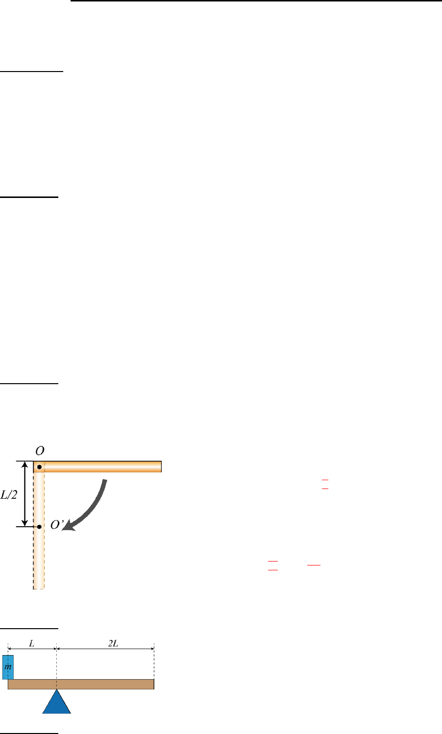 <p>FÍSICA do MOVIMENTO – Problemas Para Aprendizagem</p><p>Assunto: Rotação.</p><p>Problema 1</p><p>Uma roda, partindo do repouso, é acelerada de tal forma que sua velocidade angular aumenta</p><p>uniformemente para 180 rpm em 3 min. Depois de girar com esta velocidade por algum tempo, a roda é</p><p>freada com desaceleração uniforme, levando 4 min para parar. O número total de rotações é 1080. Quanto</p><p>tempo, ao todo, a roda ficou girando?</p><p>Resposta: 9,5 min.</p><p>Problema 2</p><p>Um astronauta está sendo testado em uma centrífuga. A centrífuga tem um raio de 10 m e, a partir do</p><p>repouso, gira de acordo com a equação 𝜃(𝑡) = 0,3𝑡2, onde t está em segundos e θ em radianos. Quando</p><p>t=5,0 s, quais são os módulos:</p><p>a) da velocidade angular. Resposta: 3,0 rad/s.</p><p>b) da velocidade linear. Resposta: 30 m/s.</p><p>c) da aceleração angular. Resposta: 0,6 rad/s2.</p><p>c) da aceleração tangencial. Resposta: 6,0 m/s2.</p><p>d) da aceleração radial do astronauta. Resposta: 90 m/s2.</p><p>Problema 3</p><p>Uma barra uniforme de comprimento L e massa M pode girar livremente através de um pino que está</p><p>localizado em uma de suas extremidades, como mostrado na figura abaixo. A barra está inicialmente na</p><p>posição horizontal quando é solta.</p><p>Problema 4</p><p>Problema 5</p><p>a) Qua é a sua velocidade angular quando ela atingir a sua posição</p><p>mais baixa? Resposta: 𝜔 = √</p><p>3𝑔</p><p>𝐿</p><p>.</p><p>b) Determine a velocidade linear no centro de massa e a velocidade</p><p>linear do ponto mais baixo da barra quando ela se encontra na</p><p>posição vertical. Despreze todos os atritos.</p><p>Resposta: 𝑣𝑐𝑚 = √</p><p>3𝑔𝐿</p><p>4</p><p>e 𝑣 = √3𝑔𝐿.</p><p>Qual deve se a massa da tábua no balanço da figura abaixo para que</p><p>o sistema fique em equilíbrio? Neste caso qual a força exercida pelo</p><p>apoio no balanço?</p><p>Resposta: 𝑀 = 2𝑚 e 𝑁 = 3𝑚𝑔.</p><p>Resposta: 0,140 N.</p><p>Problema 6</p><p>Uma chaminé alta, de forma cilíndrica, cai se houver uma ruptura na sua base. Tratando a chaminé como</p><p>um bastão fino de altura h, e usando θ como sendo o ângulo que a chaminé ela faz com a vertical num</p><p>instante qualquer, expresse, em função deste ângulo:</p><p>a) A velocidade angular da chaminé. Resposta: 𝜔 = √</p><p>3𝑔</p><p>ℎ</p><p>(1 − cos𝜃).</p><p>b) A aceleração radial do topo da chaminé. Resposta: 𝑎𝑟 = 3𝑔(1 − cos𝜃).</p><p>c) A aceleração tangencial do topo. Resposta: 𝑎𝑡 =</p><p>3</p><p>2</p><p>𝑔 sen𝜃.</p><p>d) Em que ângulo a aceleração tangencial é igual a g? Resposta: 41,8º.</p><p>Problema 7</p><p>A figura mostra um disco uniforme que pode girar em torno do</p><p>centro, como um carrossel. O disco tem um raio de 2,00 cm e uma</p><p>massa de 20,0 g e está inicialmente em repouso. A partir do</p><p>instante t = 0, duas forças devem ser aplicadas tangencialmente à</p><p>borda do disco para que, no instante t = 1,25 s, o disco tenha uma</p><p>velocidade angular de 250 rad/s no sentido anti-horário. Se o</p><p>módulo da força F1 é 0,100 N, qual é o módulo F2?</p><p>Um disco uniforme de massa M = 2,5 kg e raio R = 0,20 m é montado sobre um</p><p>eixo horizontal fixo, sem atrito. Uma corda de massa desprezível enrolada na</p><p>borda do disco suporta um bloco de massa 1,2 kg. Supondo que o disco partiu do</p><p>repouso, calcule:</p><p>a) a aceleração linear do bloco em queda. Resposta: 4,9 m/s2.</p><p>b) a tração na corda. Resposta: 6,1 N.</p><p>c) aceleração angular do disco. Resposta: 24,5 rad/s2.</p><p>d) o trabalho realizado pelo torque aplicado ao disco em 2,0 s. Resposta: 60 J.</p><p>e) o aumento da energia cinética de rotação do disco. Resposta: 60 J.</p>