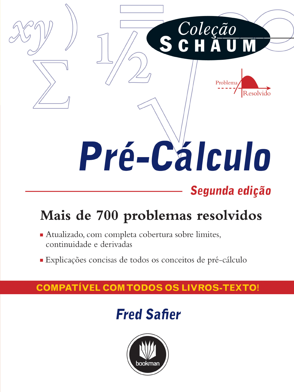 <p>S128p Safier, Fred.</p><p>Pré-cálculo [recurso eletrônico] / Fred Safier ; tradução</p><p>técnica Adonai Schlup Sant’Anna. – 2. ed. – Dados eletrônicos.</p><p>– Porto Alegre : Bookman, 2011.</p><p>Editado também como livro impresso em 2011.</p><p>ISBN 978-85-7780-927-1</p><p>1. Matemática. 2. Pré-cálculo. I. Título.</p><p>CDU 51-3</p><p>Catalogação na publicação: Ana Paula M. Magnus – CRB 10/2052</p><p>FRED SAFIER é Bacharel em Física pela Harvard College e Mestre em Matemática pela Stanford University. Agora</p><p>aposentado, lecionou matemática no City College de São Francisco (EUA) de 1967 a 2005 e é autor de vários manuais</p><p>para estudantes nas áreas de álgebra, trigonometria e pré-cálculo.</p><p>Tradução técnica:</p><p>Adonai Schlup Sant’Anna</p><p>Pós-Doutorado em Física Teórica pela Stanford University – EUA</p><p>Doutor em Filosofia pela Universidade de São Paulo</p><p>Professor Associado do Departamento de Matemática da Universidade Federal do Paraná (UFPR)</p><p>2011</p><p>Versão impressa</p><p>desta obra: 2011</p><p>Fred Safier</p><p>Professor Titular de Matemática</p><p>City College of San Francisco (EUA)</p><p>Reservados todos os direitos de publicação, em língua portuguesa, à</p><p>ARTMED® EDITORA S.A.</p><p>(BOOKMAN® COMPANHIA EDITORA é uma divisão da ARTMED® EDITORA S. A.)</p><p>Av. Jerônimo de Ornelas, 670 – Santana</p><p>90040-340 – Porto Alegre – RS</p><p>Fone: (51) 3027-7000 Fax: (51) 3027-7070</p><p>É proibida a duplicação ou reprodução deste volume, no todo ou em parte, sob quaisquer</p><p>formas ou por quaisquer meios (eletrônico, mecânico, gravação, fotocópia, distribuição na Web</p><p>e outros), sem permissão expressa da Editora.</p><p>Unidade São Paulo</p><p>Av. Embaixador Macedo Soares, 10.735 – Pavilhão 5 – Cond. Espace Center</p><p>Vila Anastácio – 05095-035 – São Paulo – SP</p><p>Fone: (11) 3665-1100 Fax: (11) 3667-1333</p><p>SAC 0800 703-3444 – www.grupoa.com.br</p><p>IMPRESSO NO BRASIL</p><p>PRINTED IN BRAZIL</p><p>Obra originalmente publicada sob o título Schaum's Outline: Precalculus,2/Ed.</p><p>ISBN 007-150864-3</p><p>Copyright © 2009, 1998 by the McGraw-Hill Companies,Inc.,New York, New York, United States of America.</p><p>All rights reserved.</p><p>Portuguese-language translation copyright © 2011 by Bookman Companhia Editora Ltda., a Division of Artmed Editora S.A.</p><p>All rights reserved.</p><p>Capa: Rogério Grilho (arte sobre capa original)</p><p>Preparação de original: Renata Ramisch</p><p>Editora Sênior: Denise Weber Nowaczyk</p><p>Projeto e editoração: Techbooks</p><p>APRESENTAÇÃO À EDIÇÃO BRASILEIRA</p><p>Com grande frequência, o ensino da Matemática nas universidades pega de surpresa os alunos que acabaram de</p><p>concluir o Ensino Médio. E, com a mesma frequência, esse choque acaba desestimulando os estudantes, fazen-</p><p>do-os se sentirem despreparados, ou no mínimo inseguros, para a faculdade. O calouro de um curso superior de</p><p>Matemática, Física, Engenharia, Economia, Administração ou mesmo Biologia fica desorientado perante tantos</p><p>conceitos novos em disciplinas como matemática básica, cálculo diferencial e integral, álgebra linear e geometria</p><p>analítica, as quais exigem independência de pensamento. O Ensino Médio, em geral, não apresenta esses conceitos</p><p>de maneira que se forme, na mente do aluno, um único corpo de conhecimento que deve visar a um propósito bem</p><p>definido.</p><p>É para preencher essa lacuna que existem livros como esta obra. O livro de Safier cumpre o papel de abordar</p><p>de maneira muito direta e acessível a matemática básica e elementar fundamental para a compreensão do cálculo</p><p>diferencial e integral. O autor não é excessivamente rigoroso, mas expõe, de maneira clara e didática, os tópicos</p><p>mais importantes para um curso de pré-cálculo, além de apresentar inúmeros exercícios.</p><p>Com base na minha longa experiência nos diversos níveis de ensino, recomendo este livro não apenas como</p><p>referência para o estudo de pré-cálculo, mas também como um texto suplementar a cursos mais avançados, como é</p><p>o caso do cálculo diferencial e integral e da geometria analítica.</p><p>ADONAI S. SANT’ANNA</p><p>Professor e tradutor desta obra</p><p>Apresentação</p><p>PREFÁCIO DA SEGUNDA EDIÇÃO</p><p>Esta edição foi expandida, incluindo agora material sobre taxa de variação média, custo e demanda, forma polar de</p><p>números complexos, seções cônicas em coordenadas polares e a estrutura algébrica do produto interno. Foi acres-</p><p>centado um capítulo (Capítulo 45), como uma introdução ao cálculo diferencial, assunto que agora aparece em</p><p>muitos livros de pré-cálculo. Mais de 30 problemas resolvidos foram adicionados, bem como mais de 110 proble-</p><p>mas suplementares.</p><p>Agradecemos Anya Kozorez e sua equipe da McGraw-Hill, e a Madhu Bhardwaj e sua equipe no International</p><p>Typesetting and Composition. Além desses, o autor gostaria de agradecer aos leitores (poucos, felizmente) que</p><p>enviaram correções, em particular D. Mehaffey e B. DeRoes.</p><p>Acima de tudo, o autor deve agradecimentos mais uma vez a sua esposa Gitta, cuja cuidadosa atenção eliminou</p><p>diversos erros. Novos erros percebidos pelos leitores podem ser encaminhados para fsafier@ccsf.edu ou fsafier@</p><p>ccsf.cc.ca.us.</p><p>Fred Safier</p><p>Prefácio</p><p>viii PREFÁCIO</p><p>PREFÁCIO DA PRIMEIRA EDIÇÃO</p><p>Uma disciplina de pré-cálculo é elaborada a fim de preparar estudantes de graduação para o nível de habilidades</p><p>algébricas e conhecimentos esperado em uma disciplina de cálculo. Para tal, são revistos tópicos de álgebra e tri-</p><p>gonometria, enfatizando aqueles conteúdos com os quais se requeira certa familiaridade em cálculo. Funções e</p><p>gráficos são conceitos fundamen